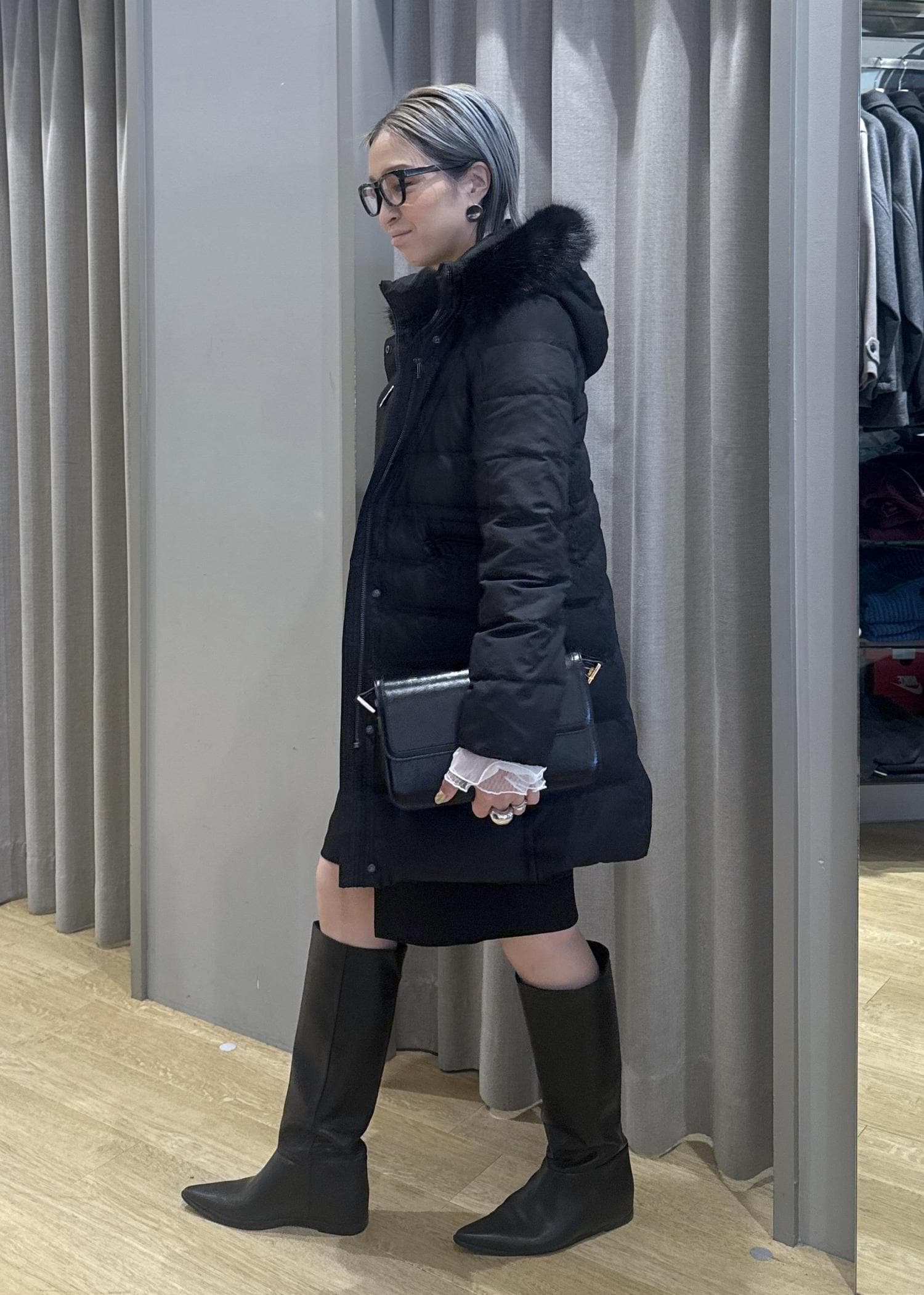 スタイルアップしてくれるダウンジャケットの温かさを活かして、