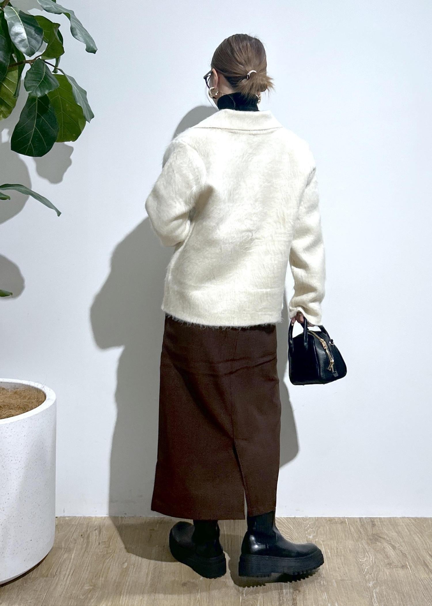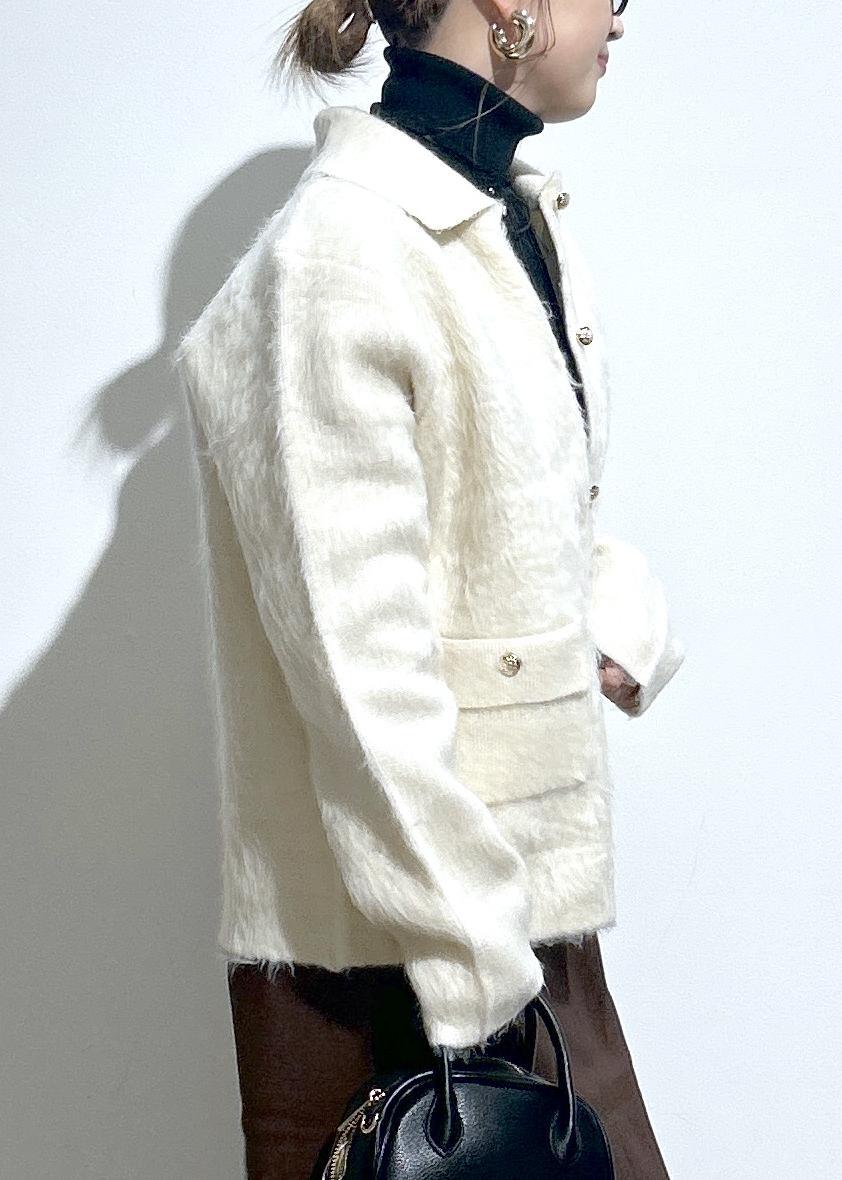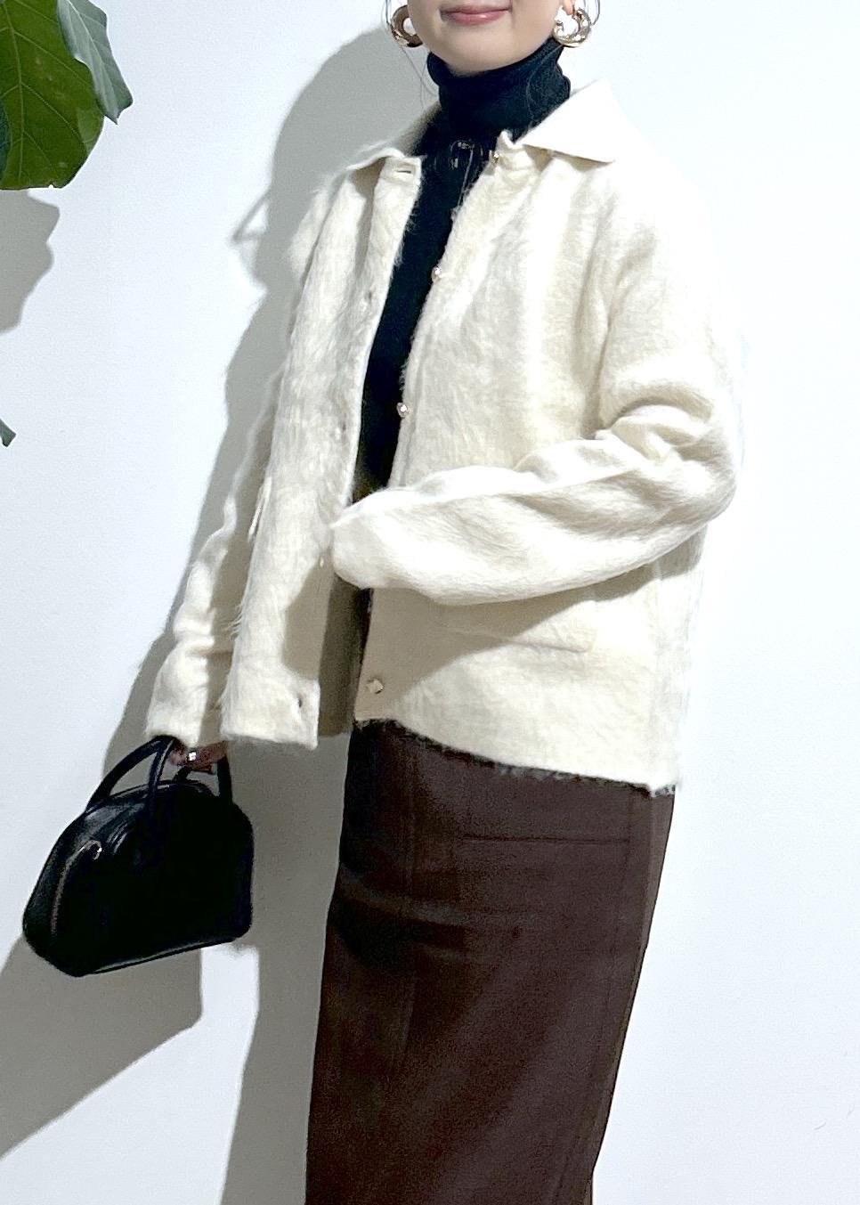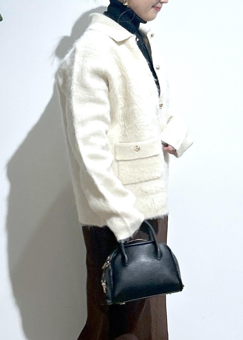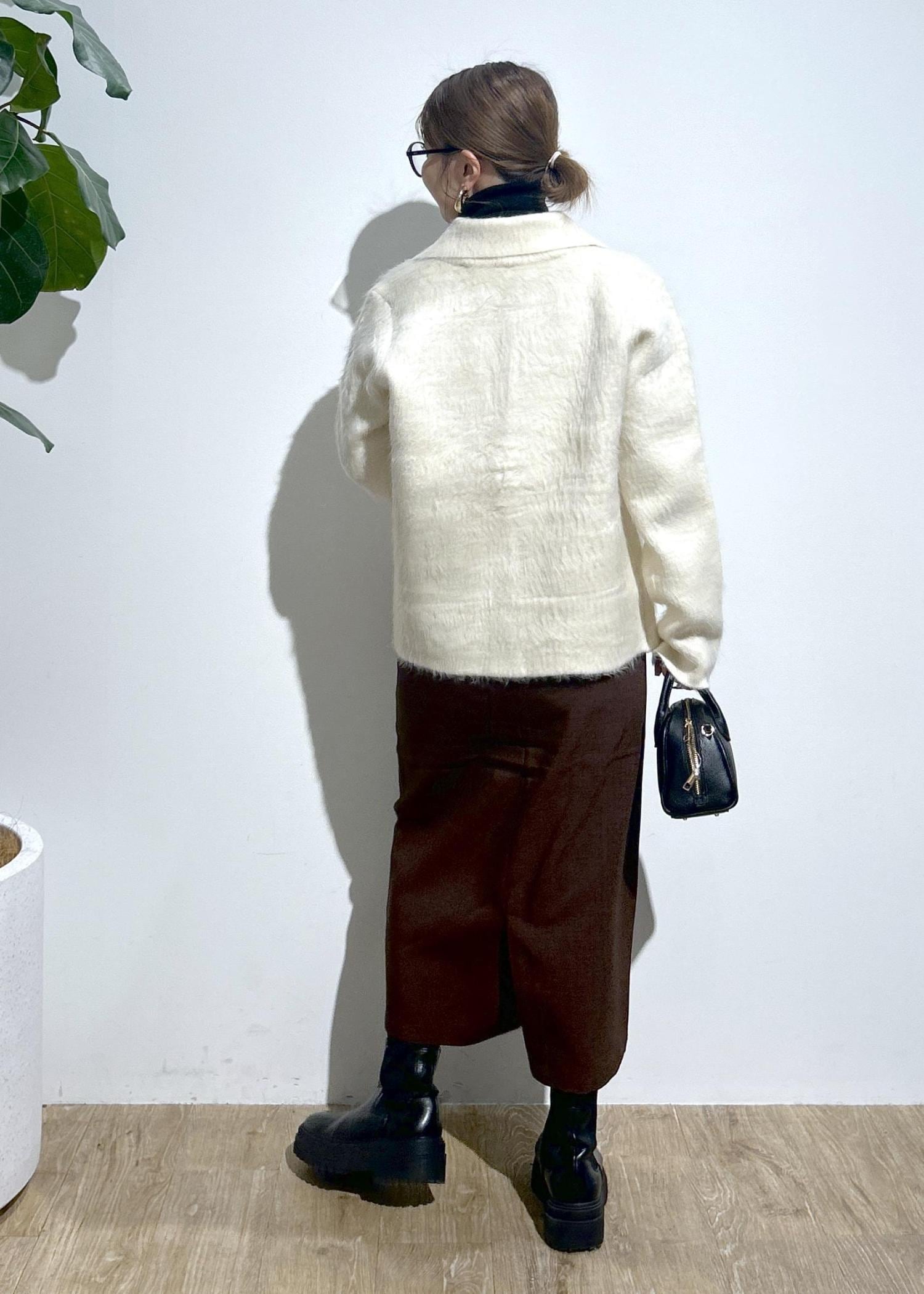 毛足が長めのシャギーカーディガン。暖かみのある素材感です。襟が取り外しができる2way仕様。