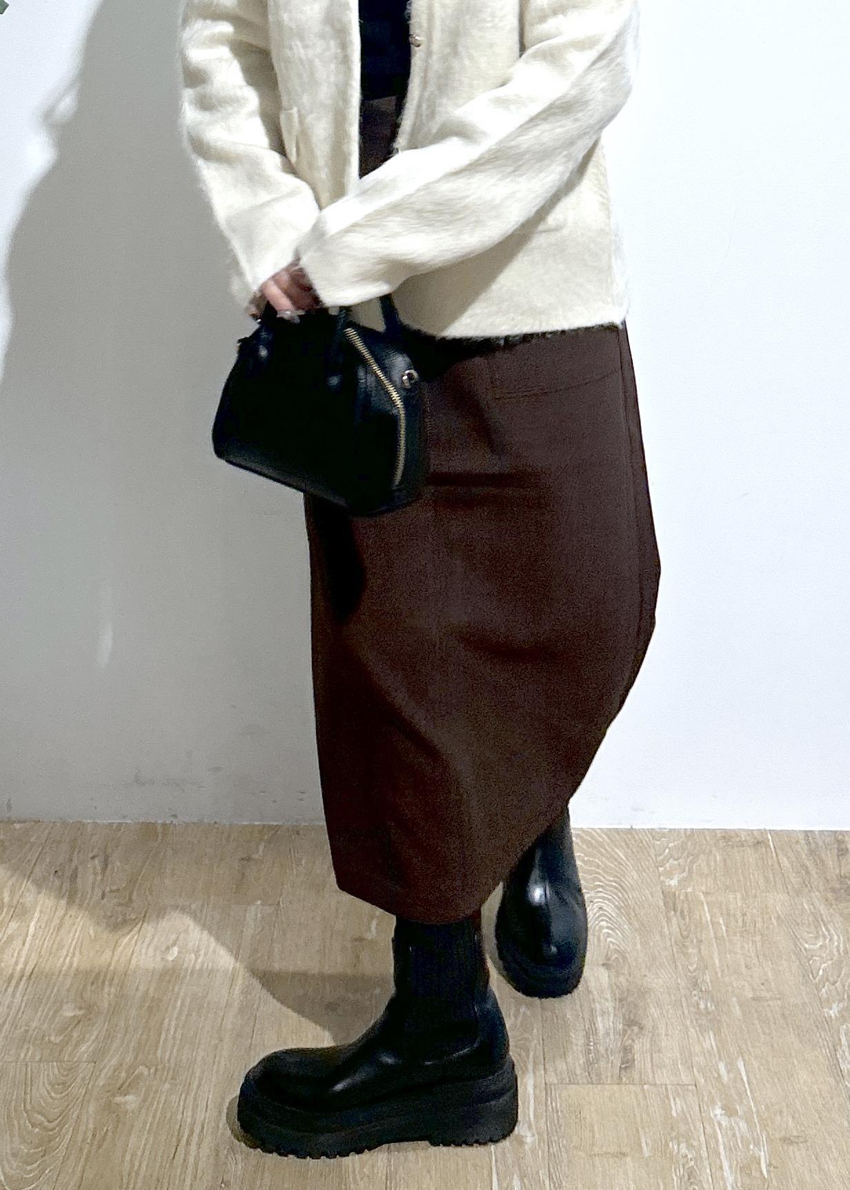 Iラインですが腰やヒップ周りのシルエットが響き過ぎずに履くことができます。大きなポケットがアクセントにもなりカジュアルにも♡