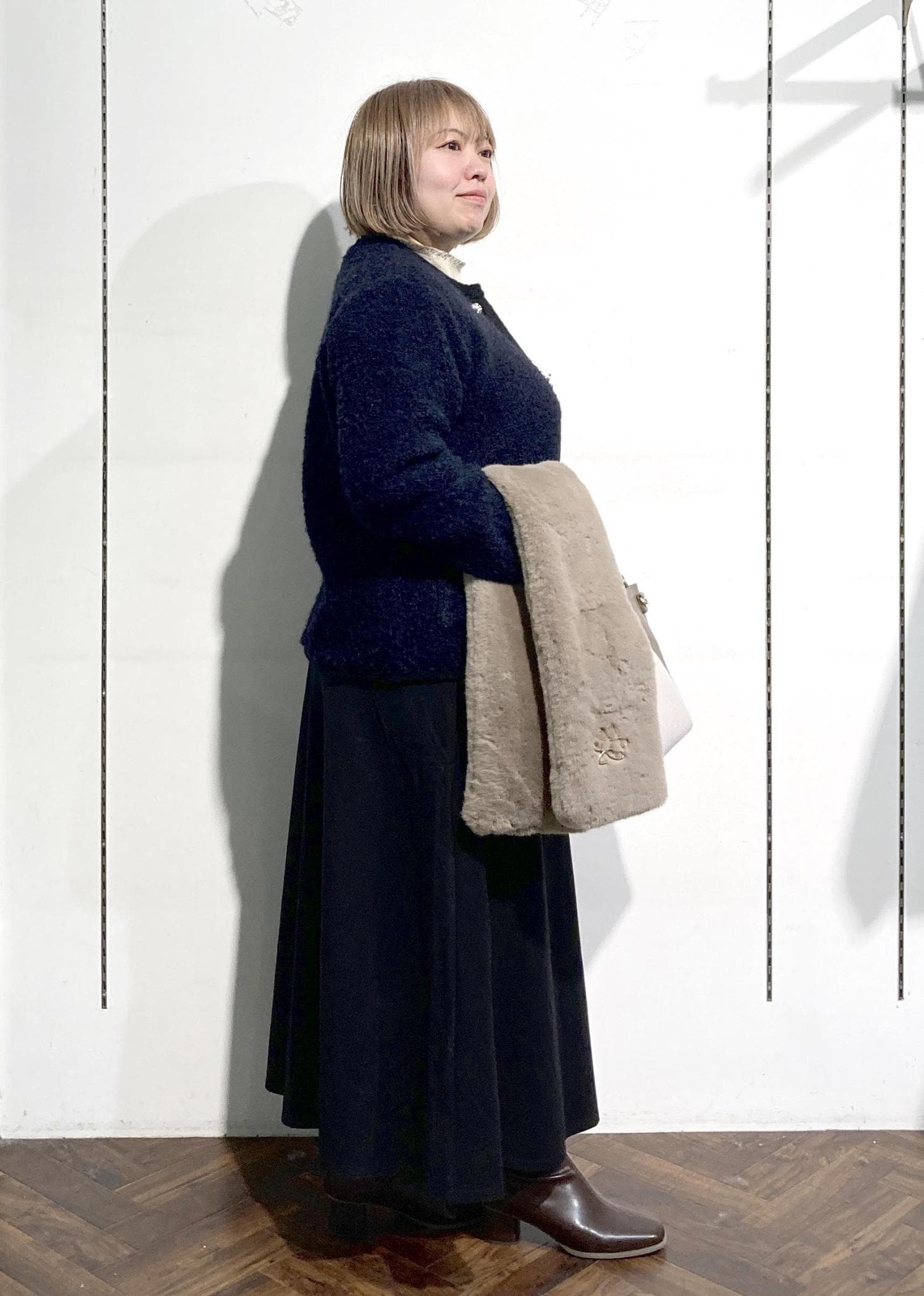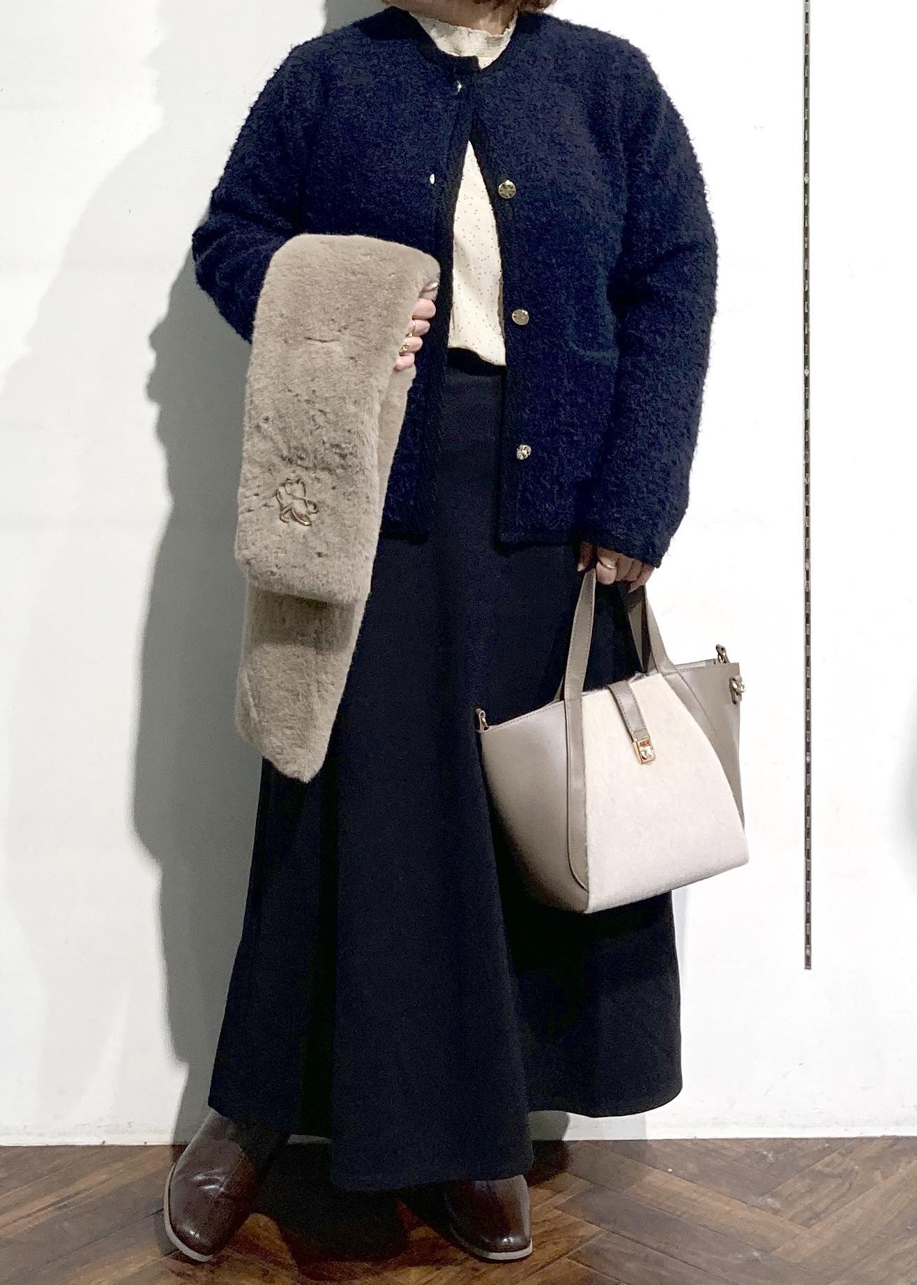 寒い時期にあたたかみの出るデザインで、きれいめにもカジュアルにも馴染みやすく様々なお洋服と合わせることができます。