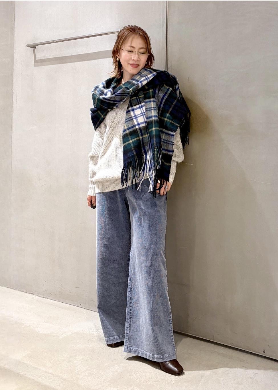 上質なウールのストールをアクセントに使いコーディネートしました。