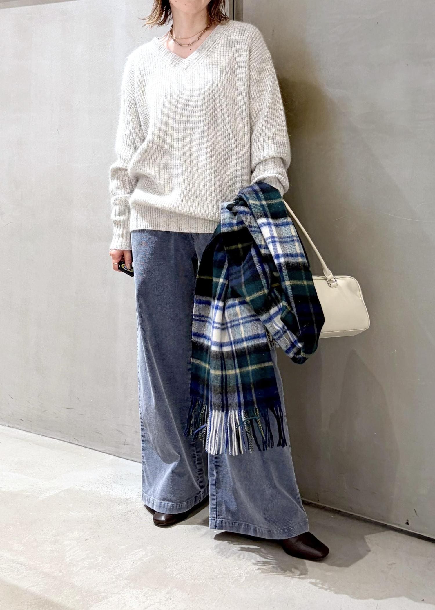 ツイードミル ストールコーデ