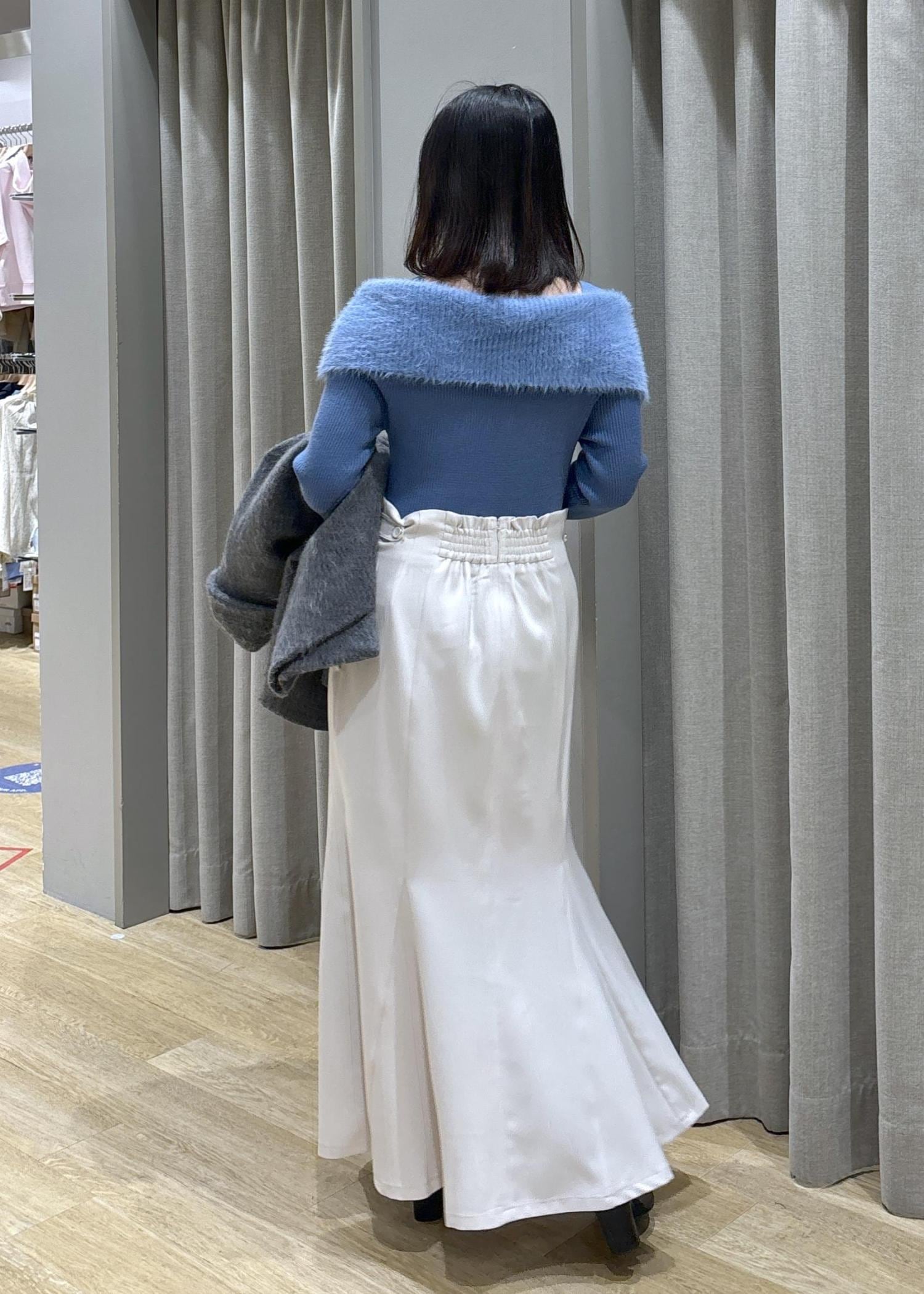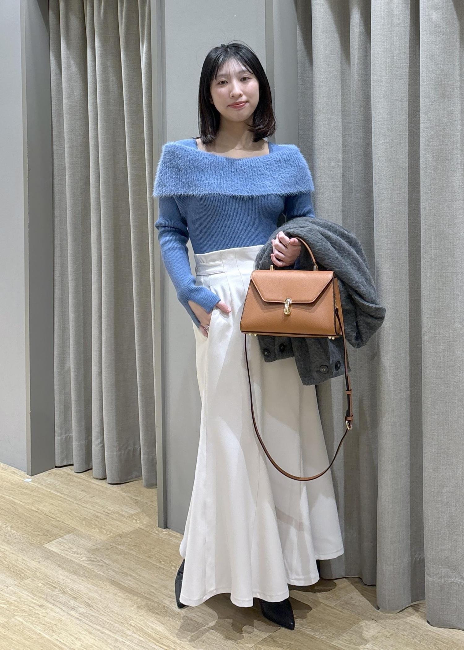 VISフェザーヤーンオフショルもちもちリブニット/イージーケアブルー系 / F¥5,929レビュー身長158cm、Fサイズ着用。