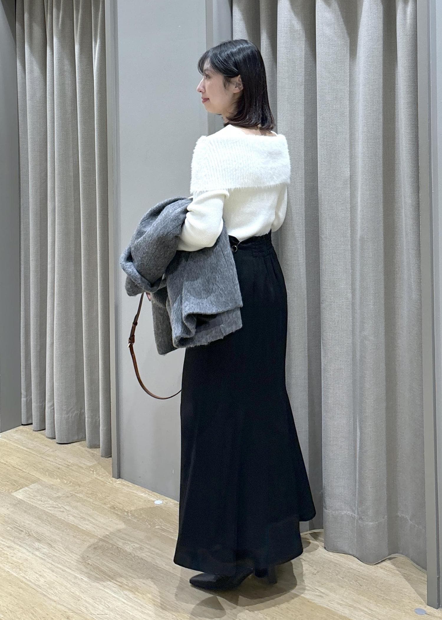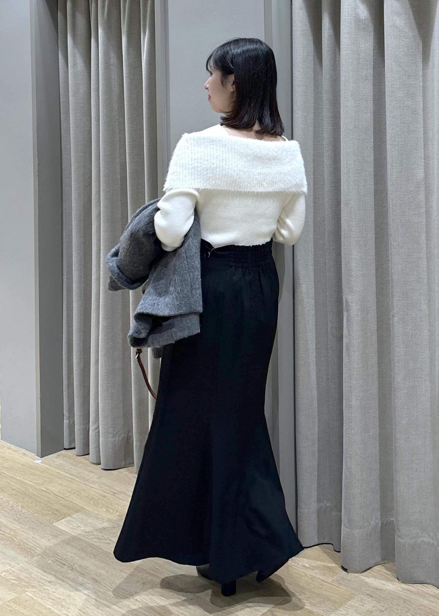 フェザーヤーンオフショルニット×マーメイドスカート