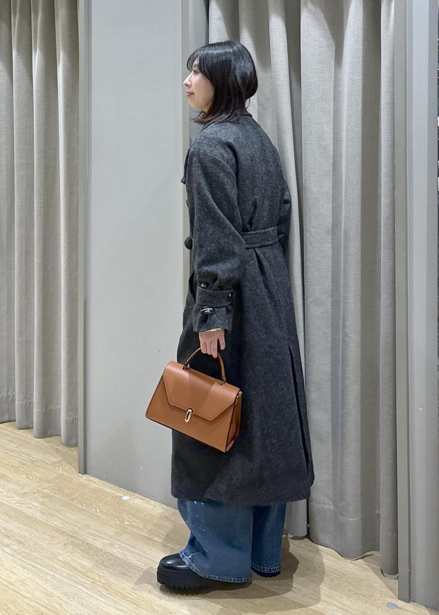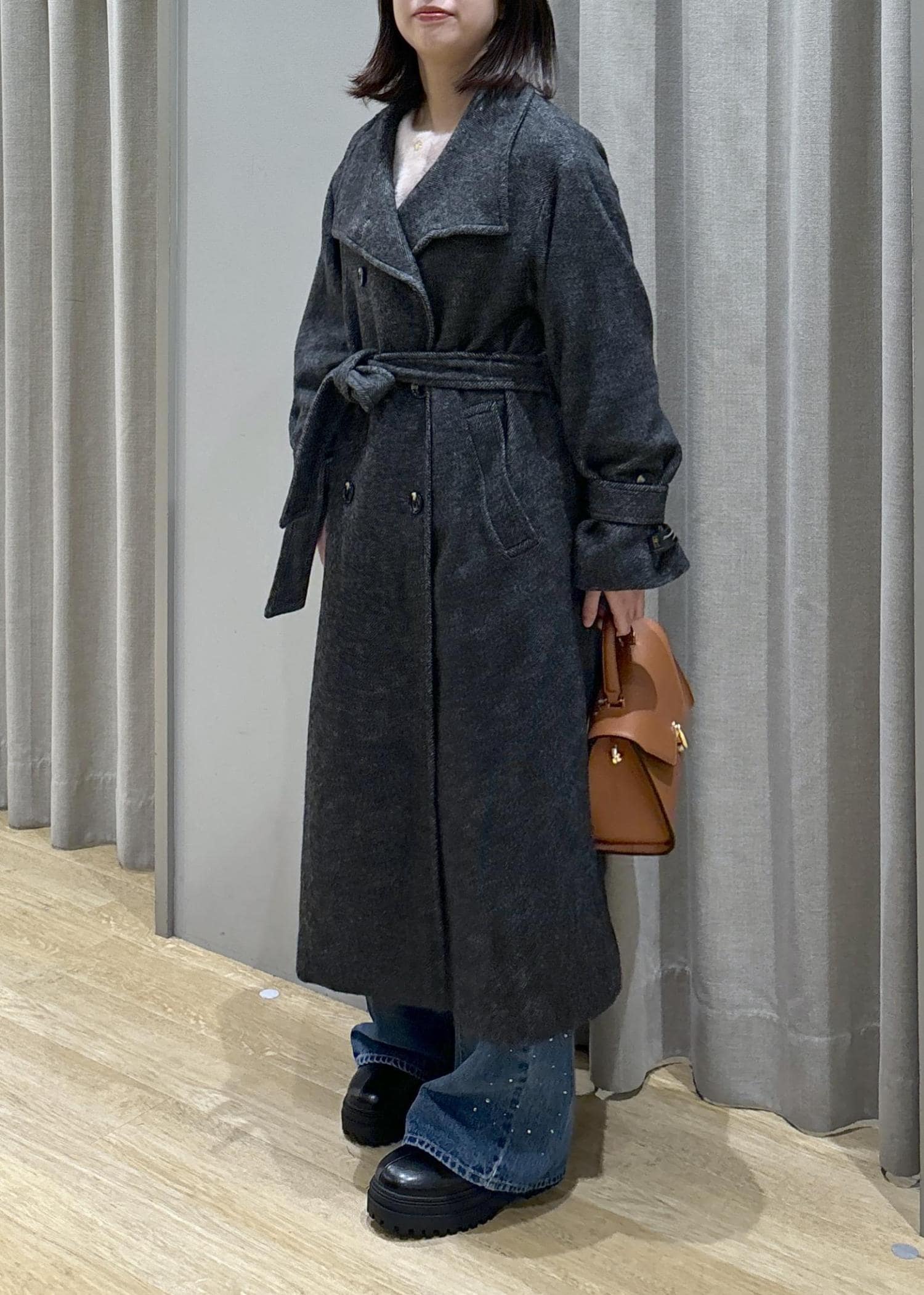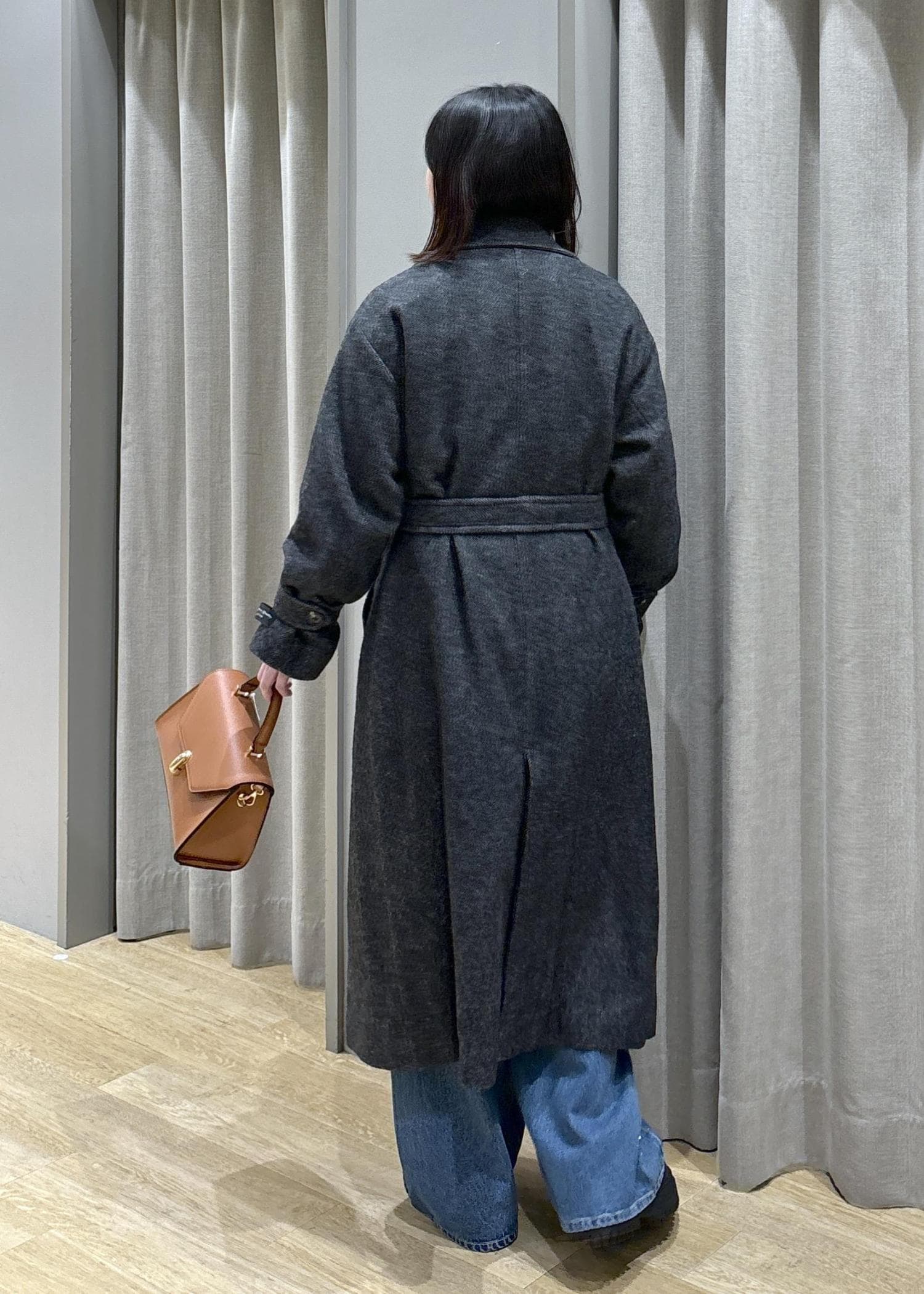 尾州ロングコート×ミニフェザーカーデ×ビジューデニム