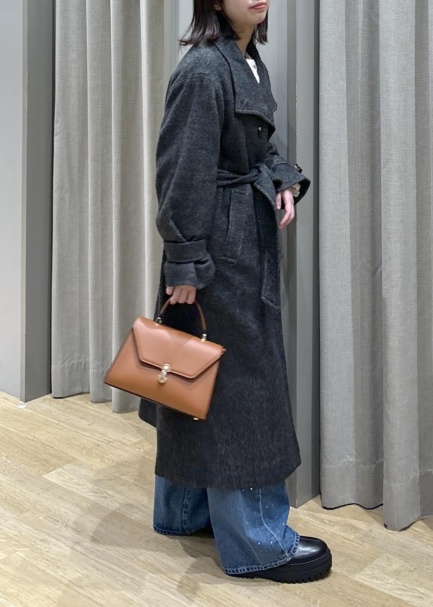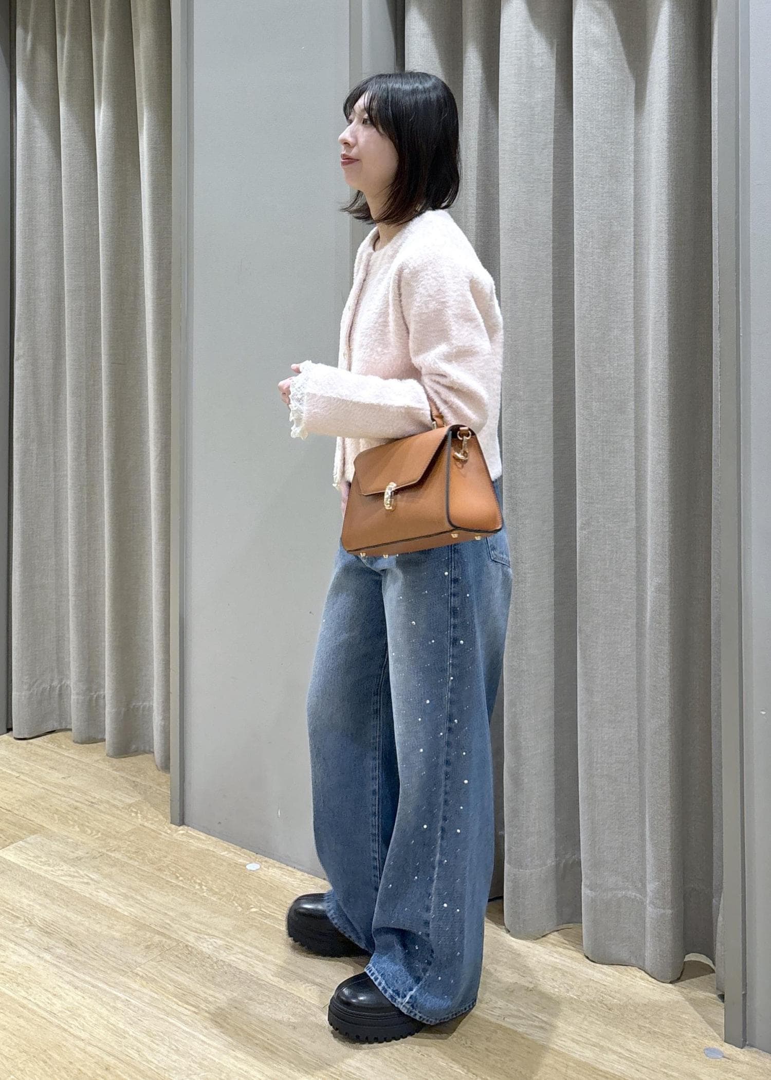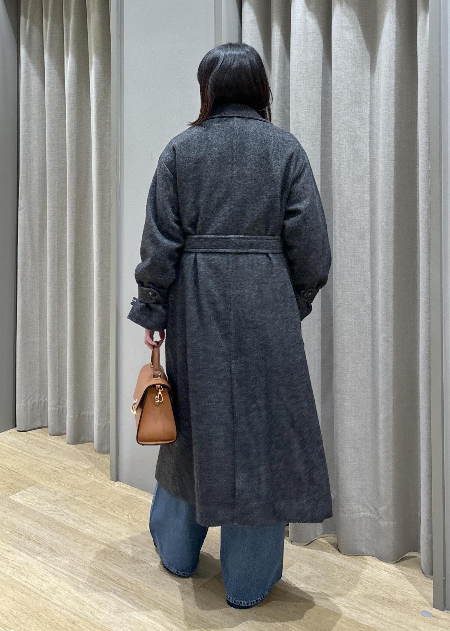 尾州ロングコート×ミニフェザーカーデ×ビジューデニム