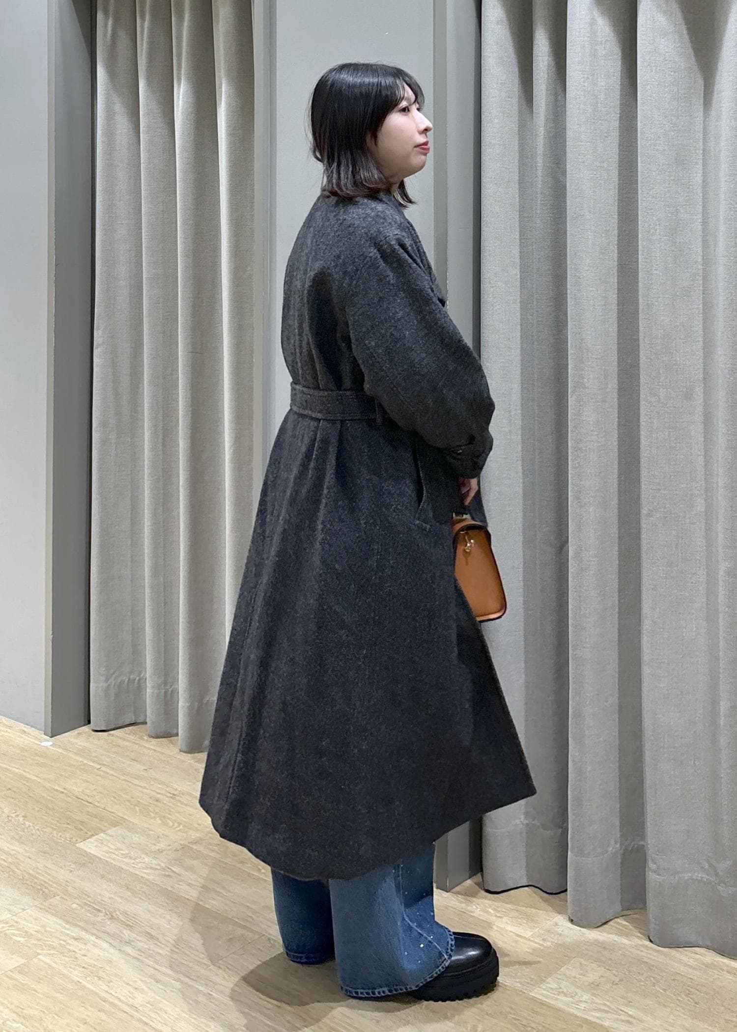 VIS尾州シャギースタンドカラーロングコート/静電気防止・WEB限定PS・TMサイズチャコール / M¥21,890レビュー身長158cm、Mサイズ着用。