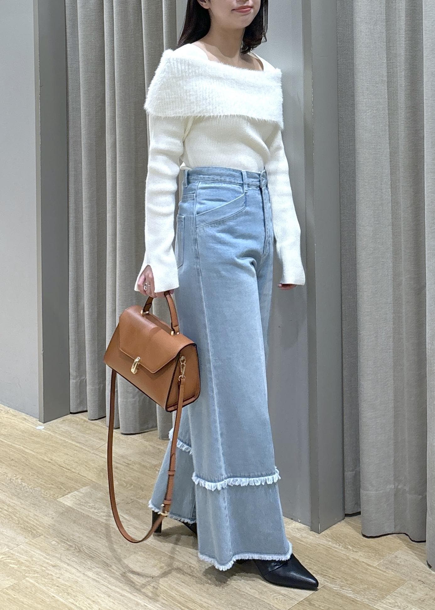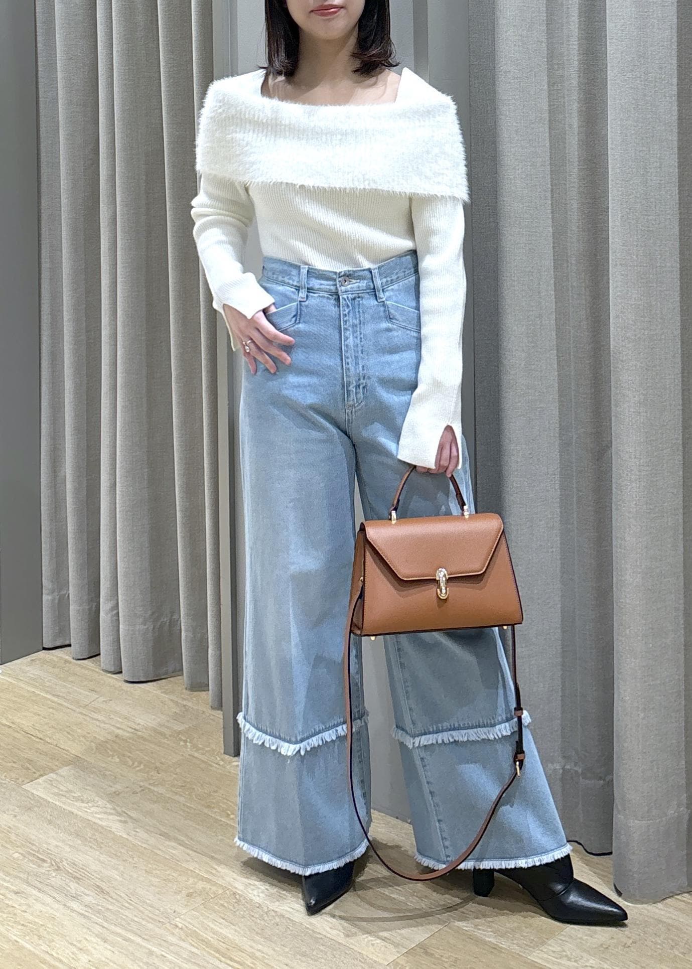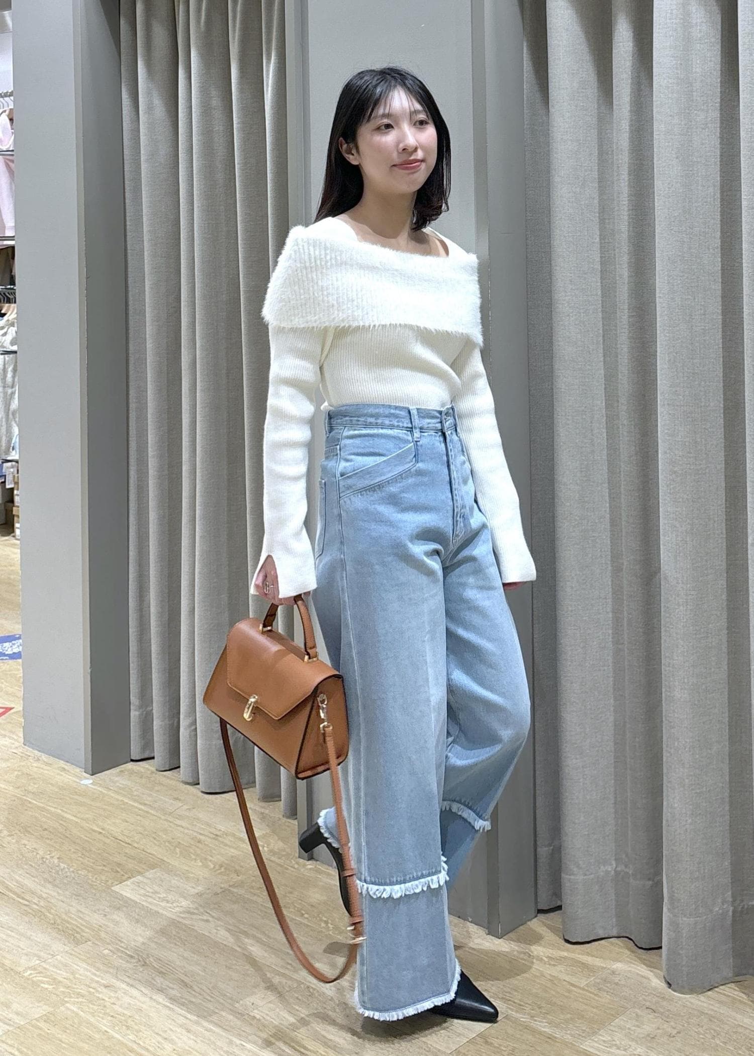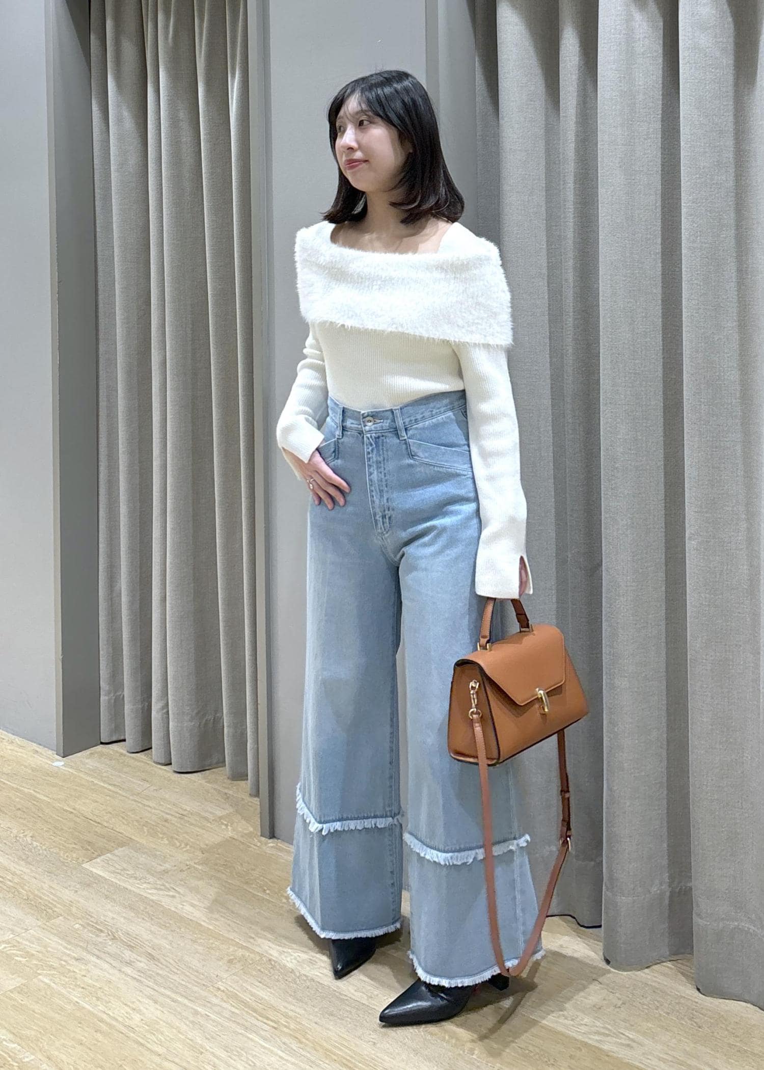 フェザーヤーンオフショルもちもちリブニット/イージーケア
