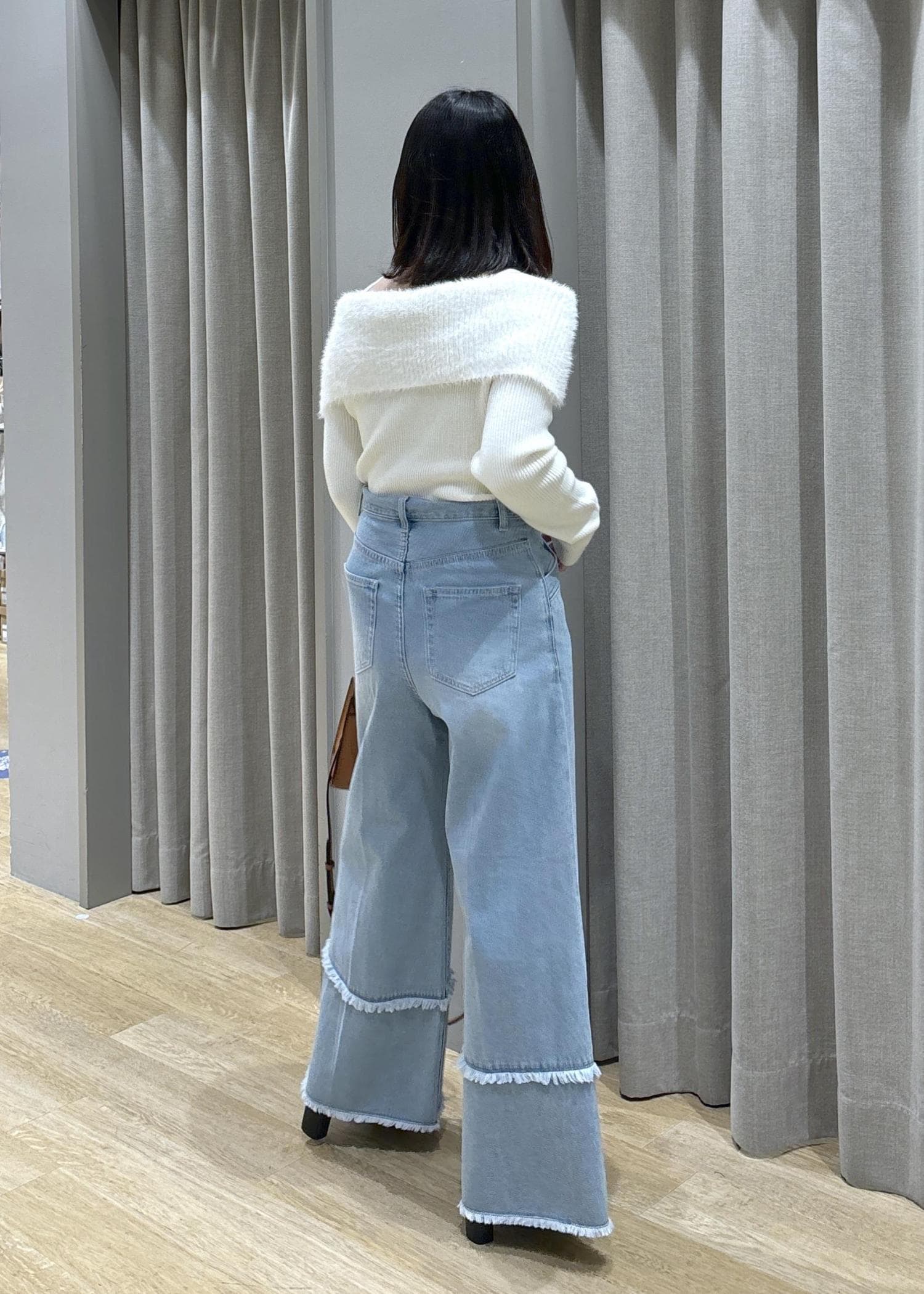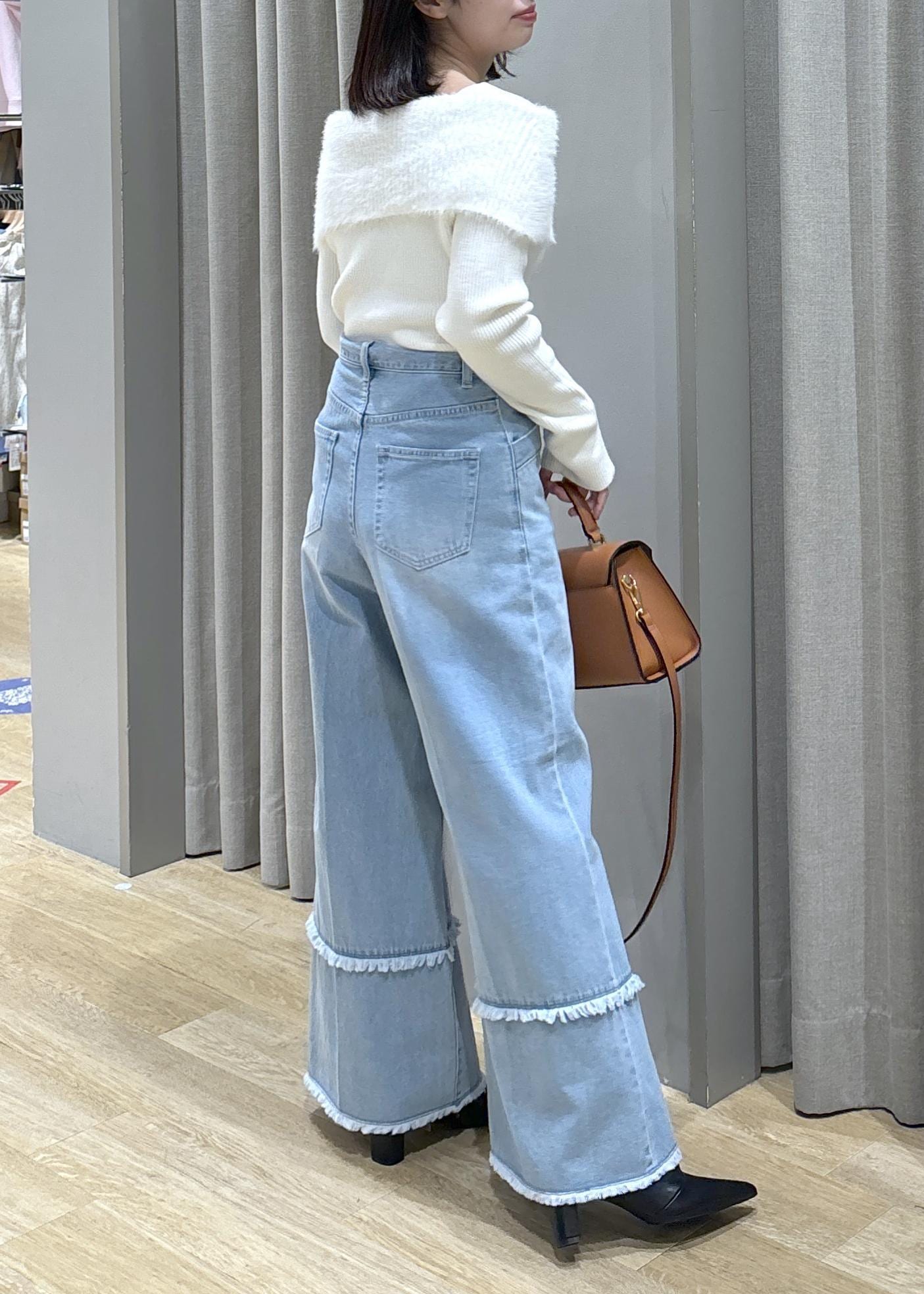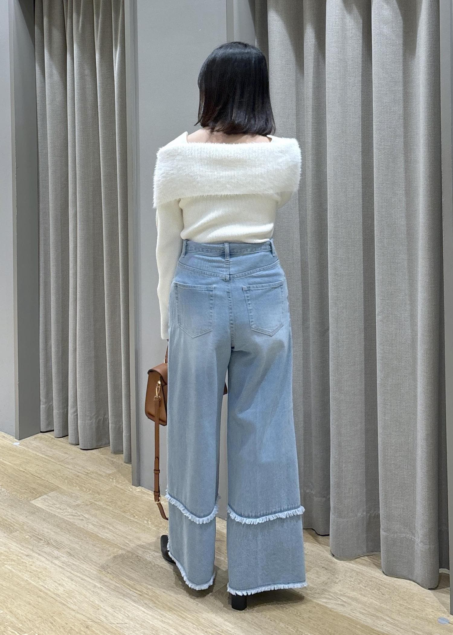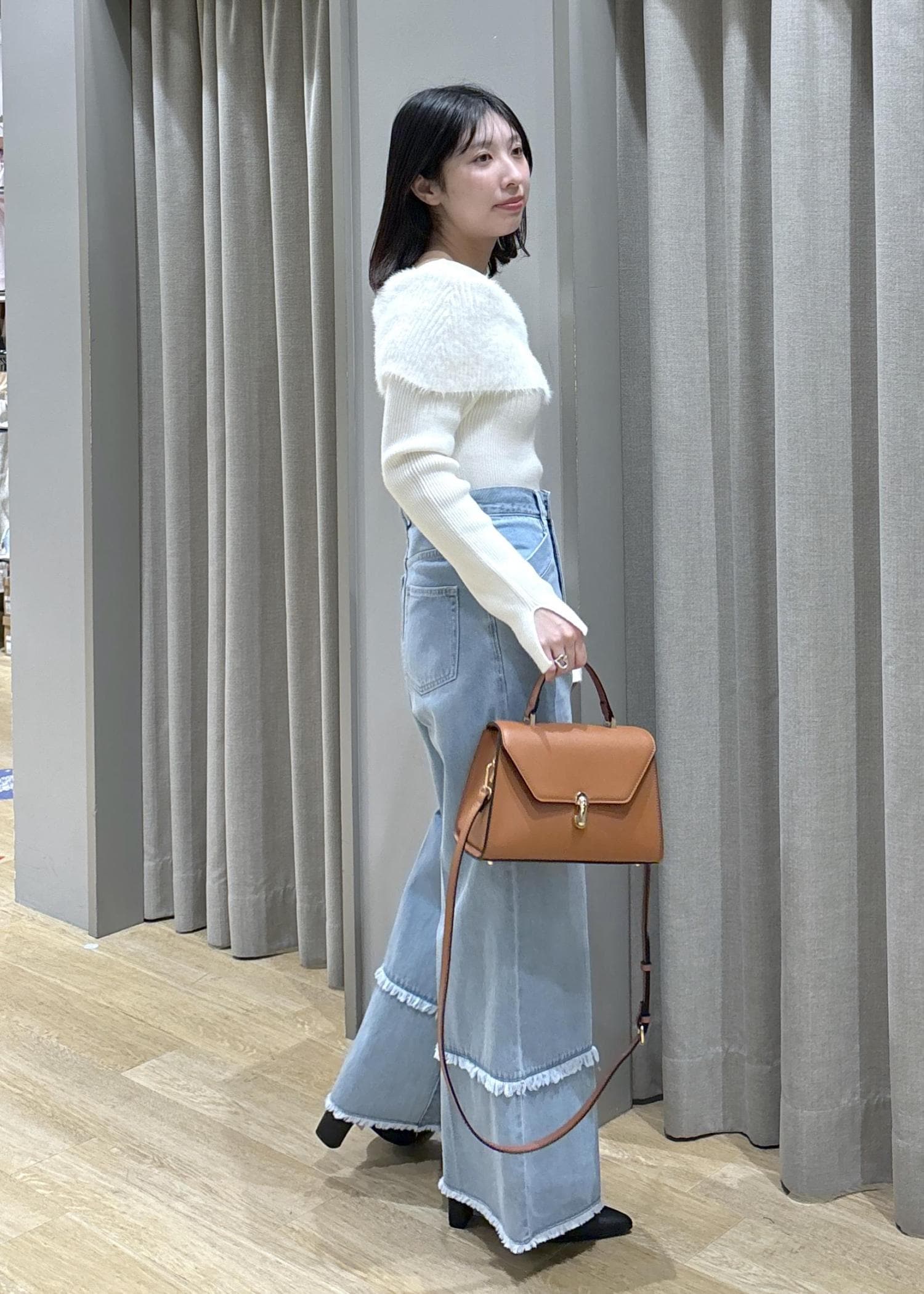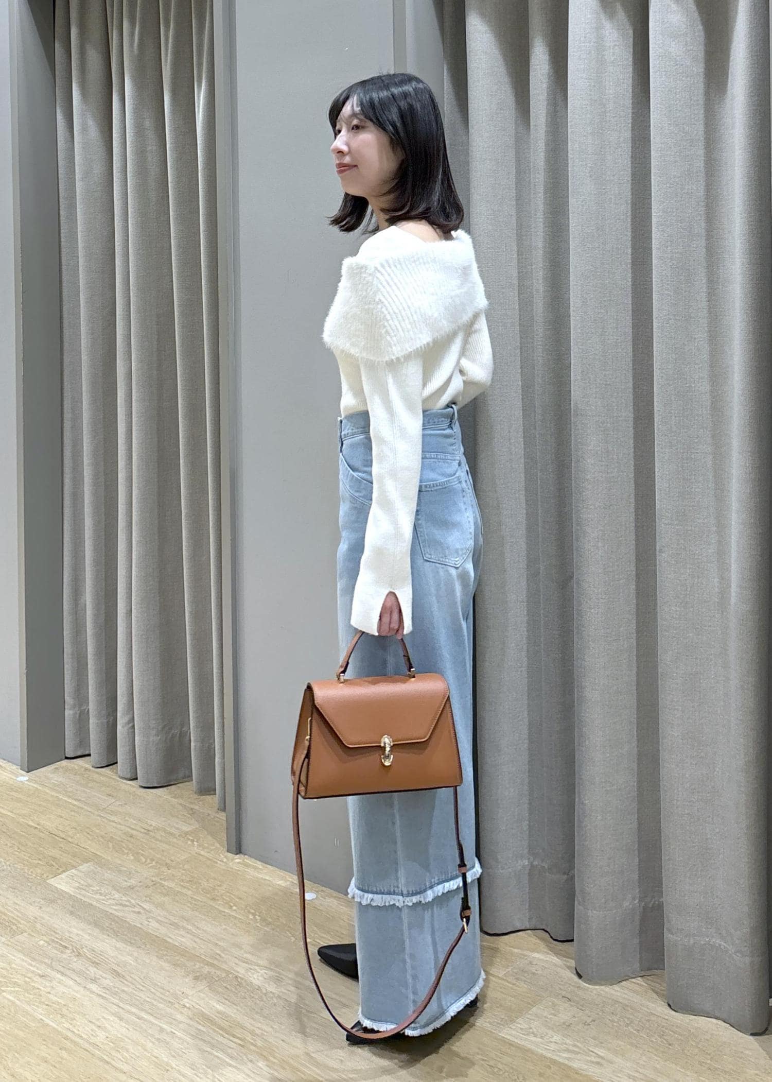 フェザーヤーンオフショルもちもちリブニット/イージーケア