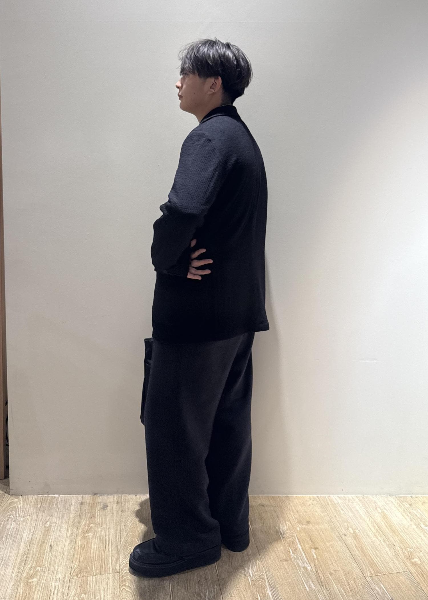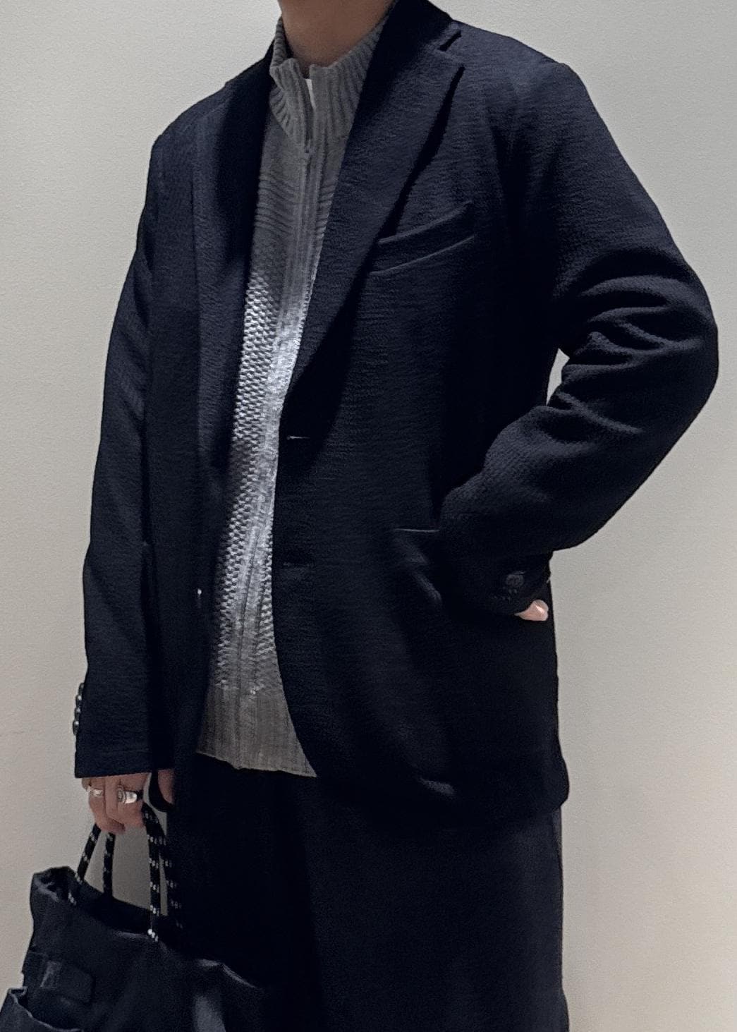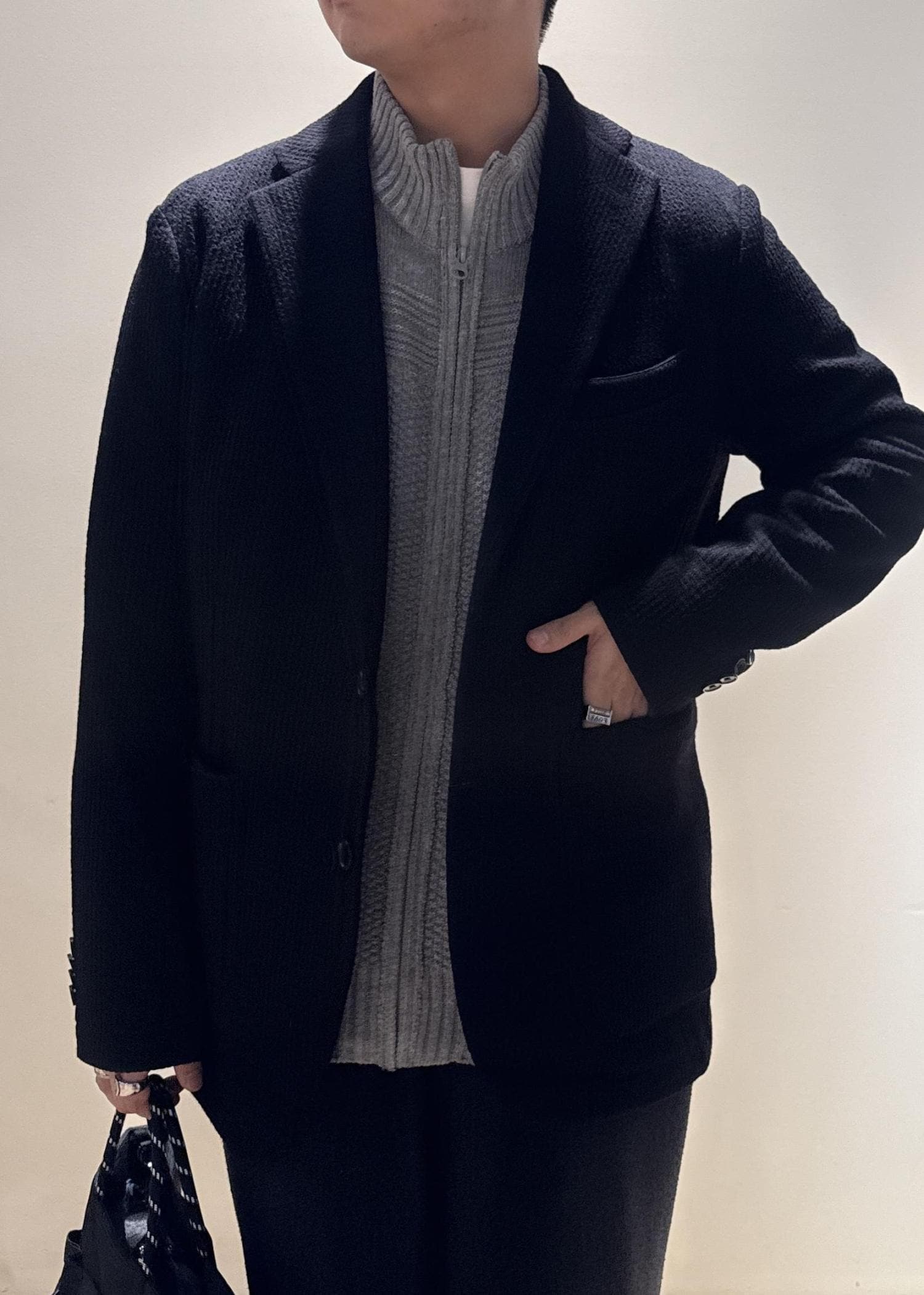 今回はウールミックスジャージージャケットを使ったコーデです。ウールを使用した高級感のあるディテールなのに、ストレッチ性抜群でカジュアル使いにも最適⚪︎