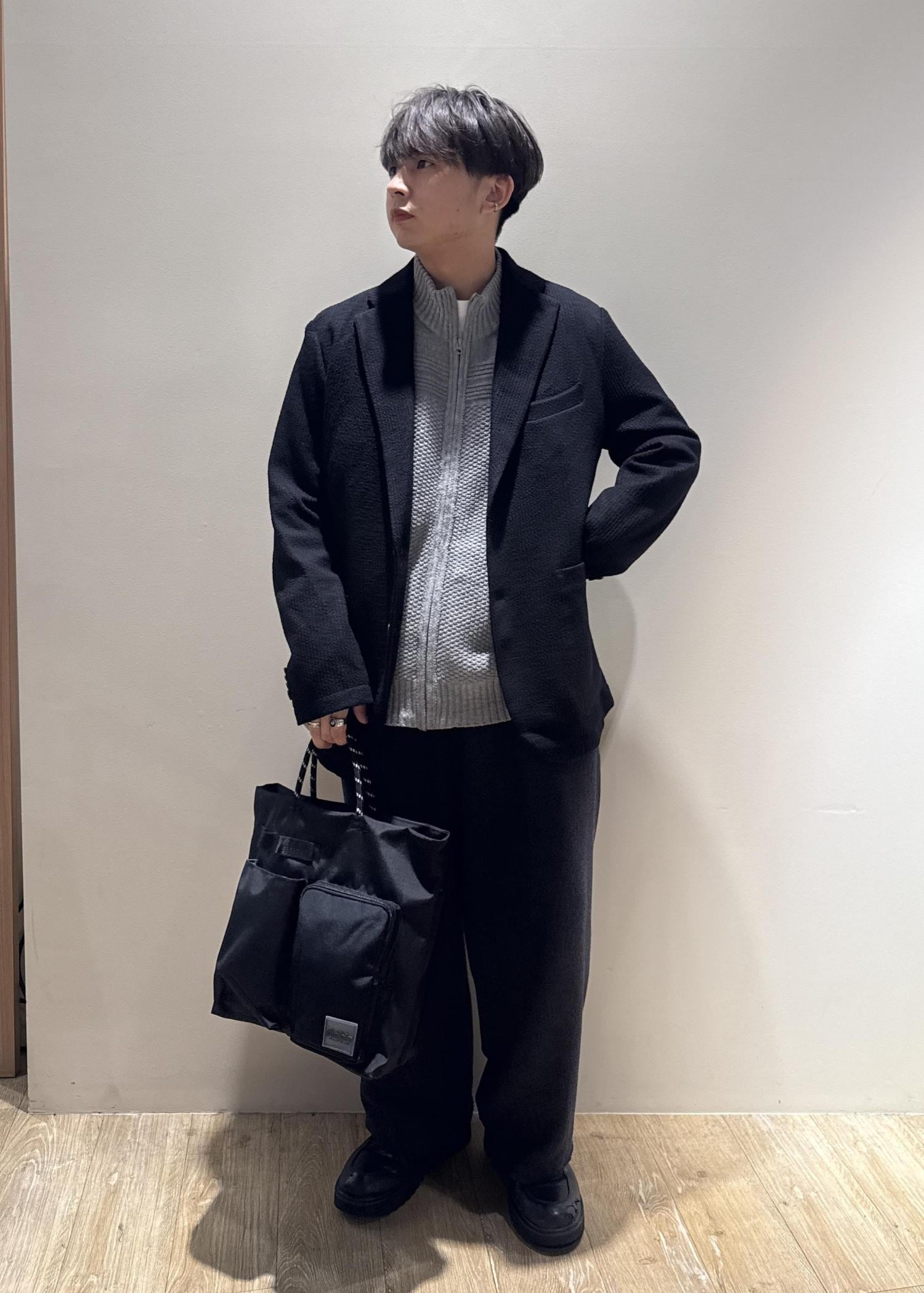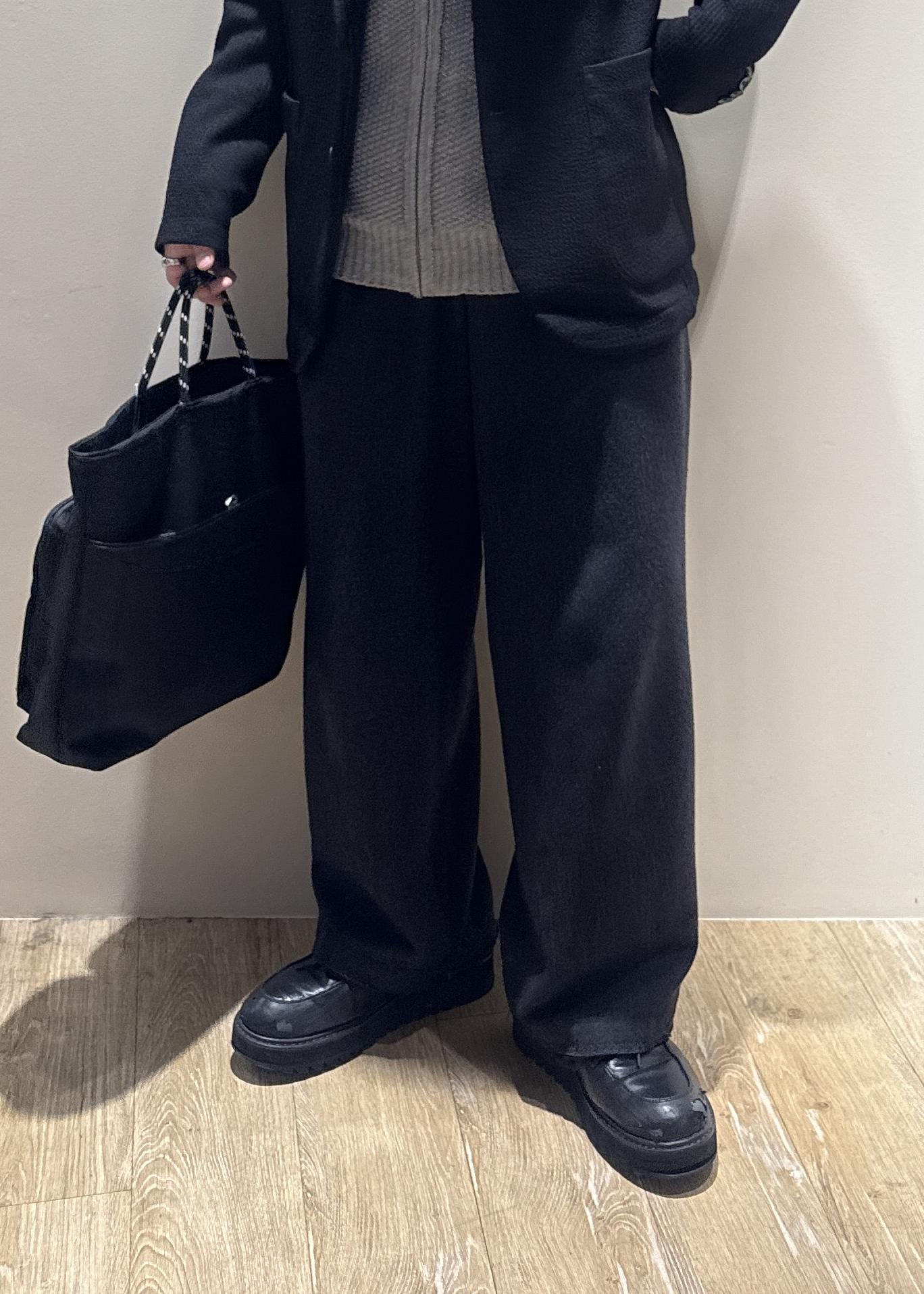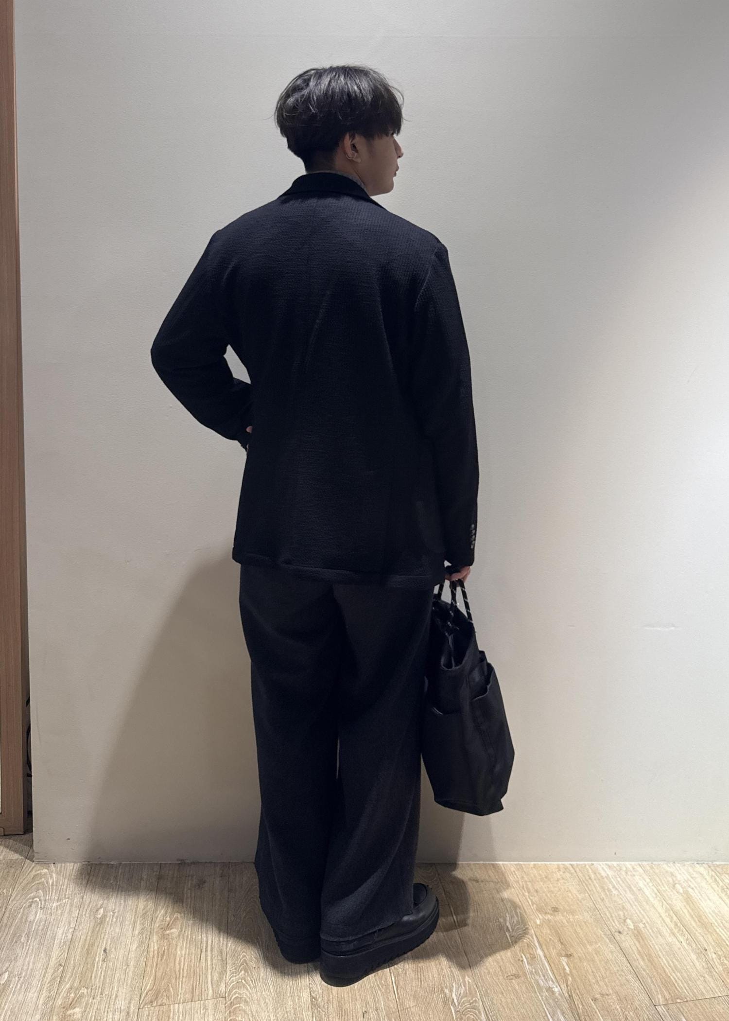 今回はウールミックスジャージージャケットを使ったコーデです。ウールを使用した高級感のあるディテールなのに、ストレッチ性抜群でカジュアル使いにも最適⚪︎