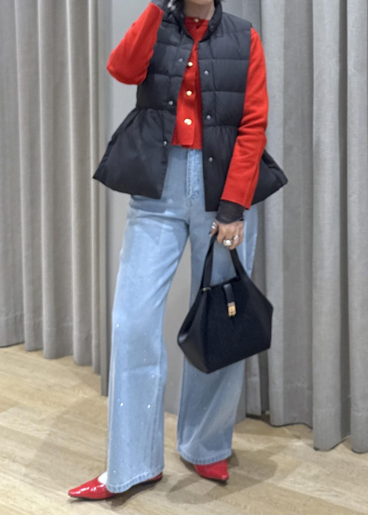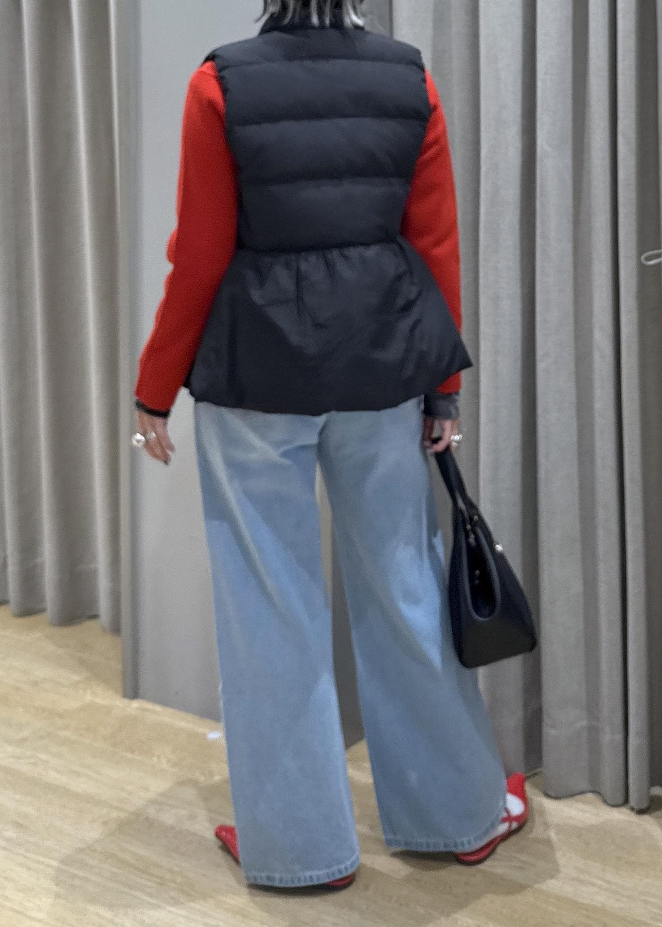 可愛く体型カバーしてくれるペプラムダウンベスト。