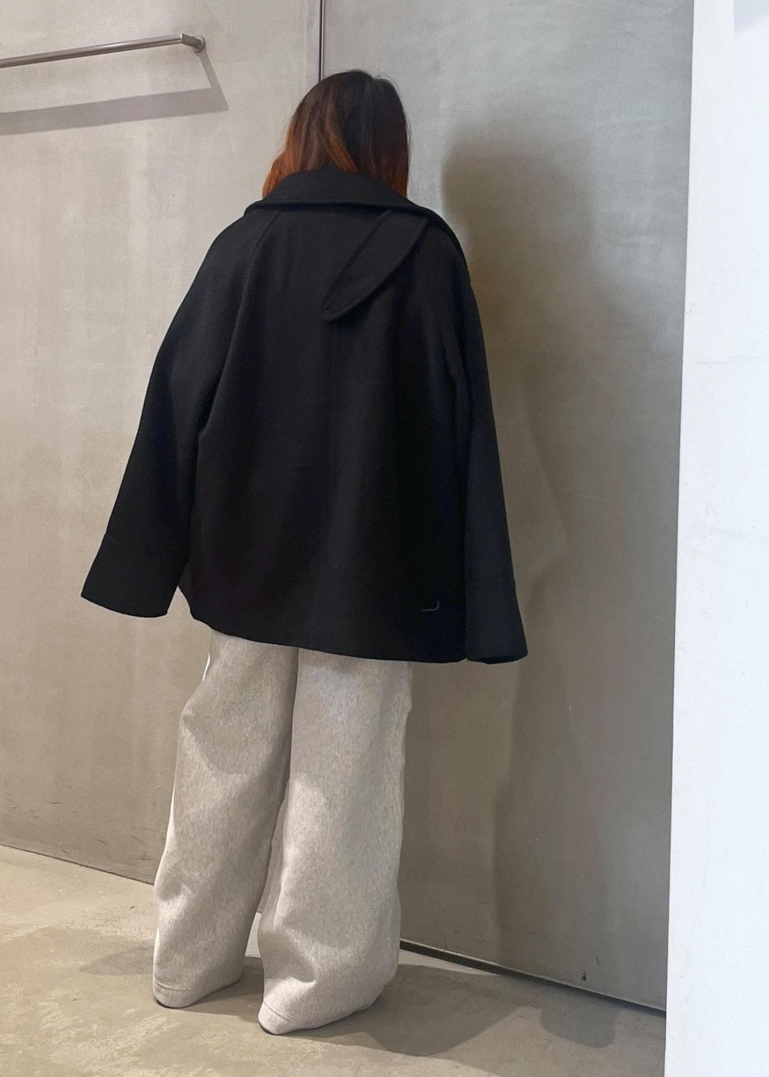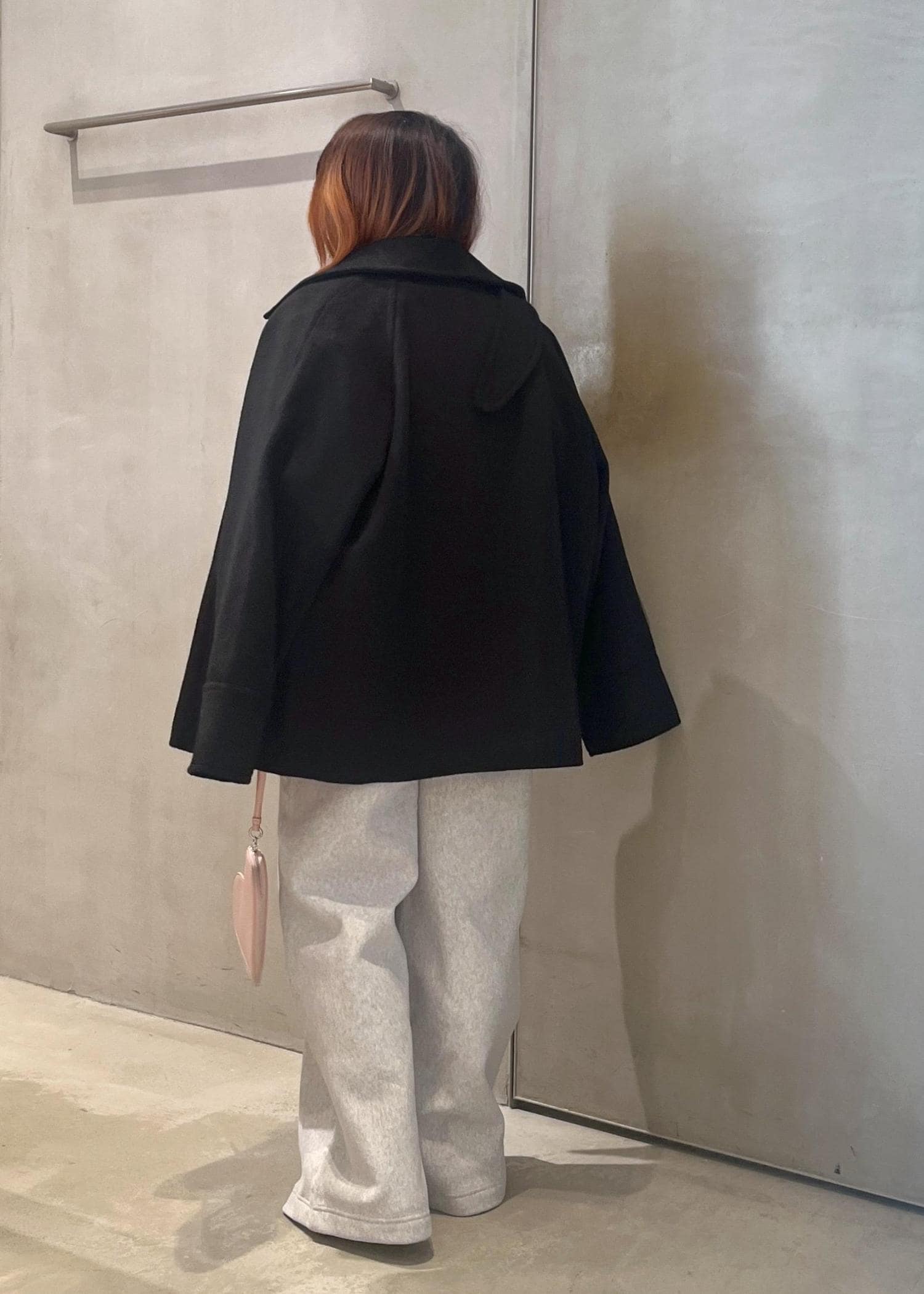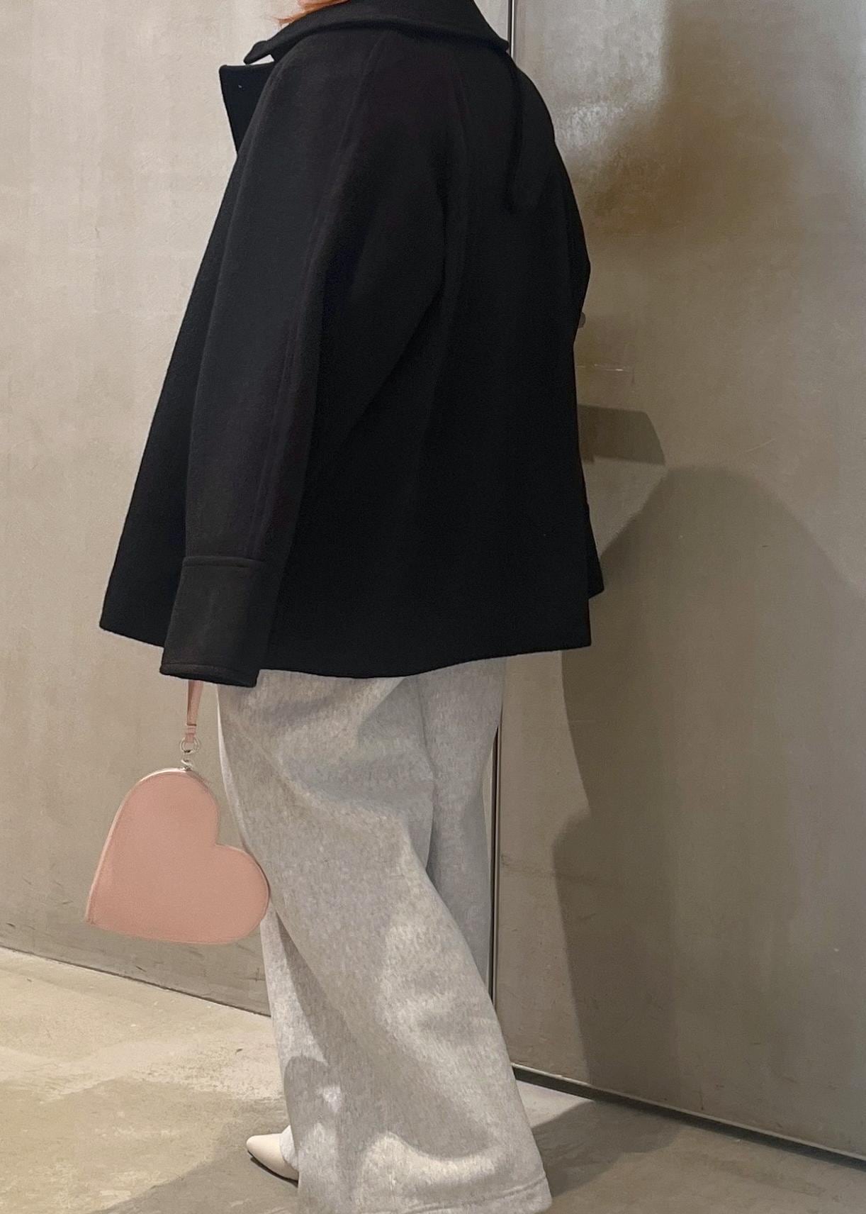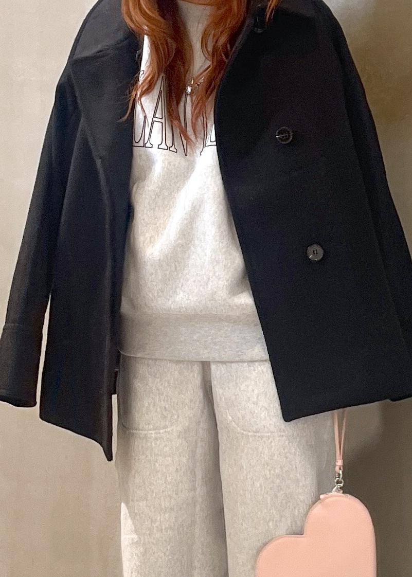 スウェットのセットアップを綺麗めなコートとパンプスでカジュアルダウンしています。