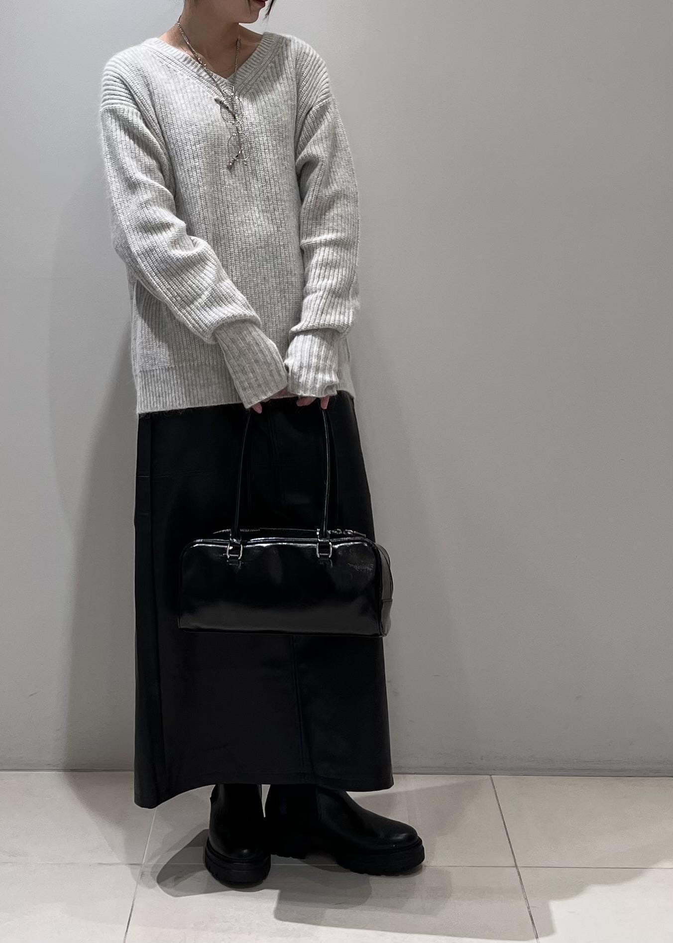 素材は艶やかエナメルフェイクレザーでモードからカジュアルまで幅広く使いやすい♪