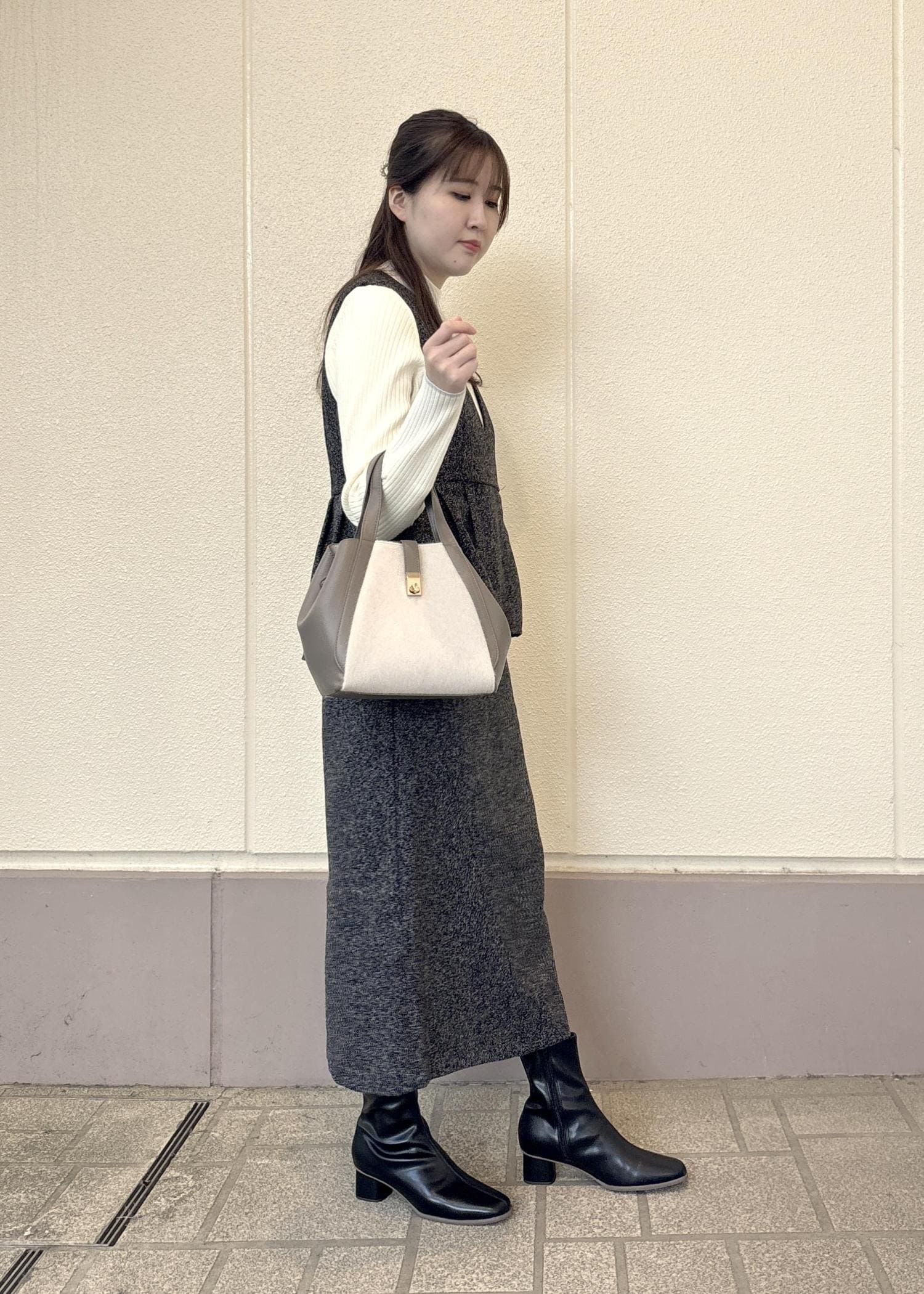 ROPÉ PICNIC【新色追加】レイヤード風ペプラムジャンパースカートチャコール / M¥7,997レビューセットアップのように見えるワンピース。ペプラムが腰周りをカバーしてくれます。また、スカート部分もIラインになっており体のラインを拾いにくいデザインです!リブニットなど薄めのニットと相性抜群です!