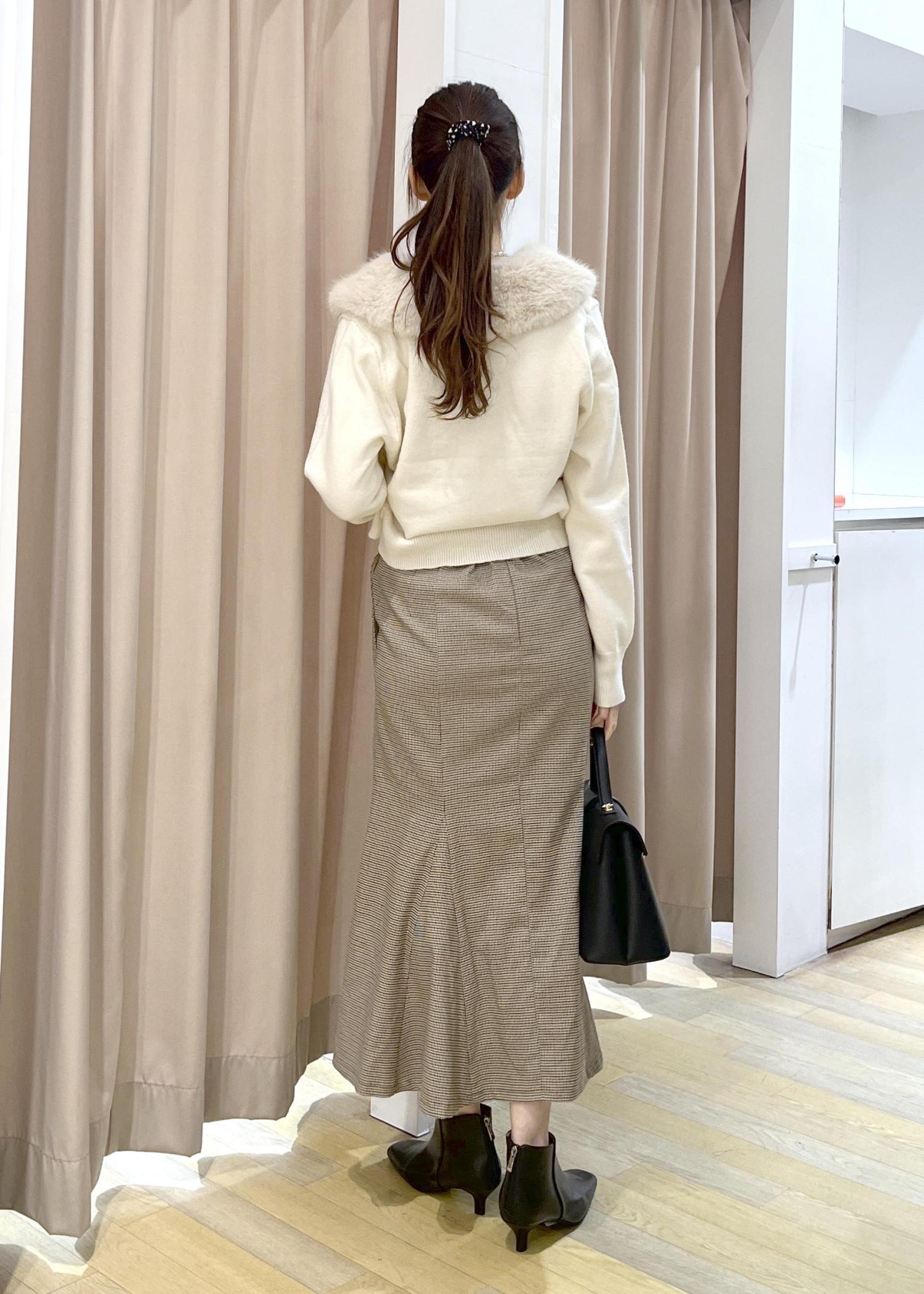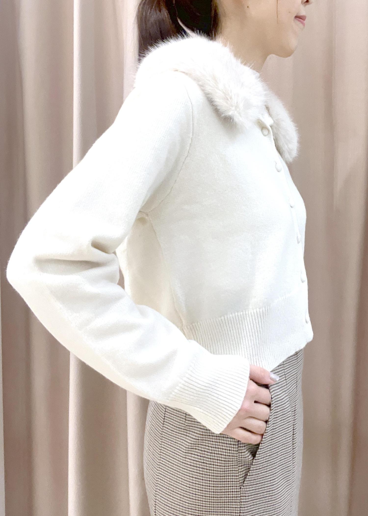 ファーを取り外すとシンプルな襟のニットカーディガンになります。 -