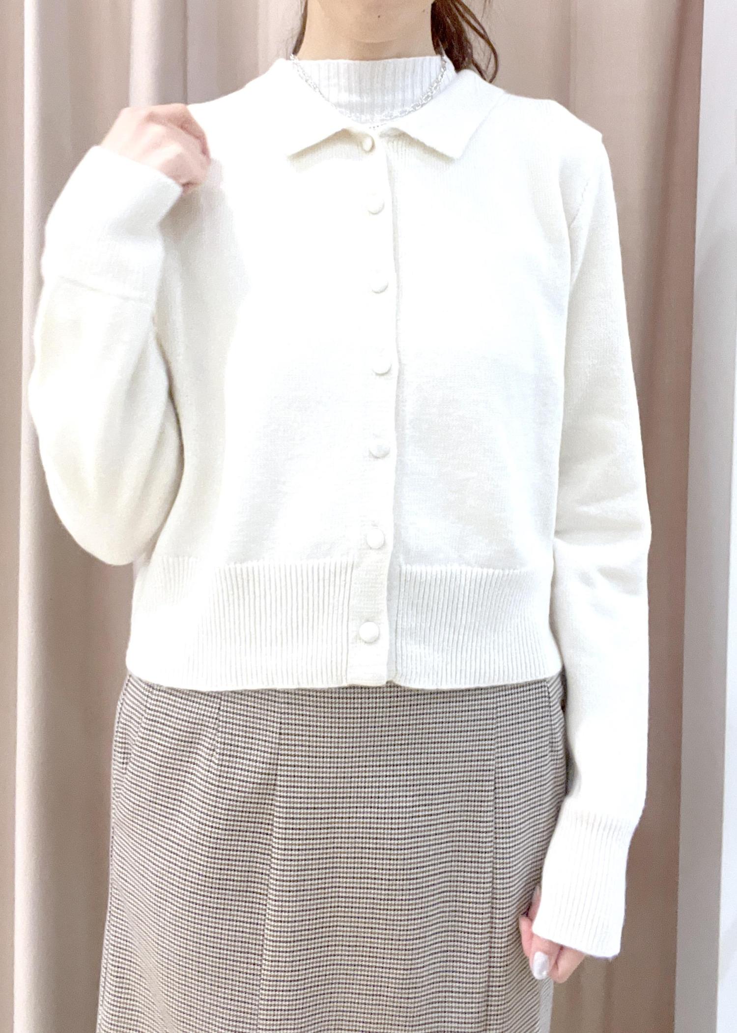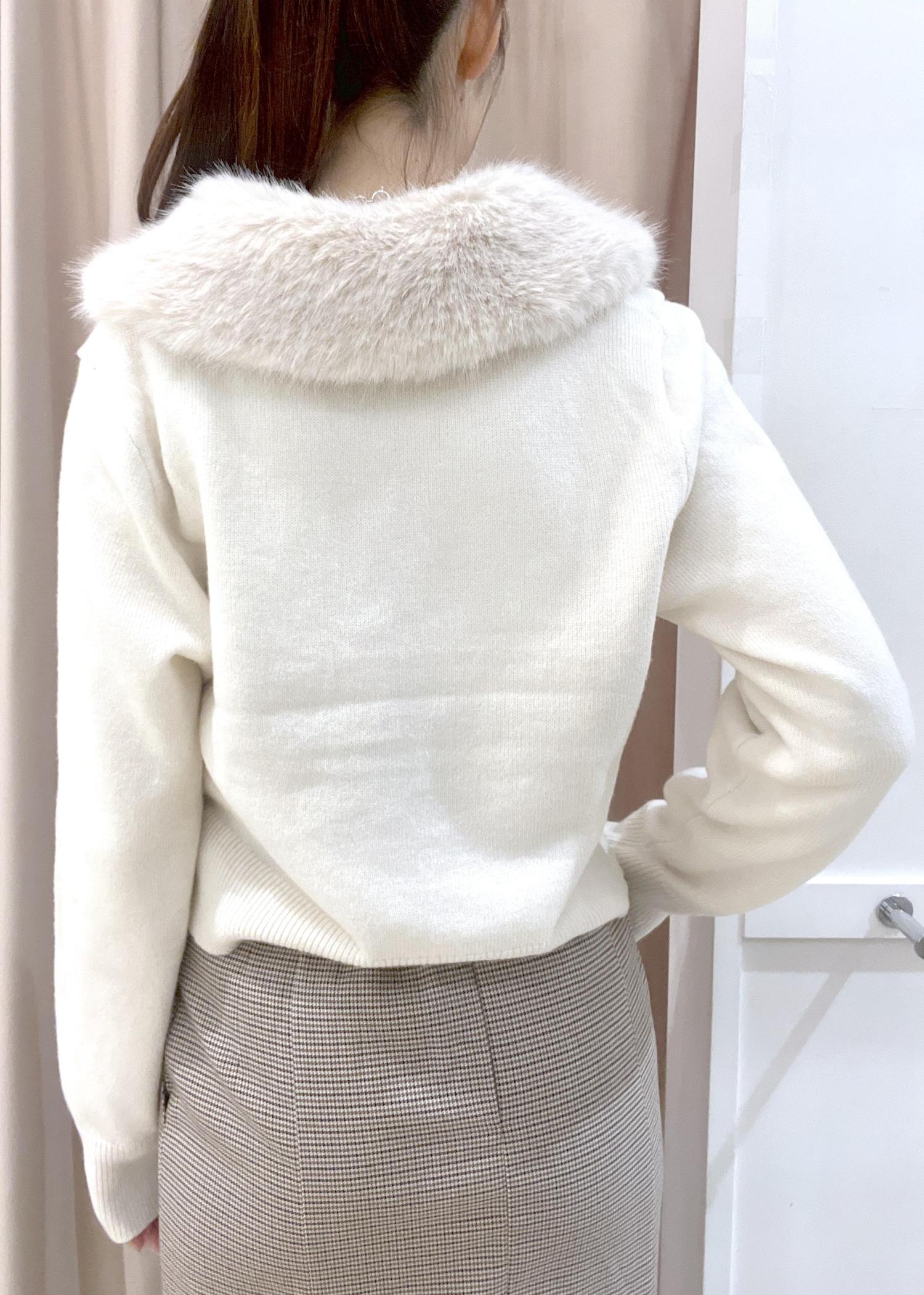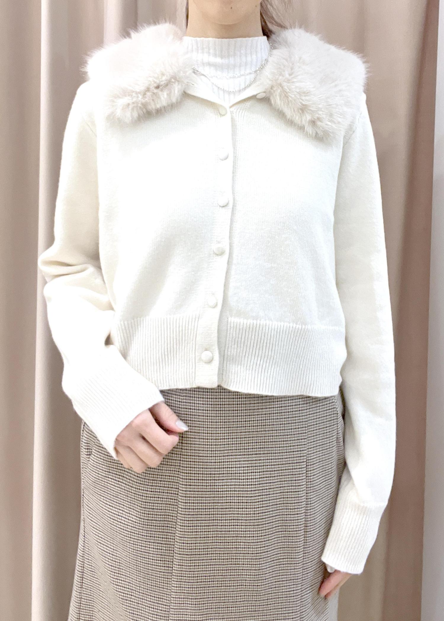 ファーを取り外すとシンプルな襟のニットカーディガンになります。