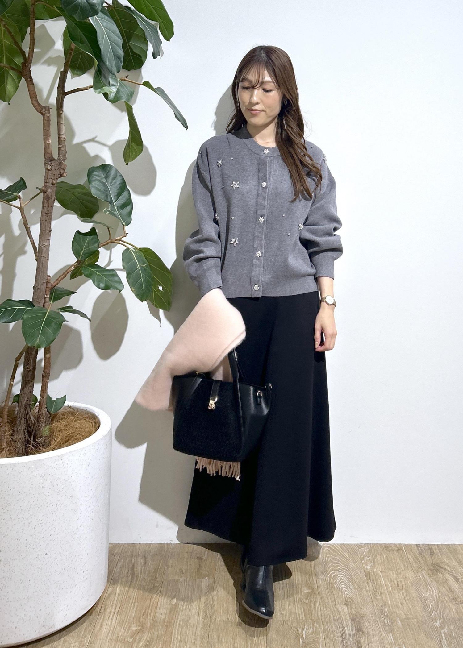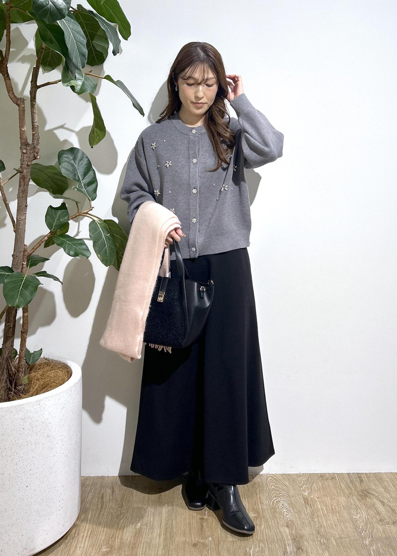 ビジューカーディガンで綺麗めコーデ