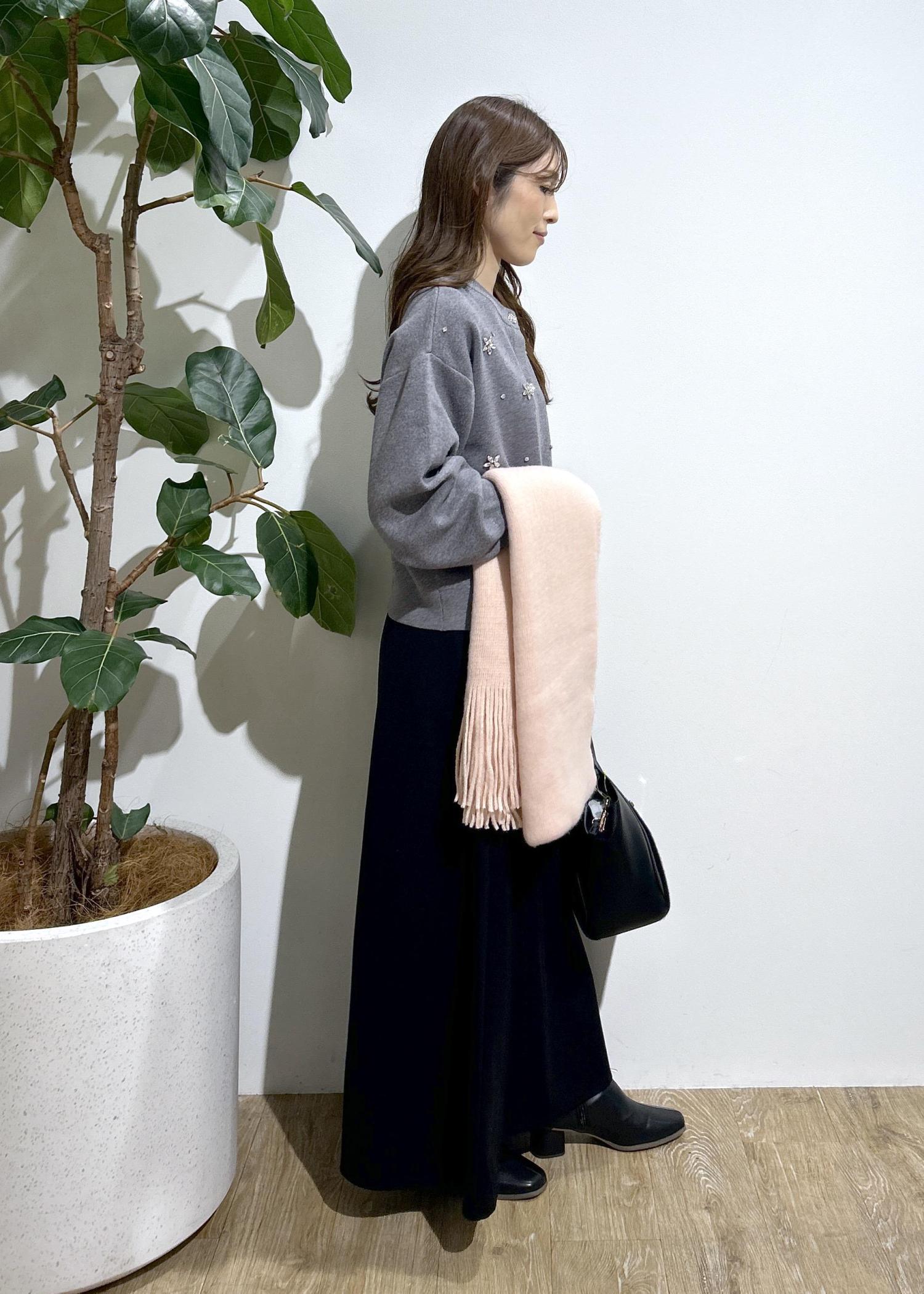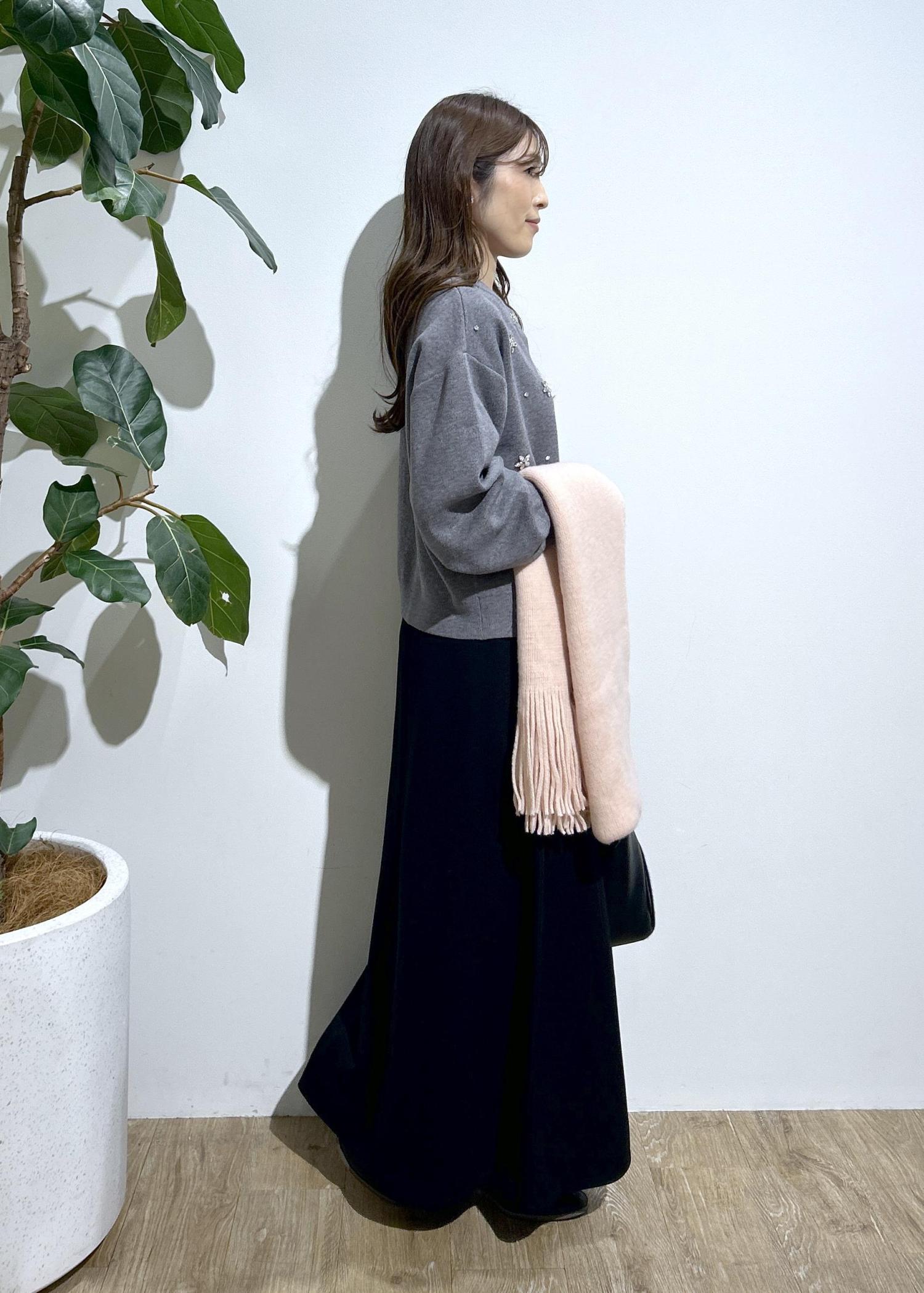 ビジューが華やかなのでスカートはシンプルなもので合わせました。