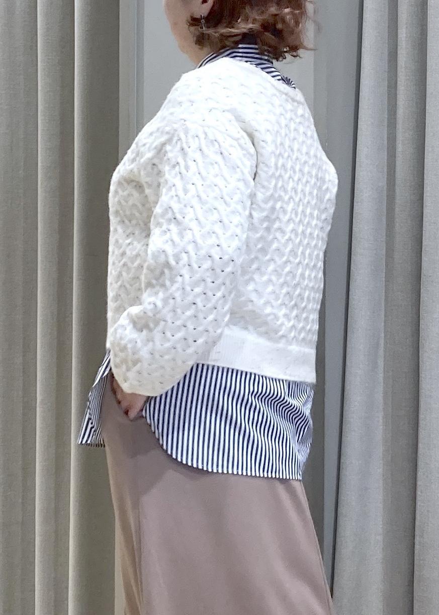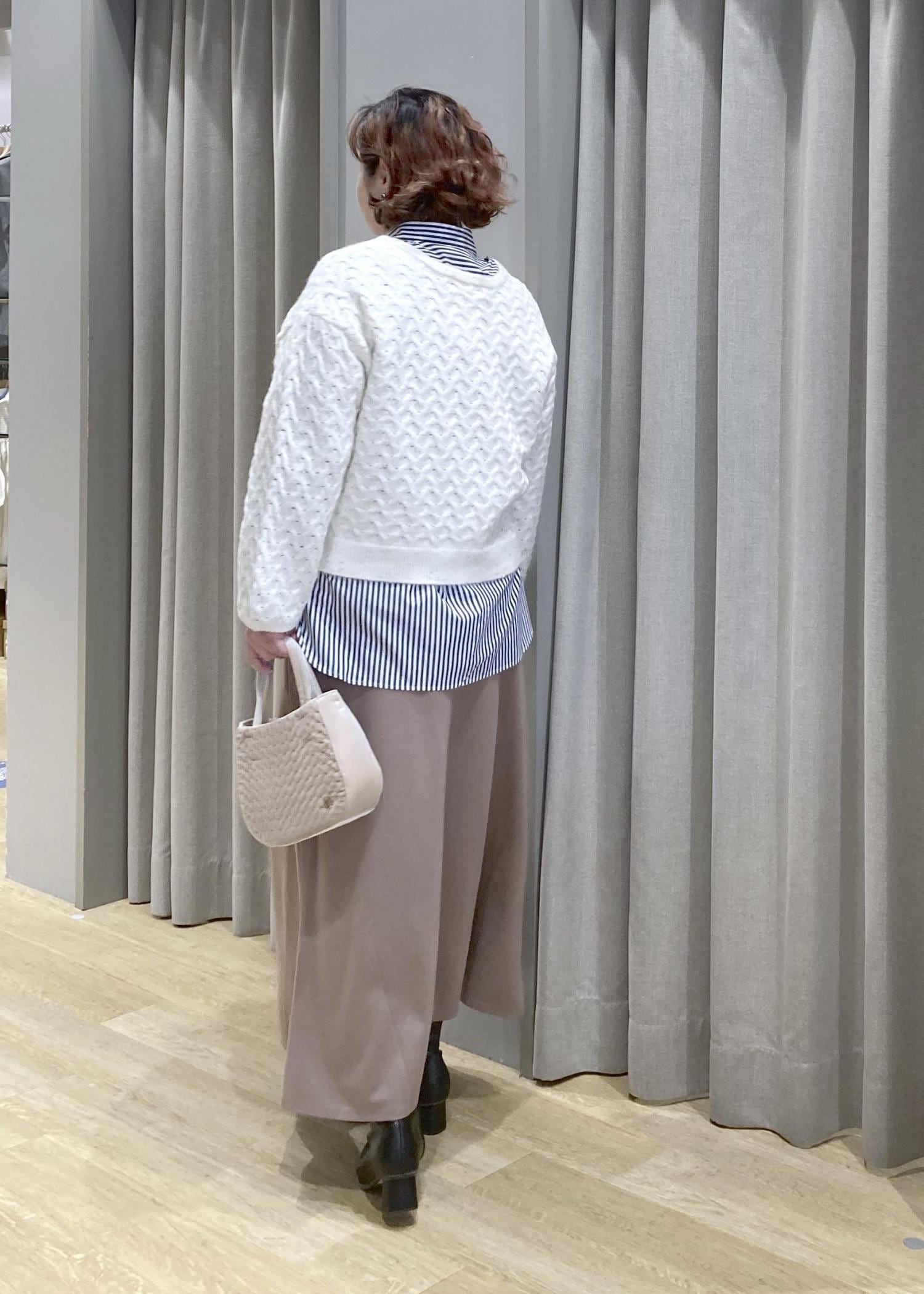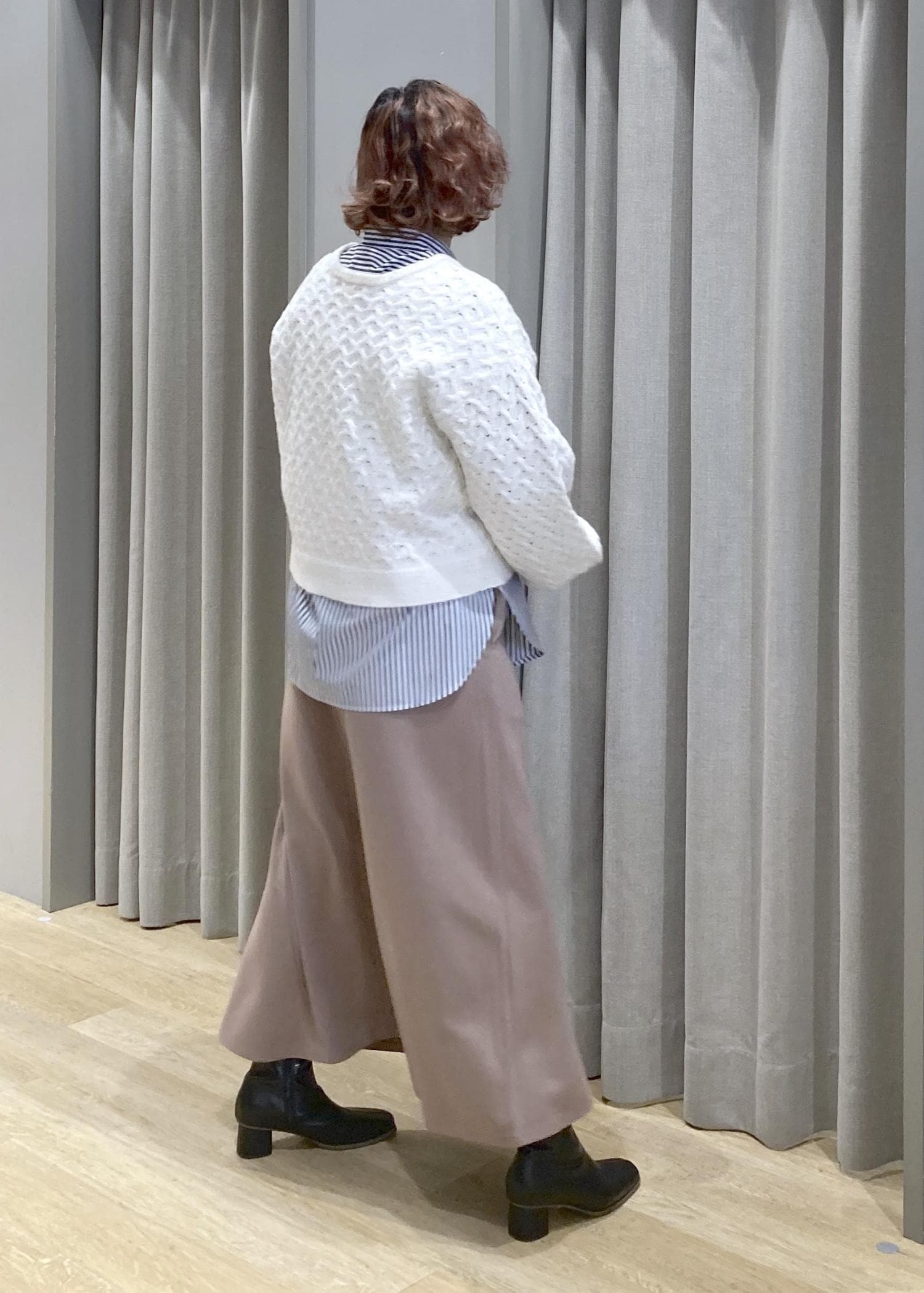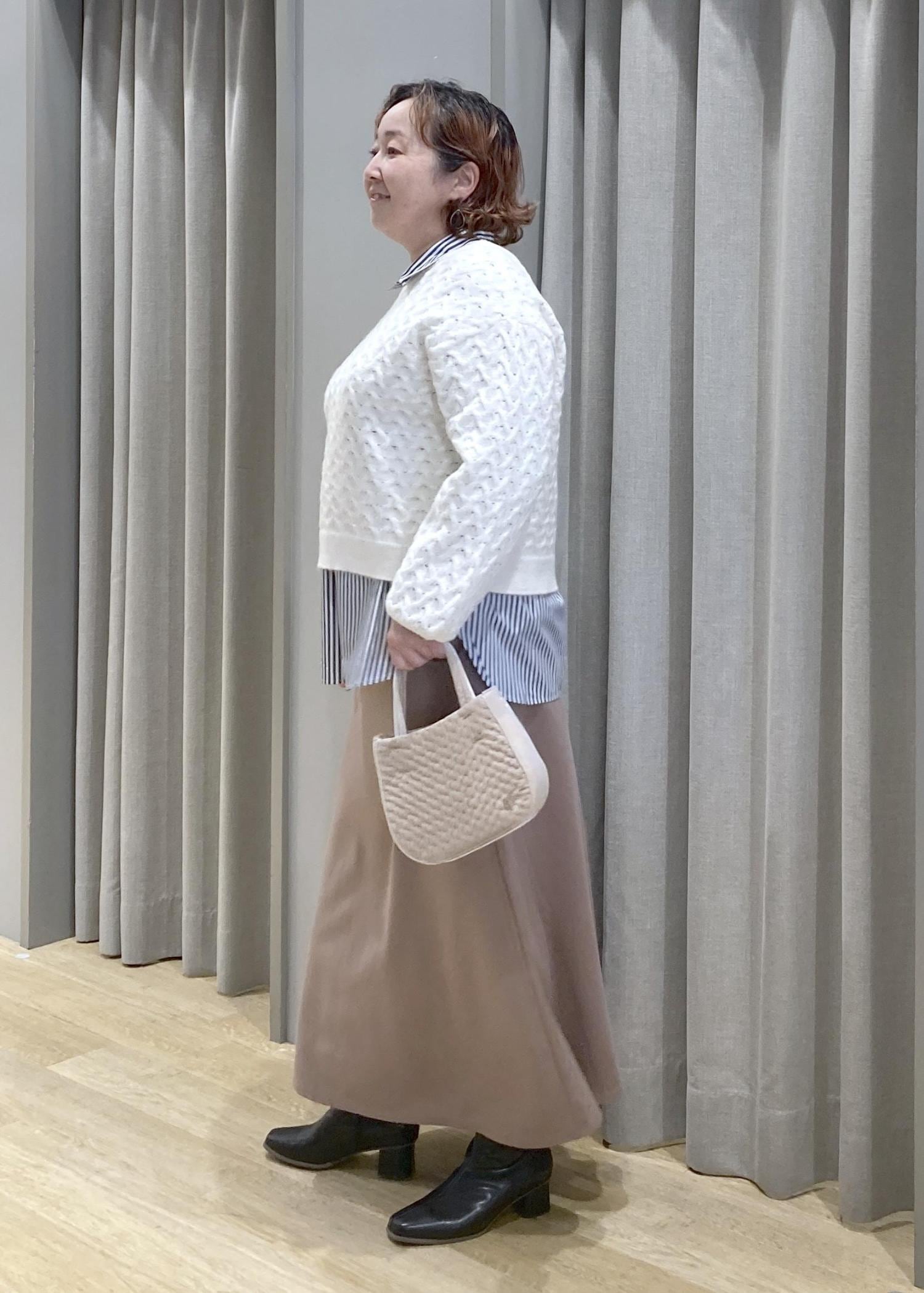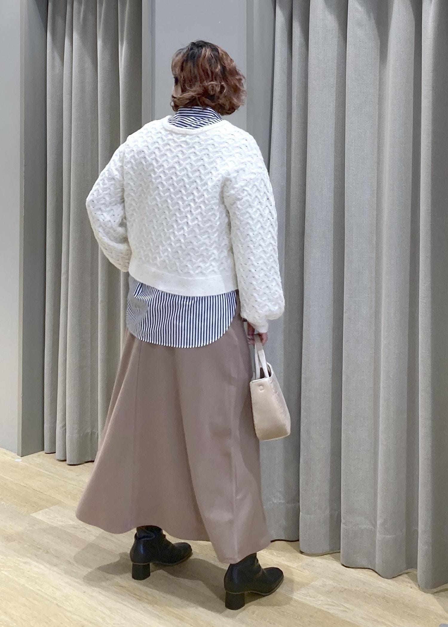 ニット✕スカートだと、ベーシックすぎる時には、アクセントにブラウスをインしてレイヤードスタイリングにしてみました。