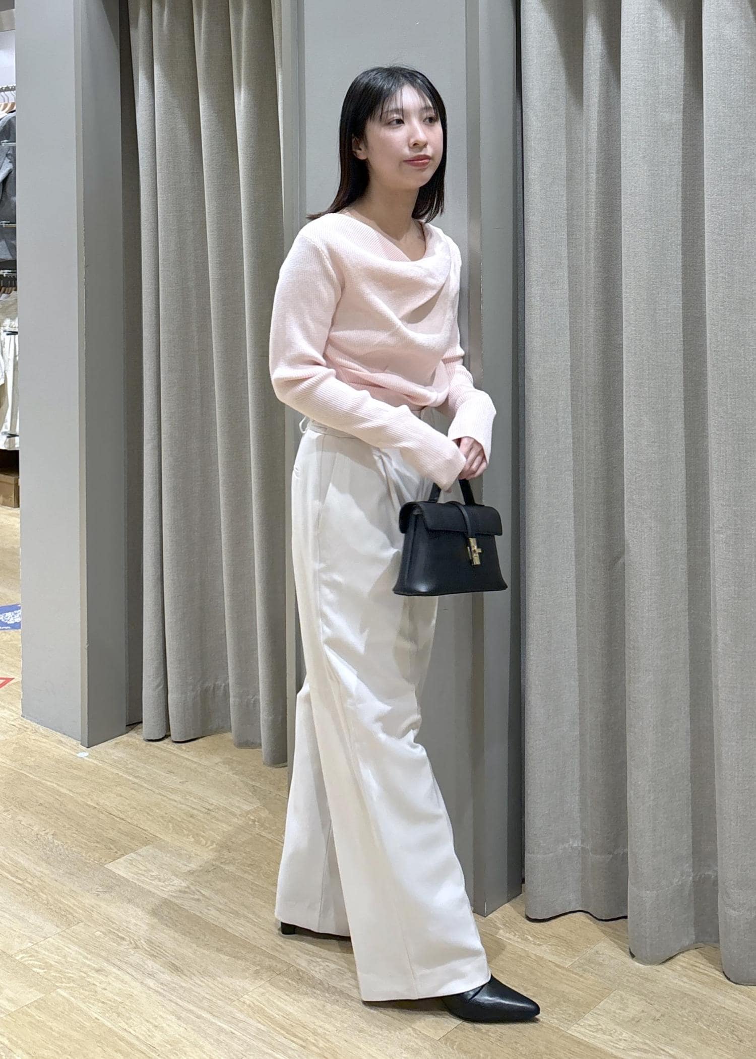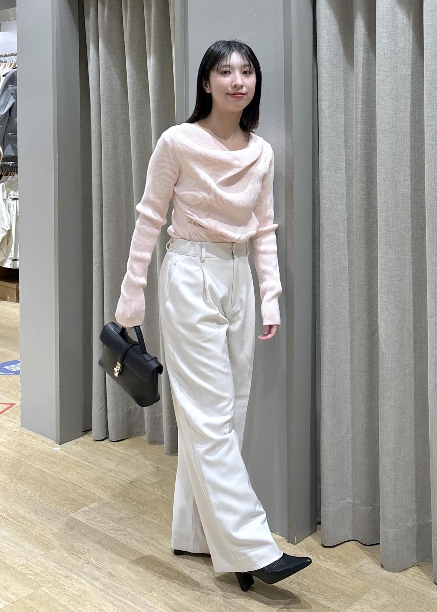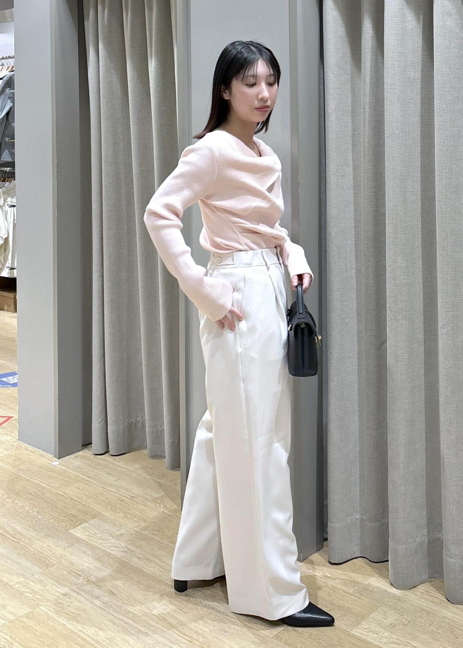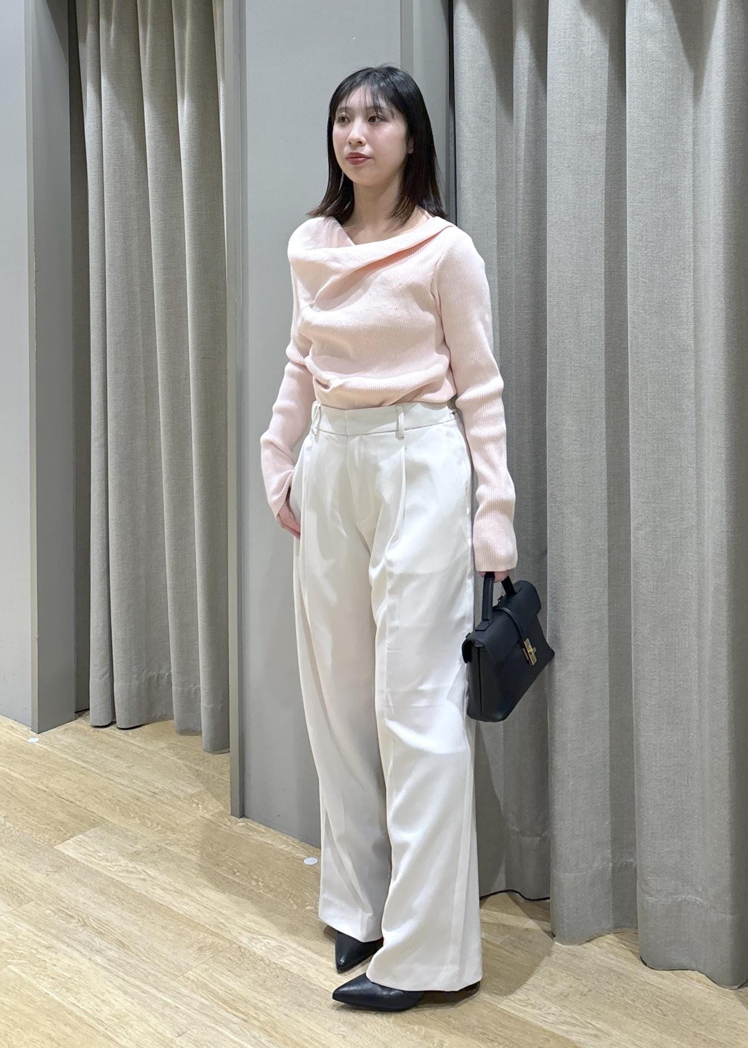 NEW!VIS【美得】もちもちドレープリブニットトップス/イージーケアピンク / F¥4,389レビュー身長158cm、Fサイズ着用。