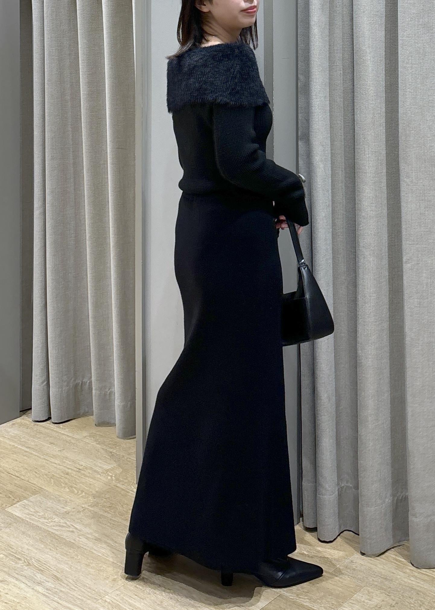 フェザーヤーンオフショルニット×ニットタイトスカート