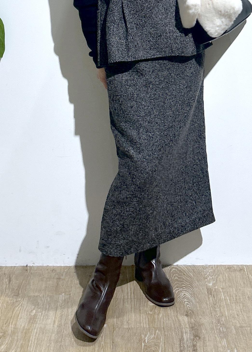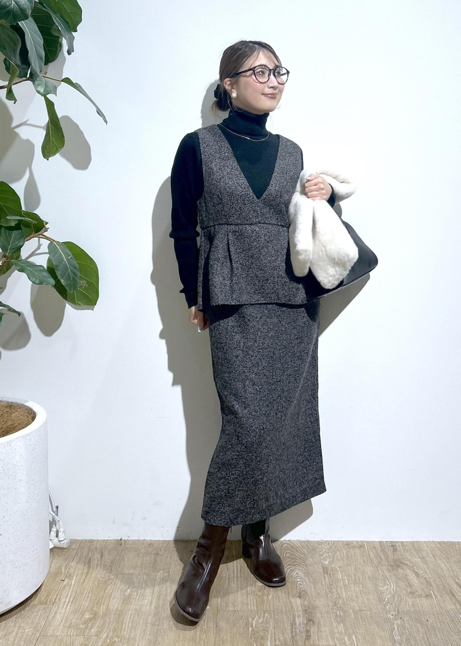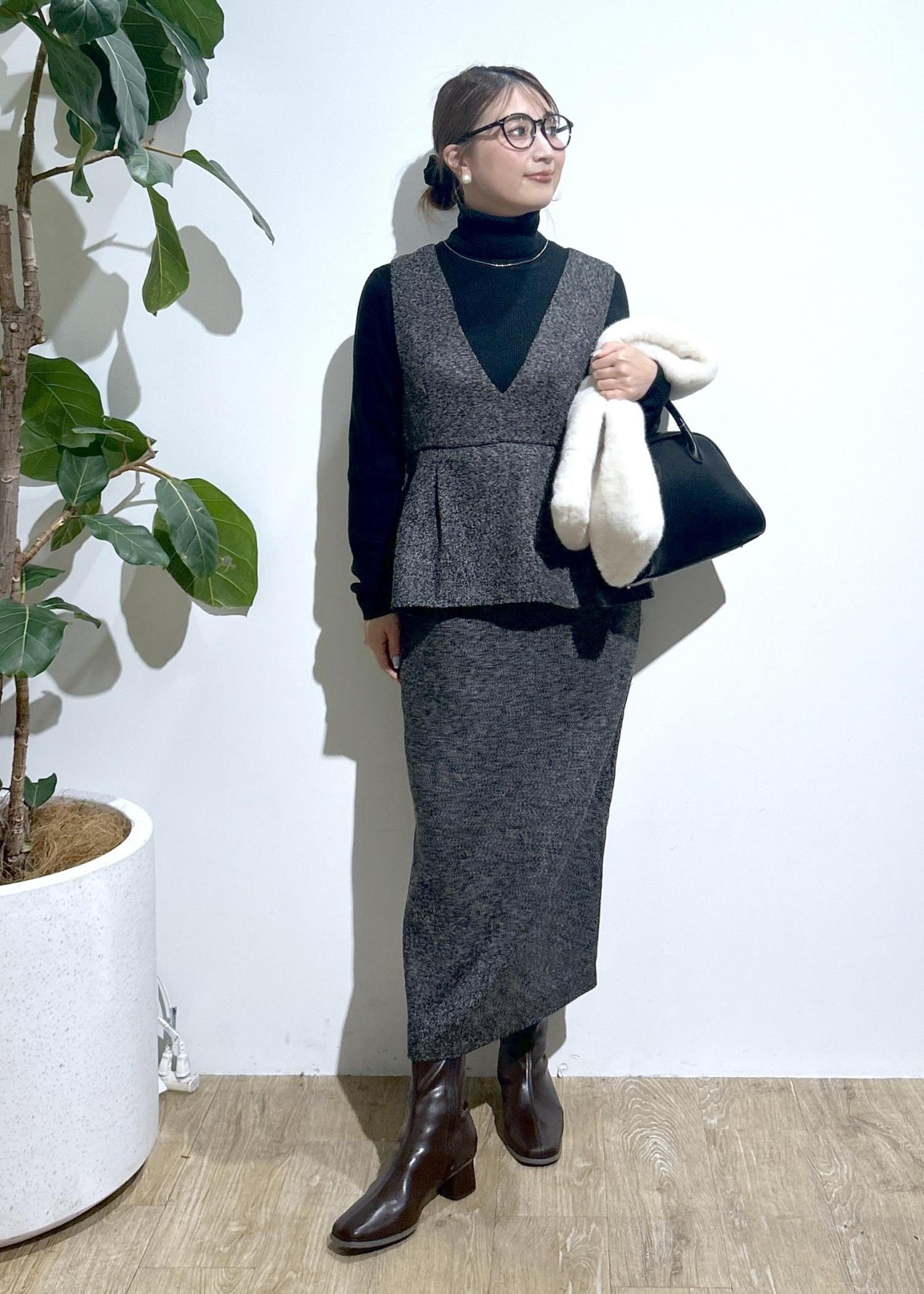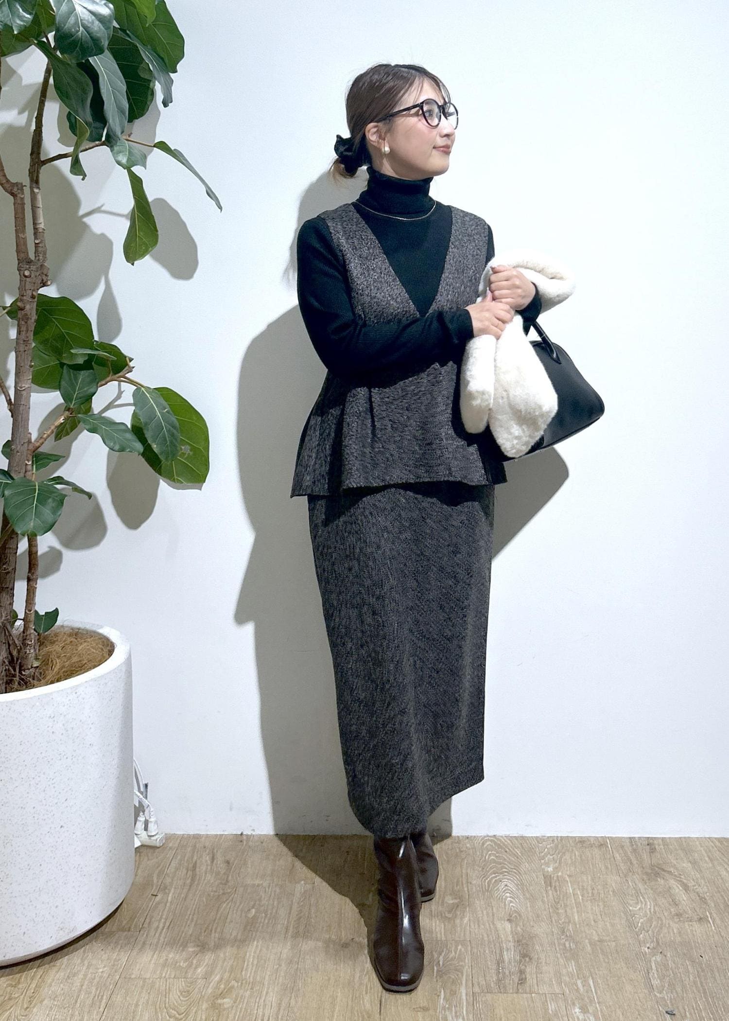 女性らしいエレガントな印象を与えるため、オフィスやフォーマルなシーンにもおすすめです。154cmのわたしはSサイズ着用で足のスネ辺りです。
