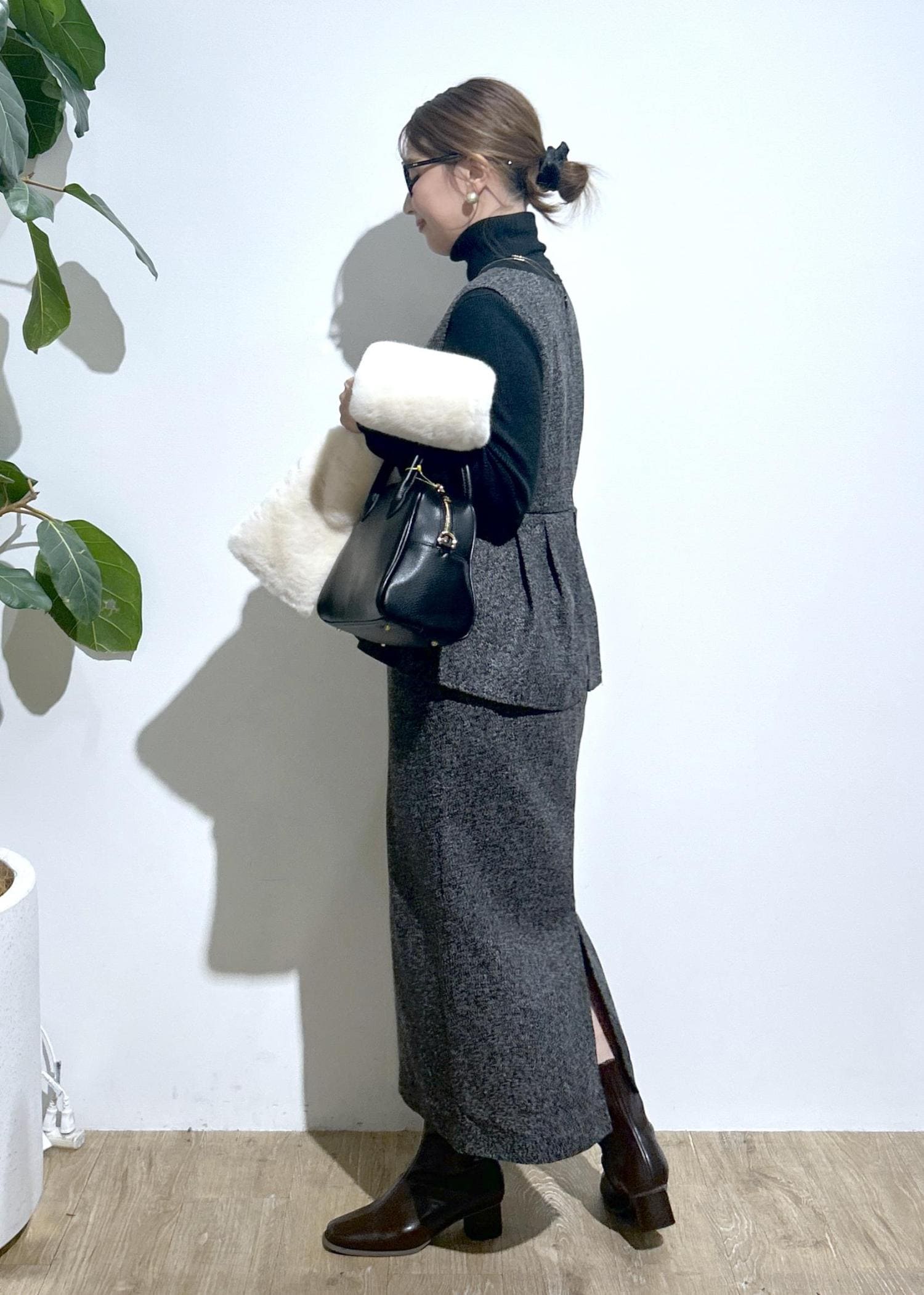女性らしいエレガントな印象を与えるため、オフィスやフォーマルなシーンにもおすすめです。154cmのわたしはSサイズ着用で足のスネ辺りです。 -