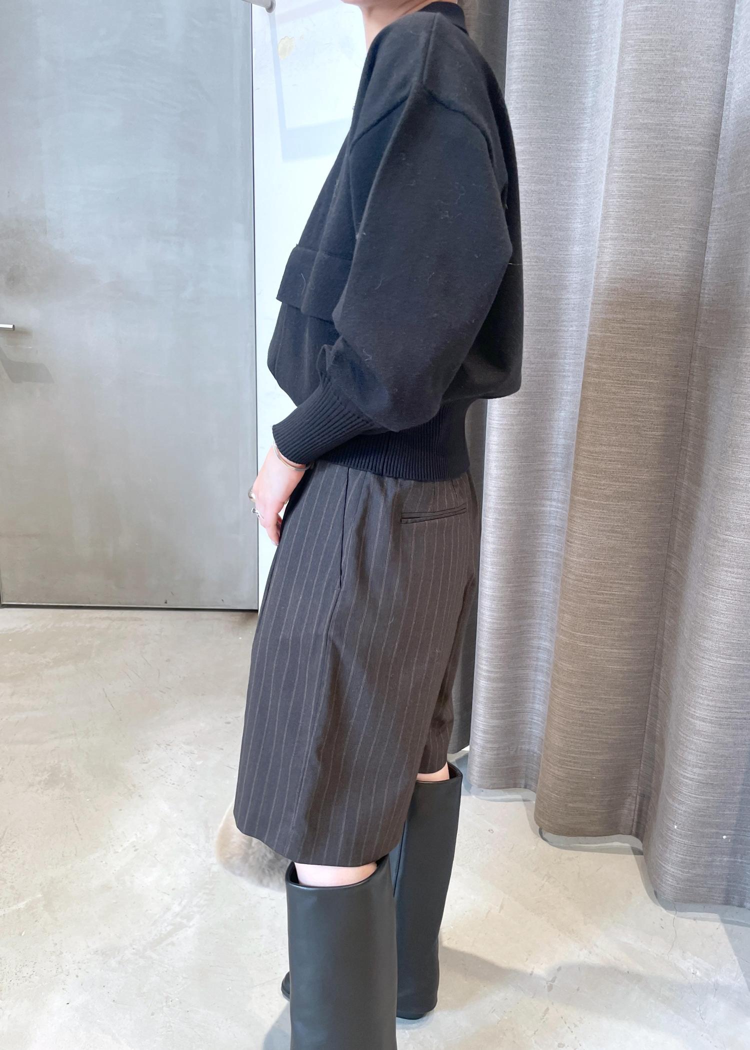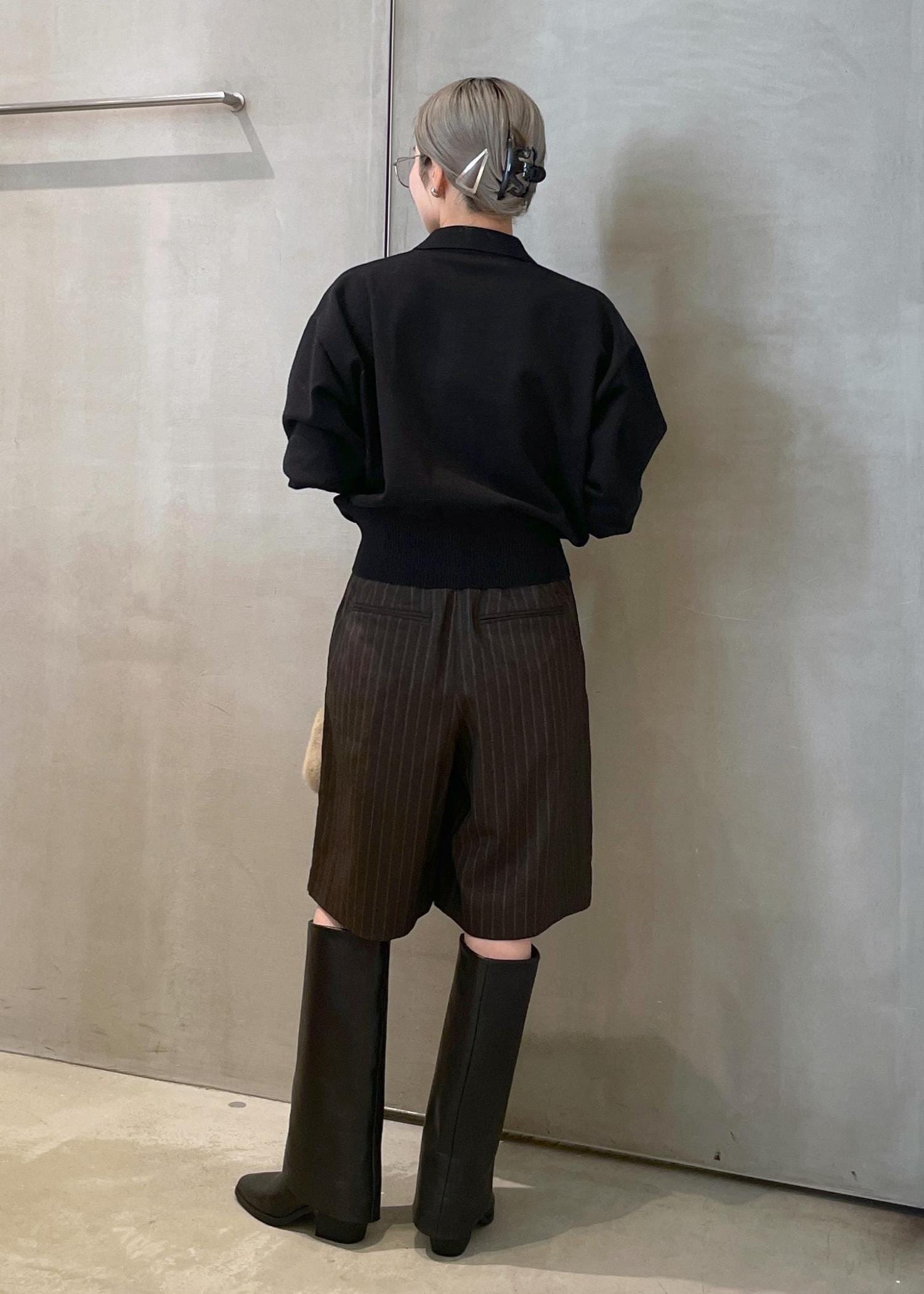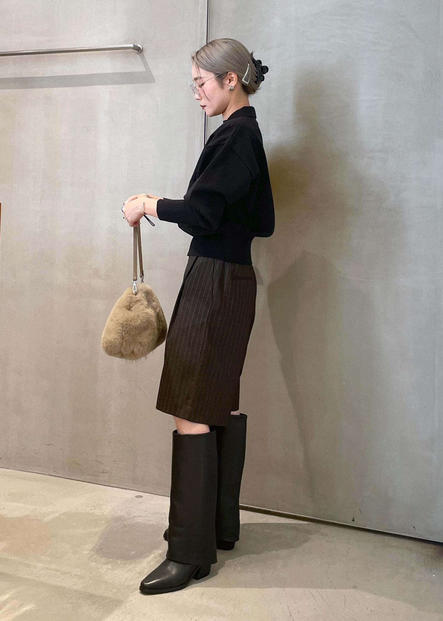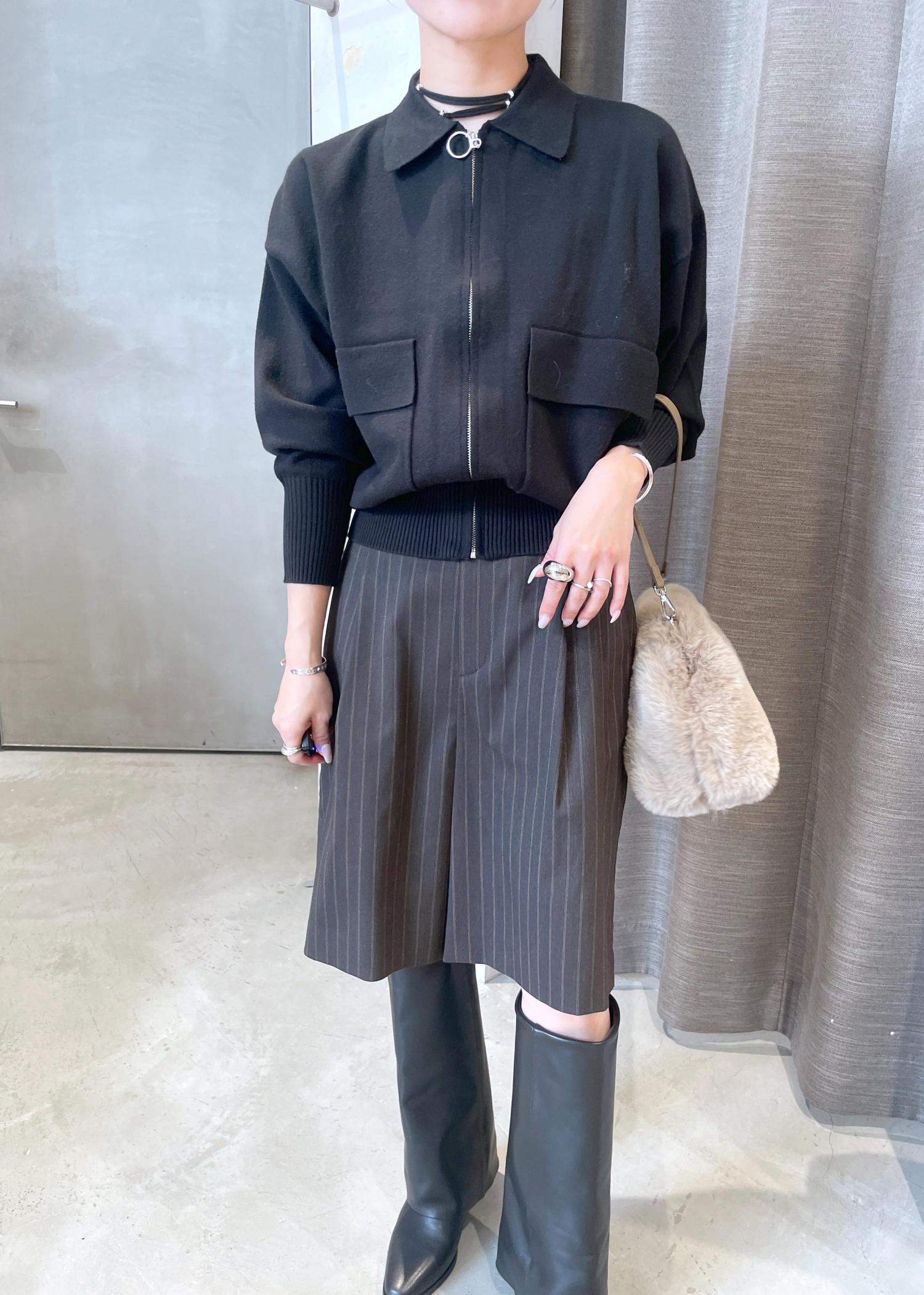 こちらは同素材のIラインスカートでセットアップが叶います。普段はカジュアルにデニムやショートパンツ、綺麗目なシーンではセットアップもおすすめです!