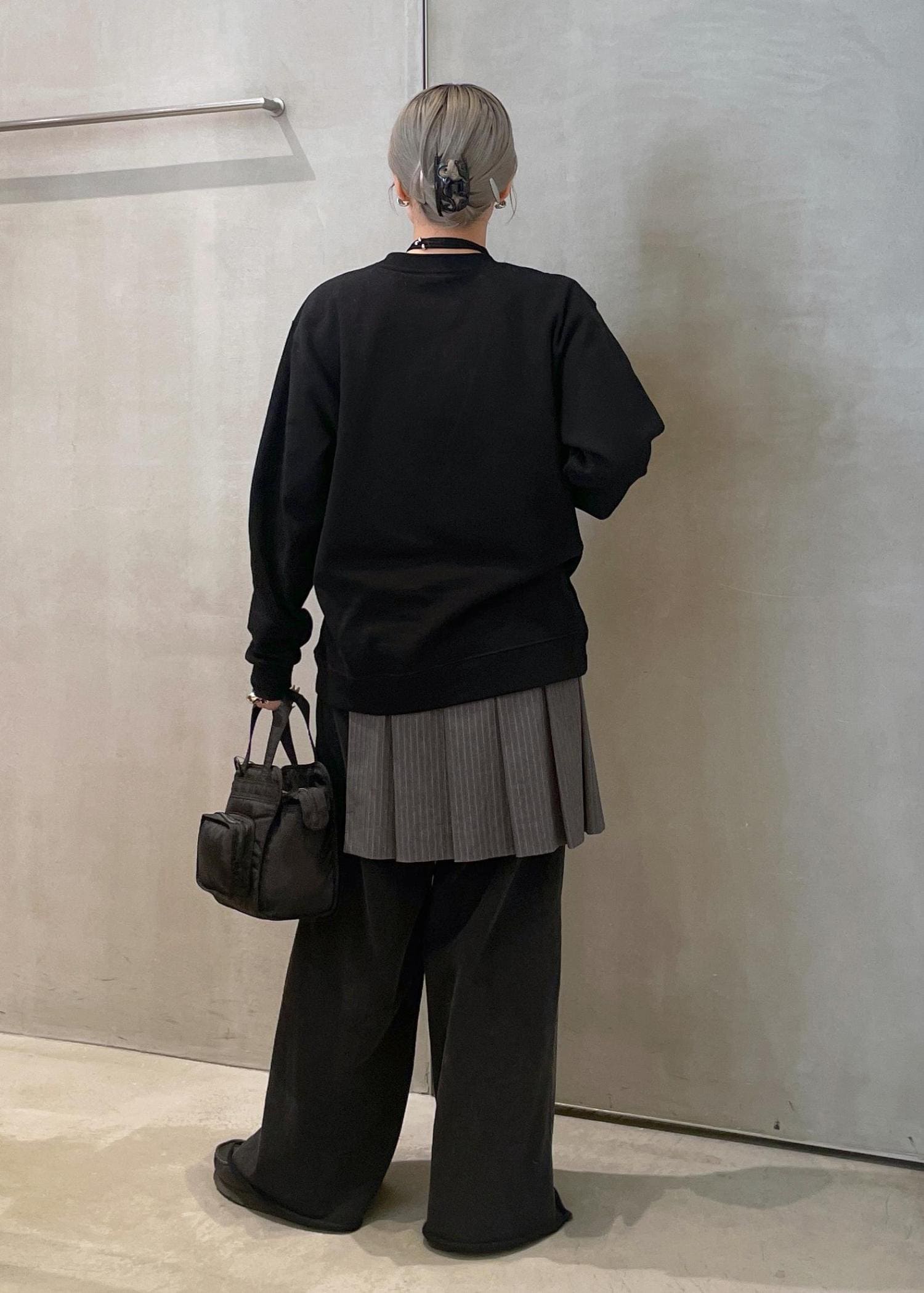 スウェット生地ですが、モードな雰囲気のコーディネートにしました。