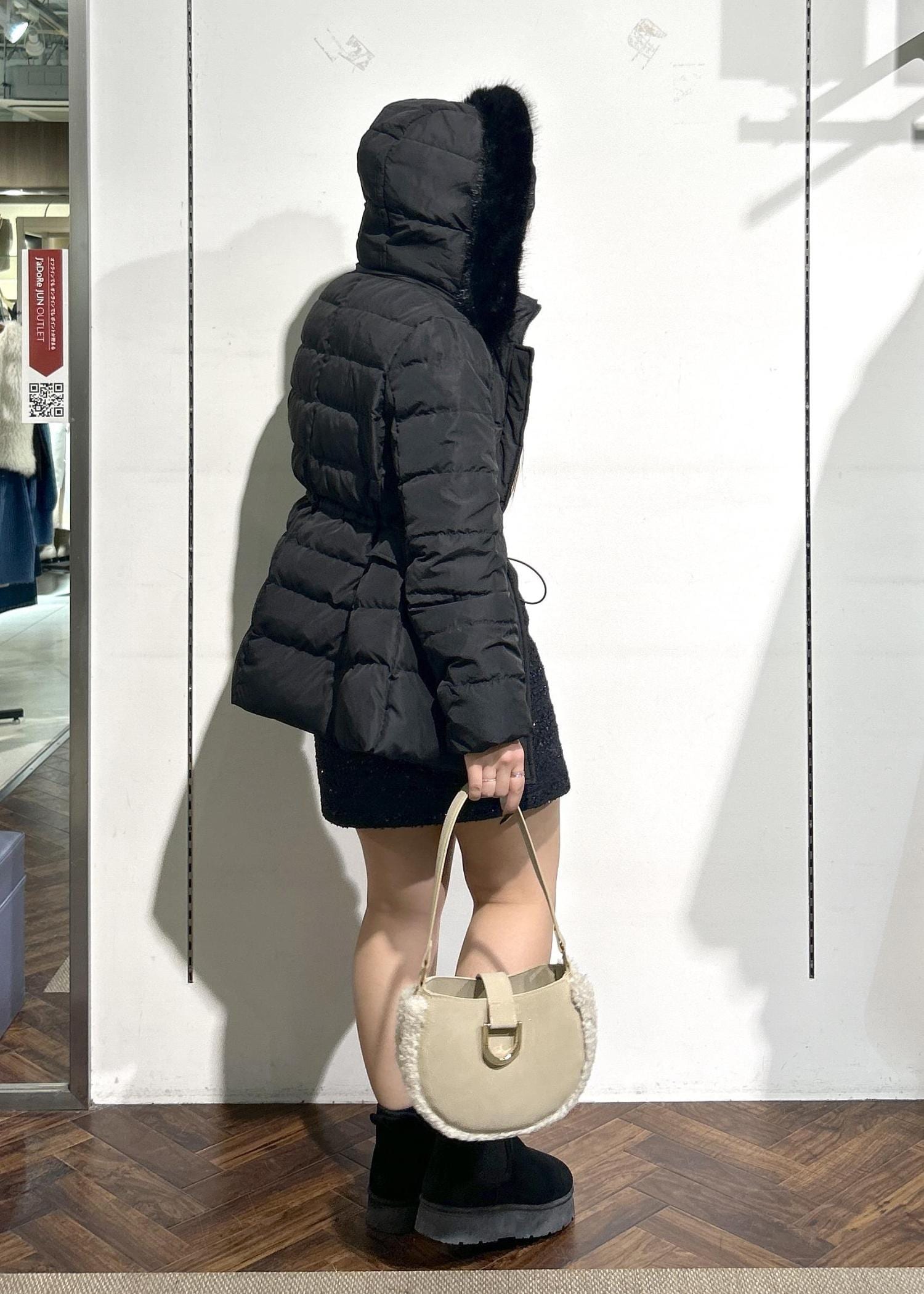 ROPÉ PICNIC【GREEN DOWN/グリーンダウン】ファー付きダウンミドル丈コート/リンクコーデブラック / M¥18,700レビュー大きめなファーのついたフードが小顔効果◎