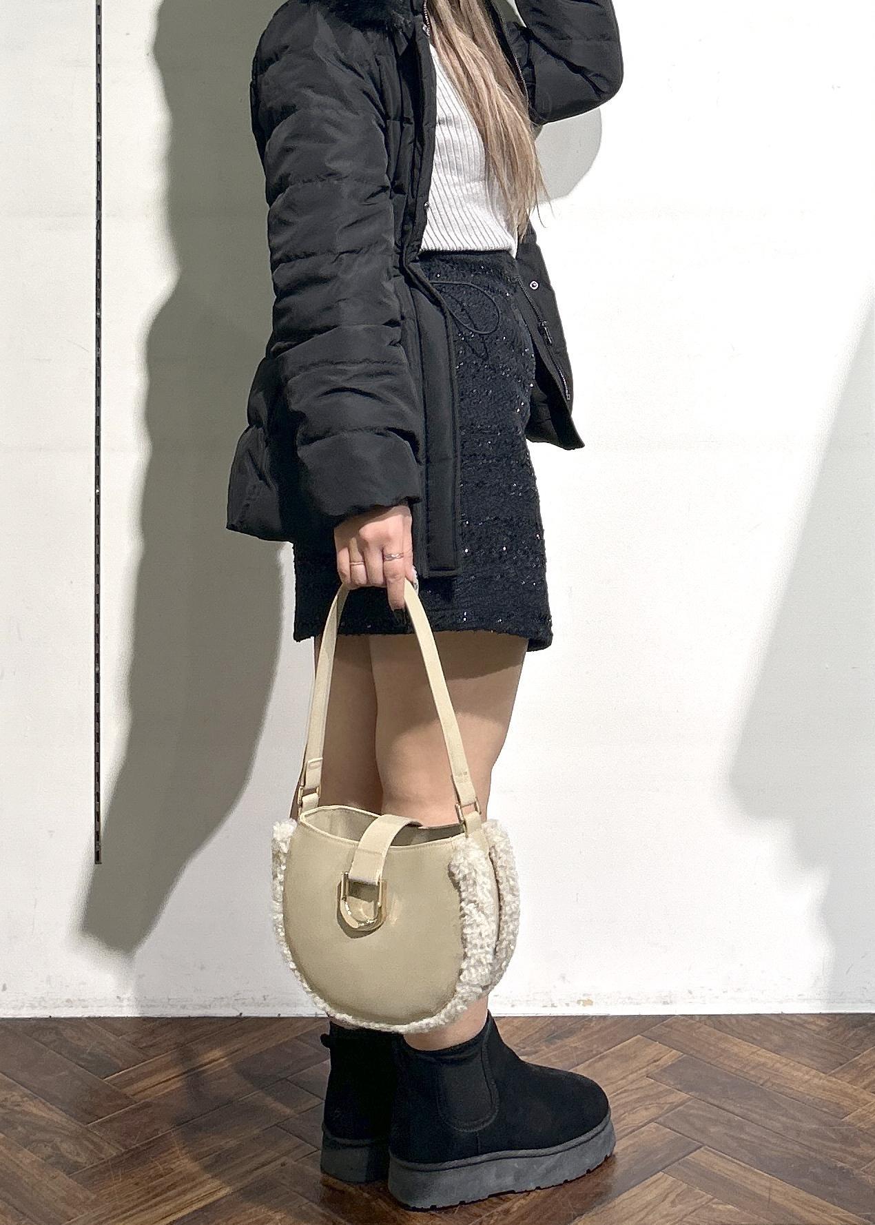 ROPÉ PICNIC PASSAGEムートンライクラウンドワンショルダーバッグベージュ系 / F¥4,197レビュースエードと色味が秋冬らしいふわふわボアのハンドバックです。