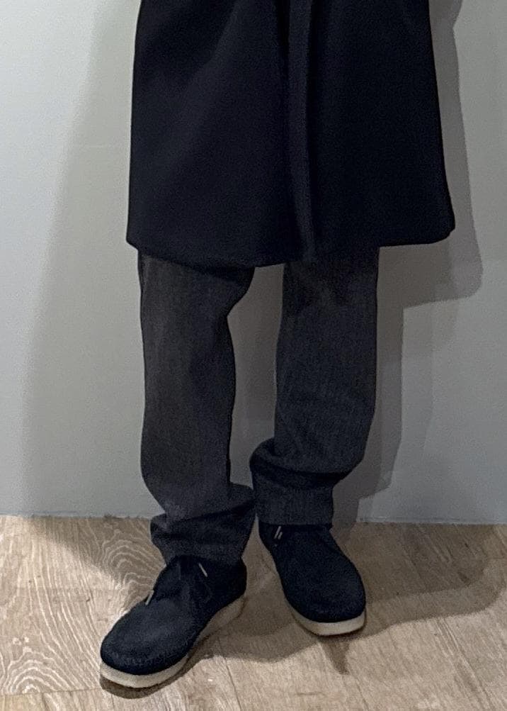 渡りに適度なゆとりを持たせつつ、膝から裾にかけて強めにテーパードを効かせた新しいシルエット。