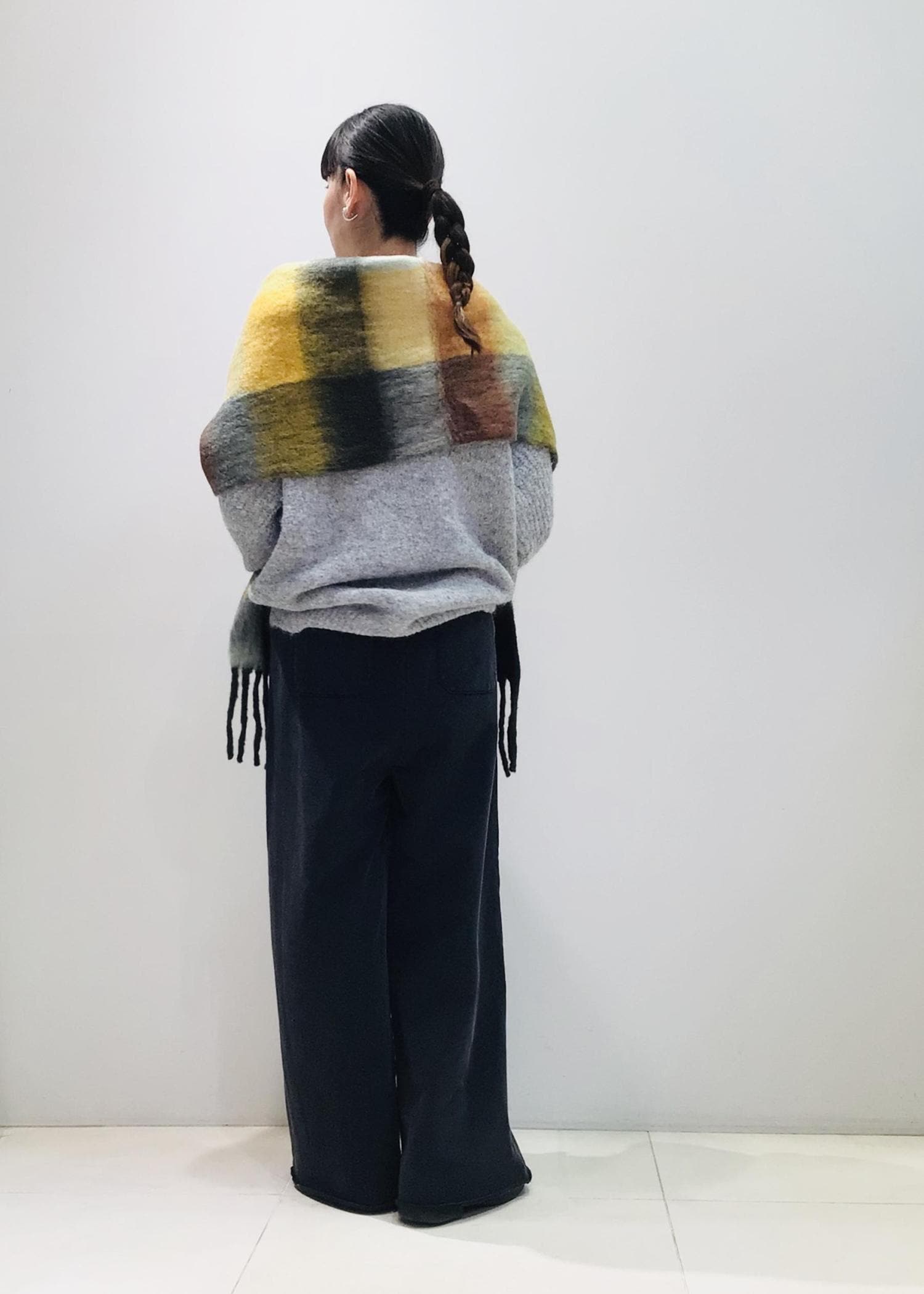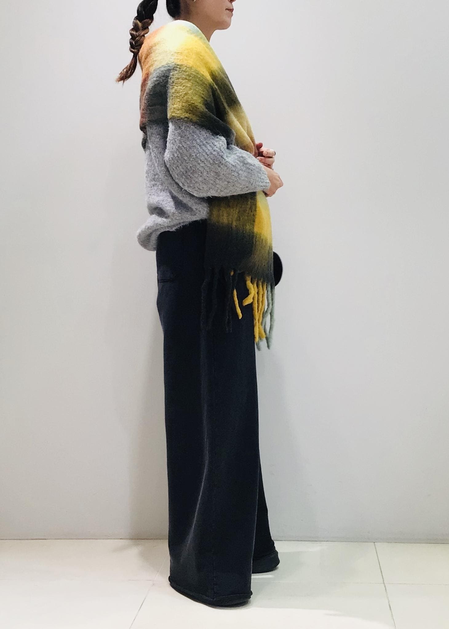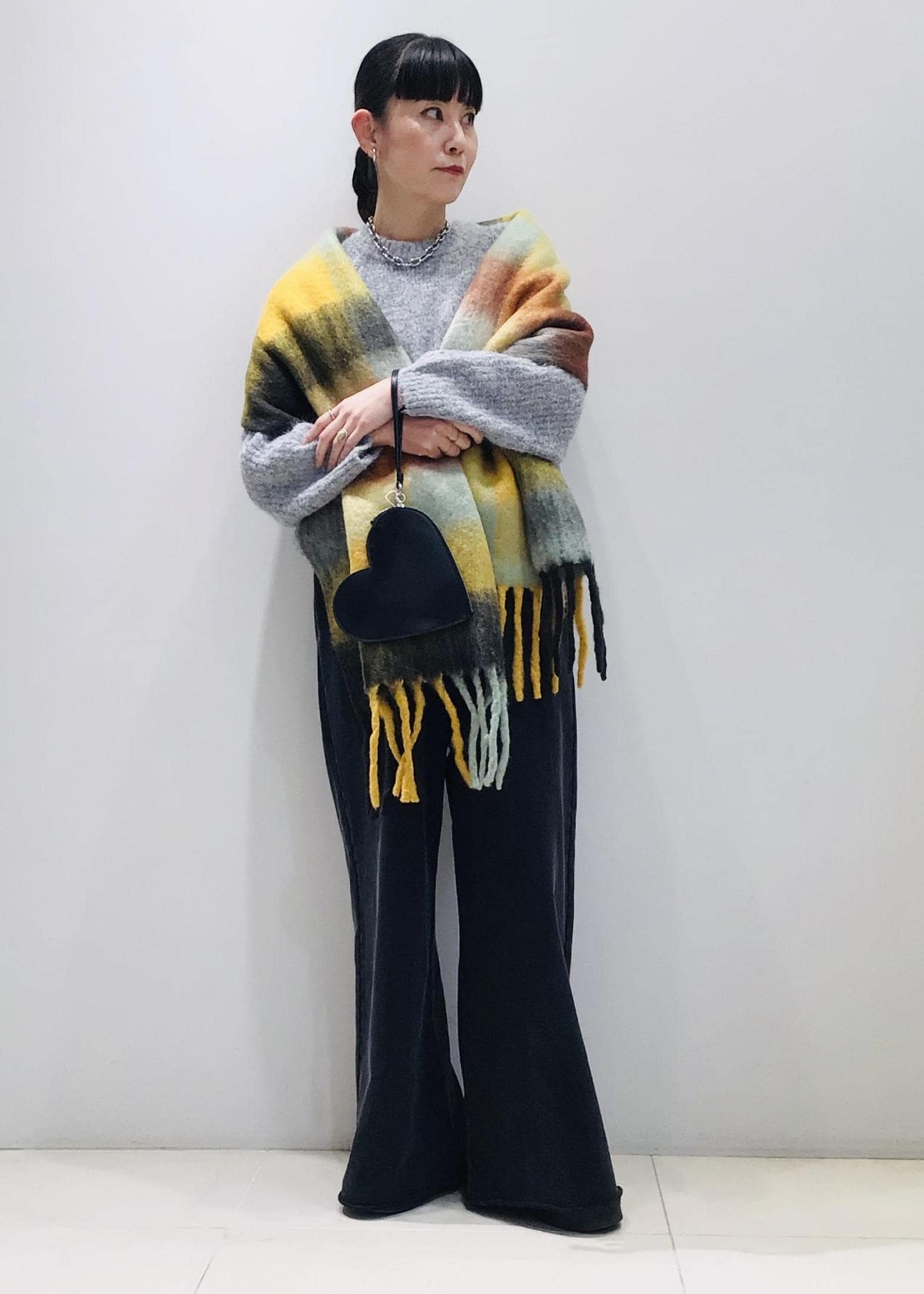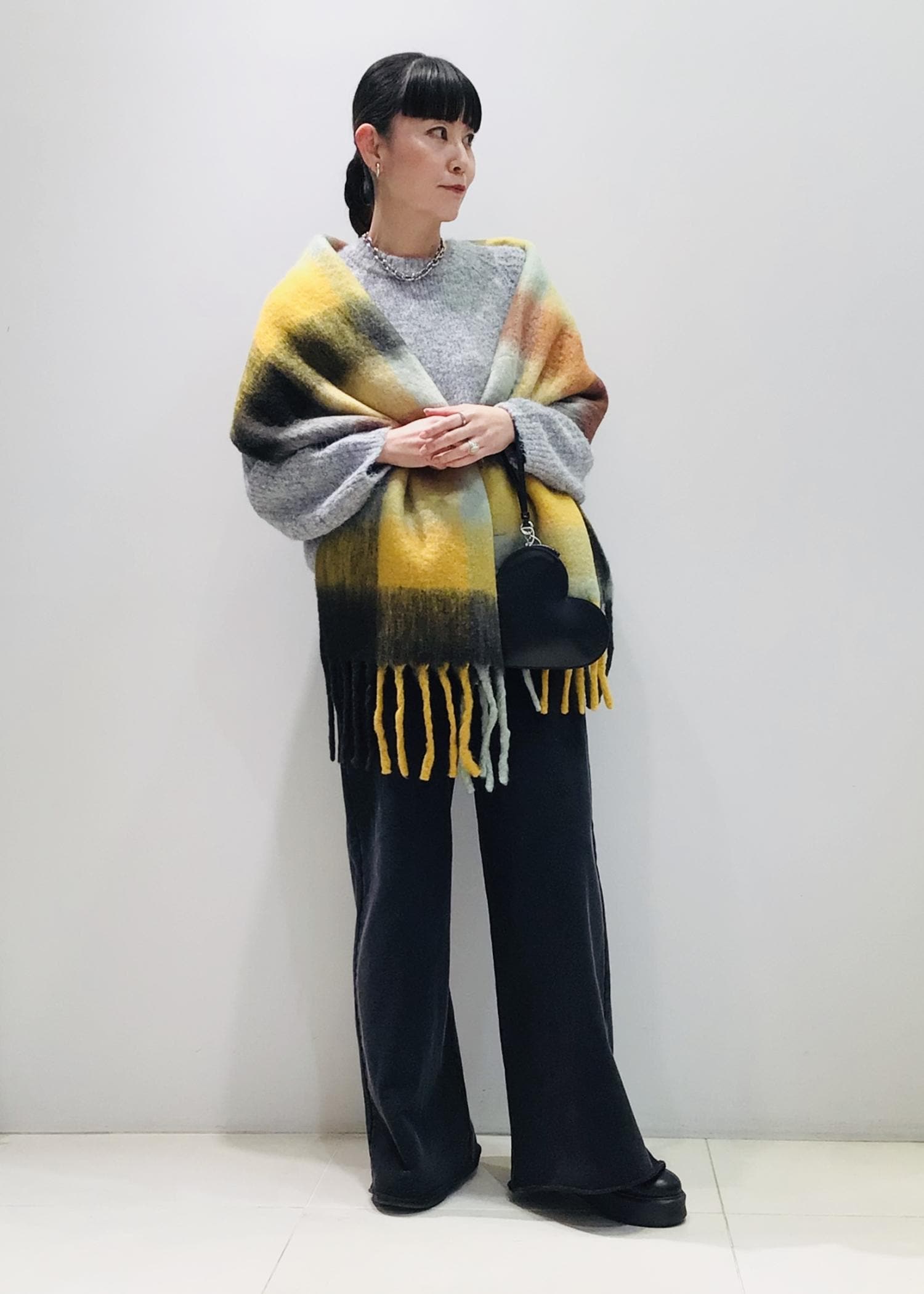 今日は以前にも何度かご紹介しているシェットランド風ニットにふわふわのチェック柄がたまらなくかわいいBagmatiのストールをサラッと羽織って、カジュアルながらもちゃんとおしゃれ見えするデイリーコーデを組んでみました