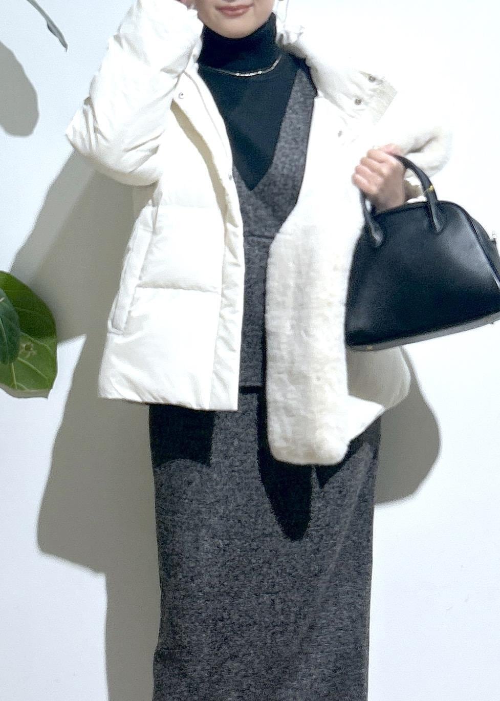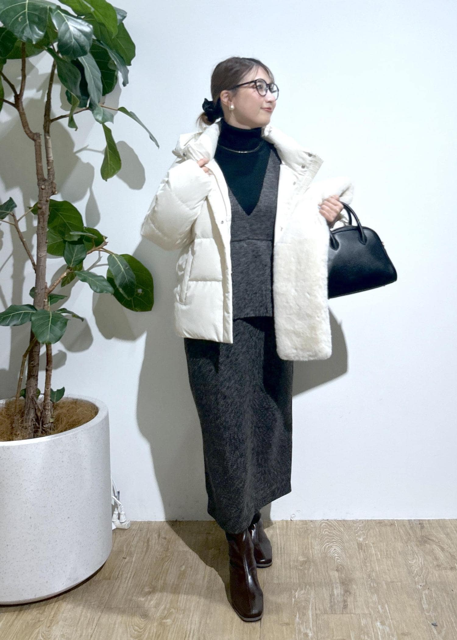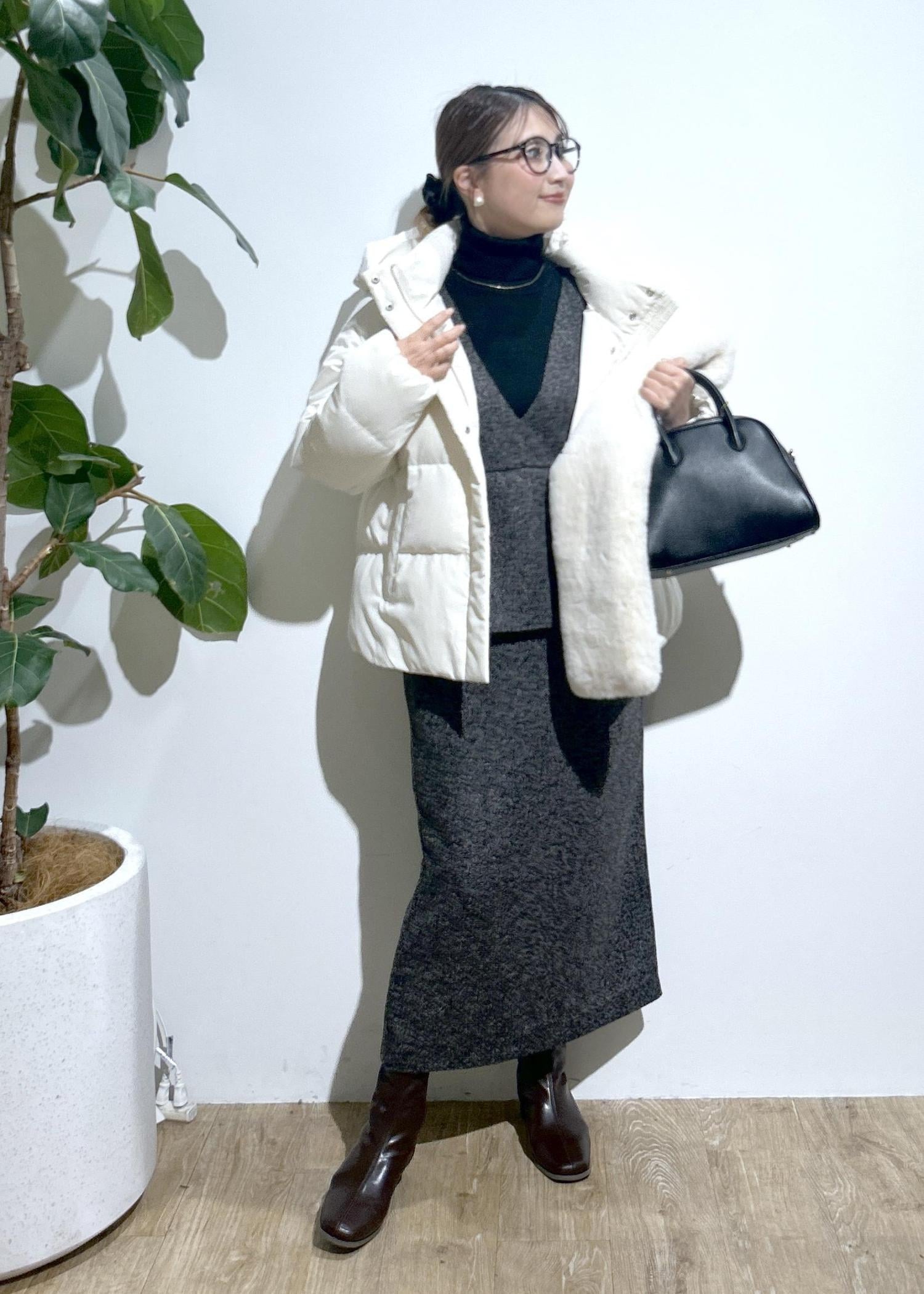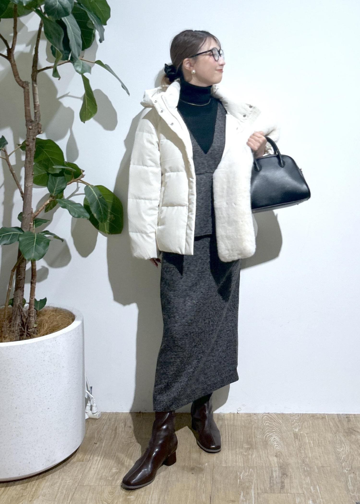ダウンはボリュームがあり過ぎるとカジュアルな印象になりがちですが、こちらのダウンは程よいボリューム感でキレイめにもカジュアルにもお召しいただけます。フードが取り外し可能なのも嬉しいPOINTです‼︎