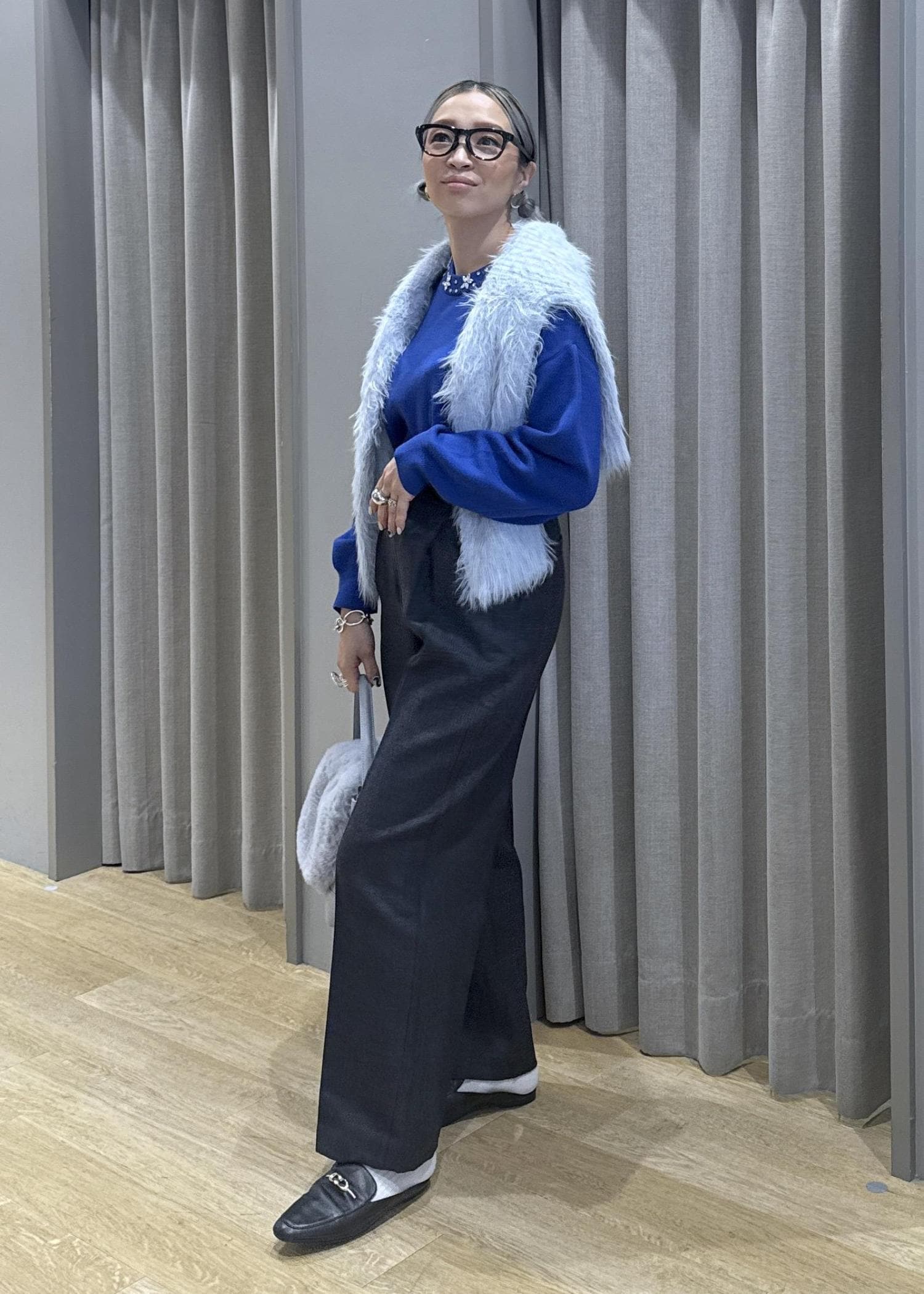 スリーブもボリュームがあり、全体的に緩めのシルエットなので
