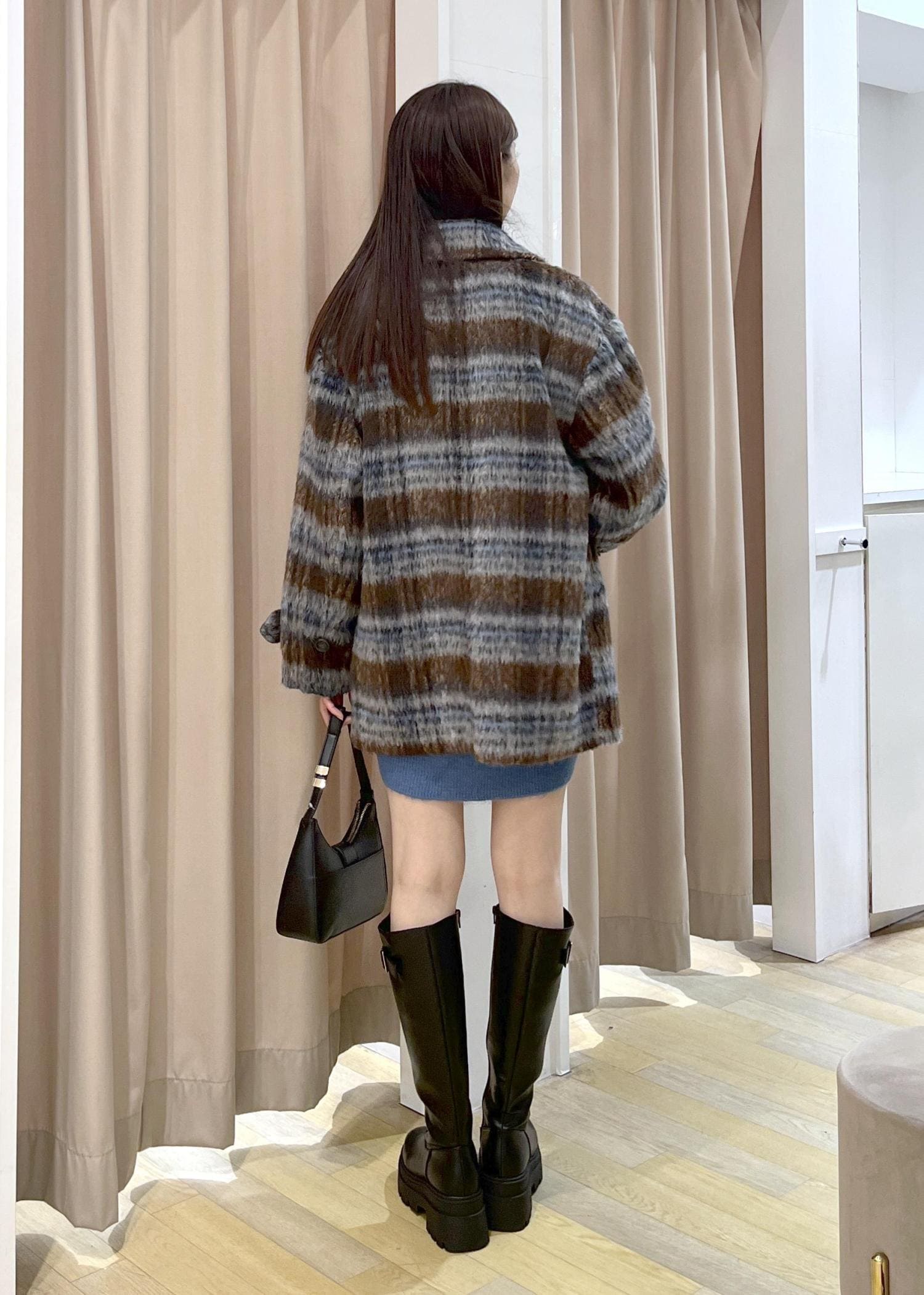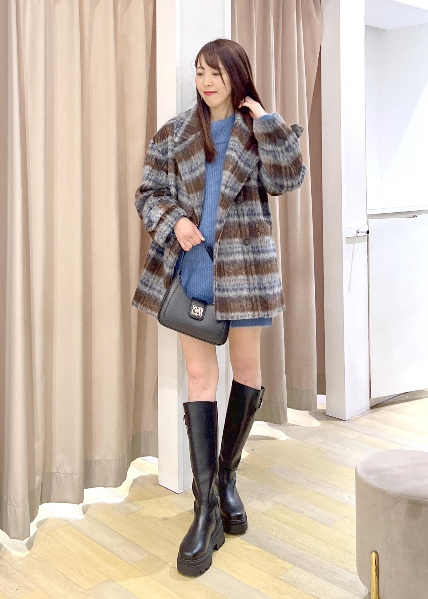 シャギーミディ丈Pコート×ミニニットワンピ