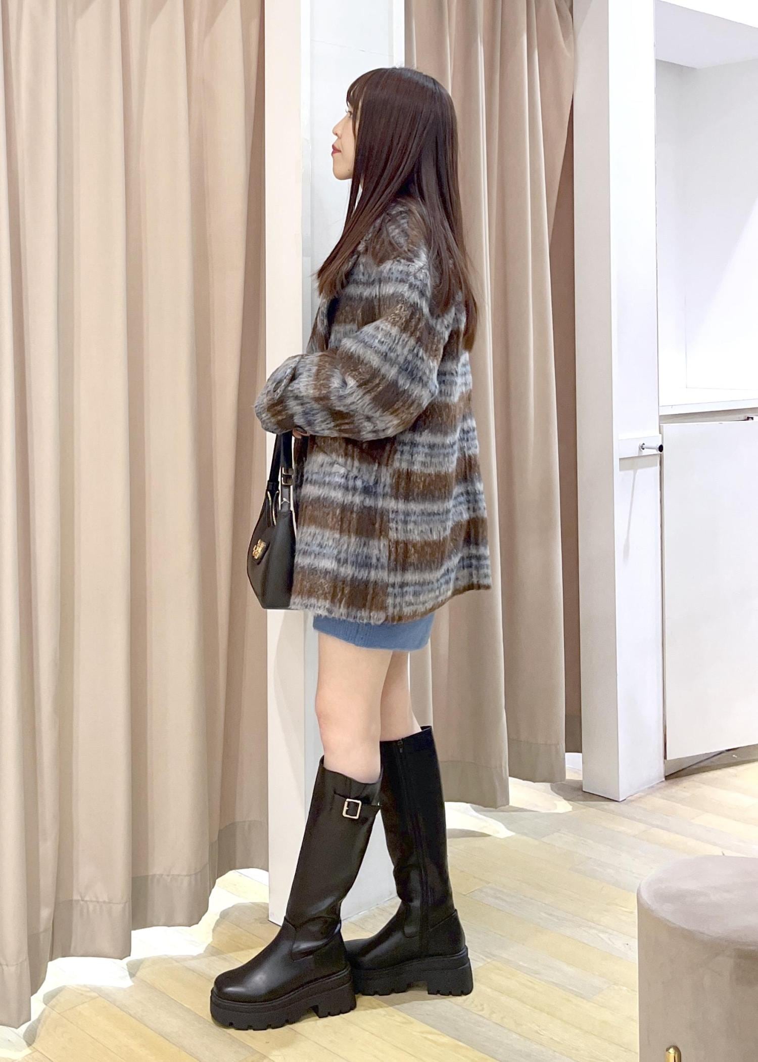 ミニ丈ワンピースでロングブーツとの相性抜群です。