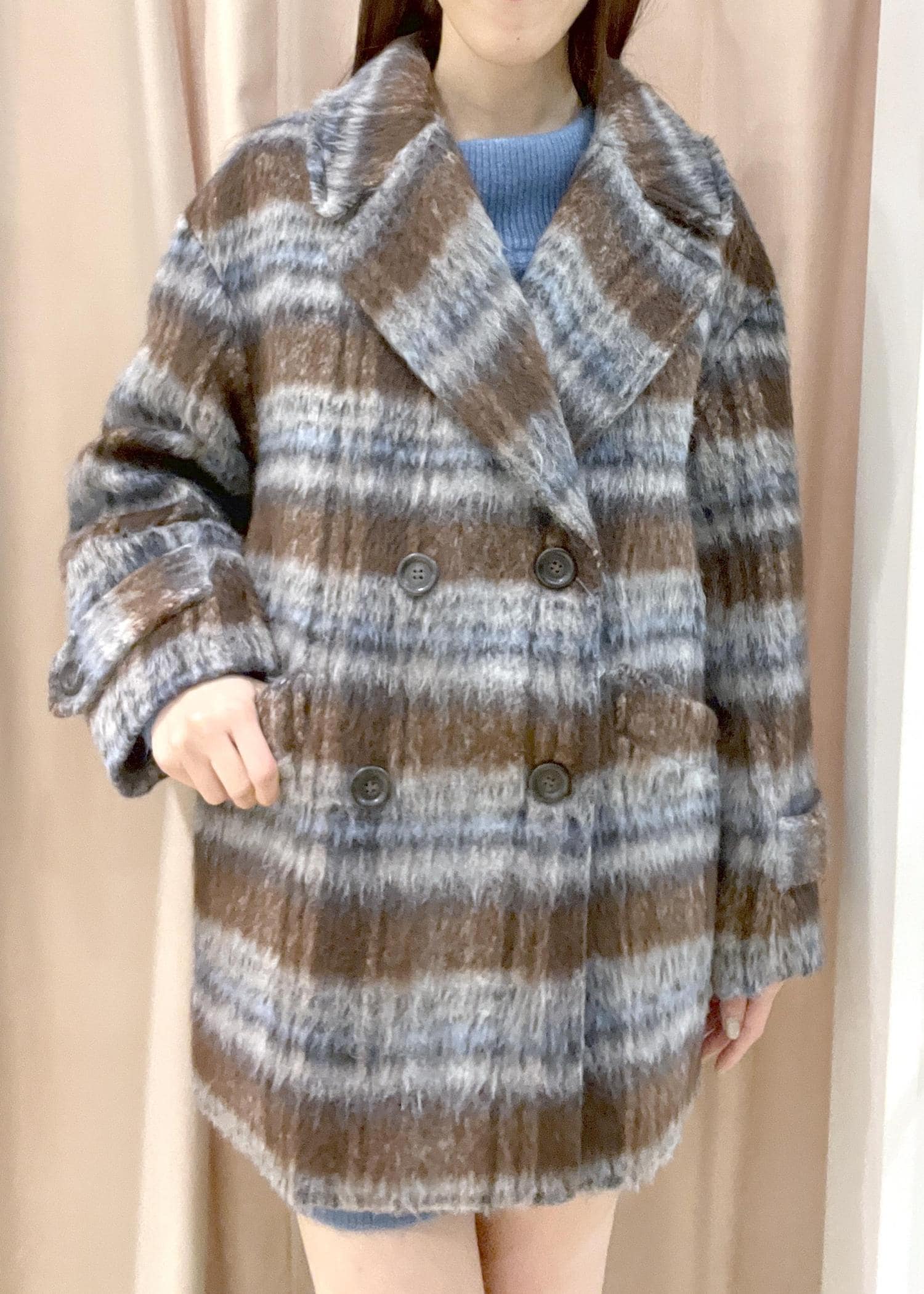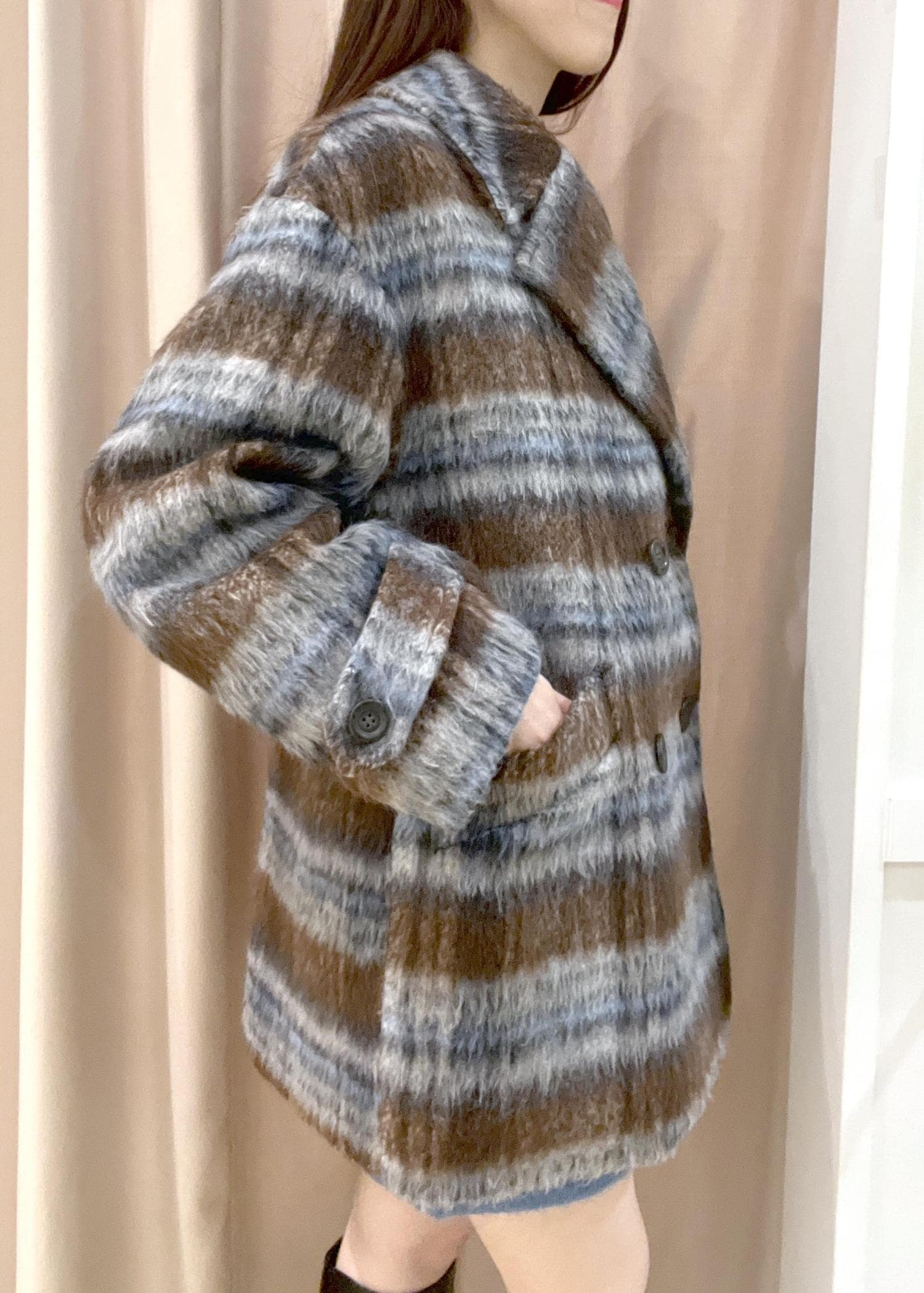 VIS【WEB限定】シャギーミディ丈Pコートブラウン系 / M¥16,280レビュー毛足が長くふわふわのジャギー素材のPコートです。