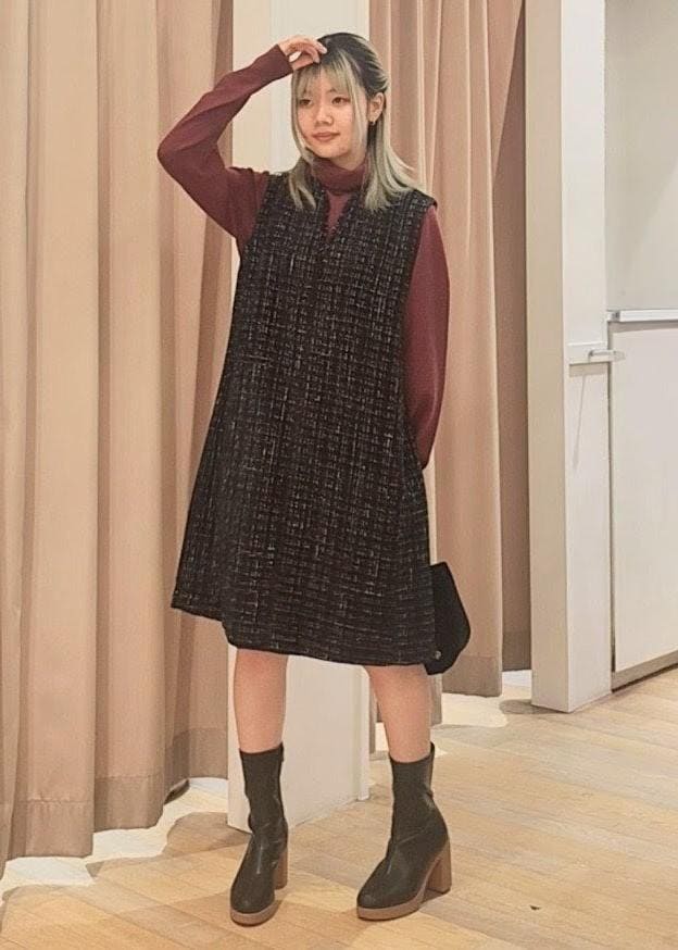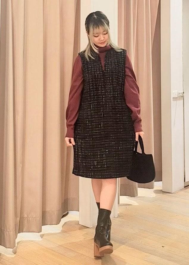 ROPÉ PICNICキーネックツイードジャンパースカート ワンピース/着丈が選べるブラック / M¥8,998レビュー生地にハリがあって、体型が響きにくいと感じました!裾がやや広がっているため、女性らしいスタイルに◎