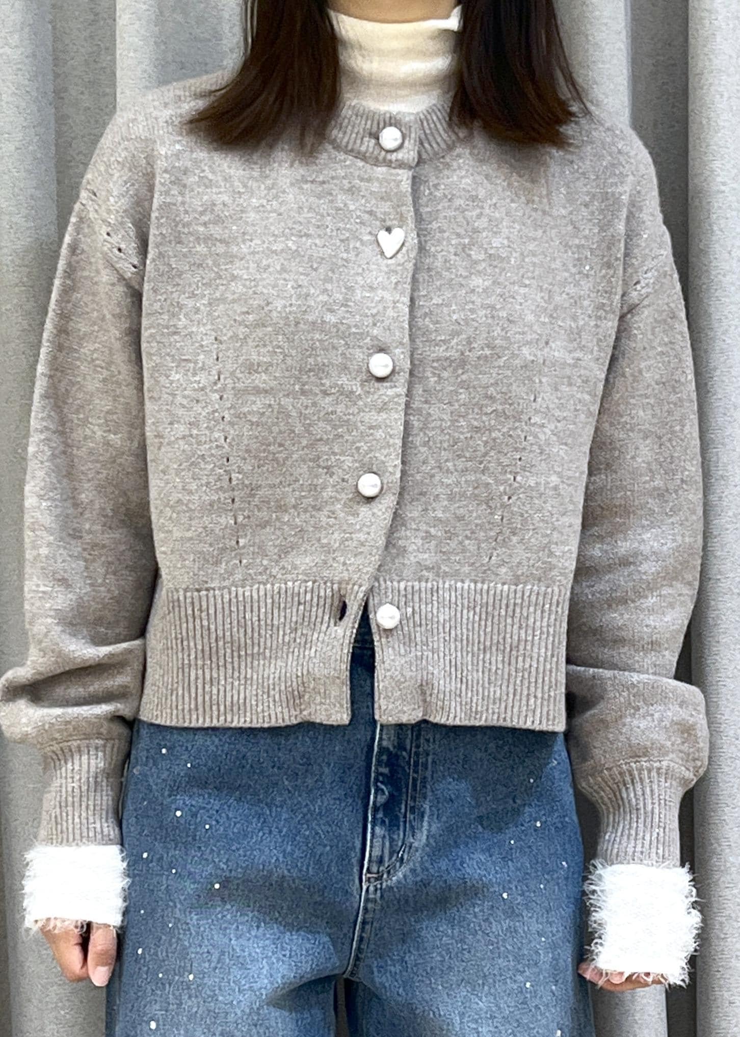 VISハートアソートパール釦ラメミックスカーディガン/イージーケア・一部WEB限定カラーブラウン / F¥5,489レビューゆとりあるサイズ感なのでインナーを着ても窮屈感なく着用できます。丈感は腰上辺りです。