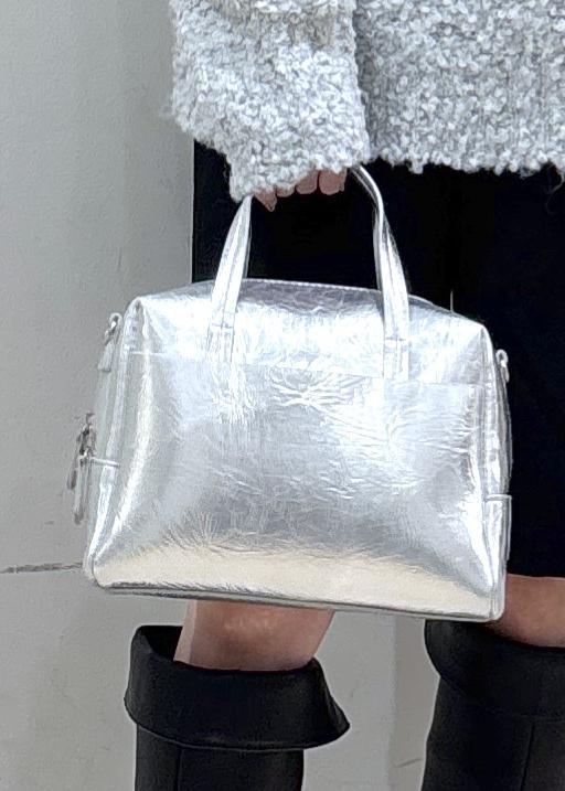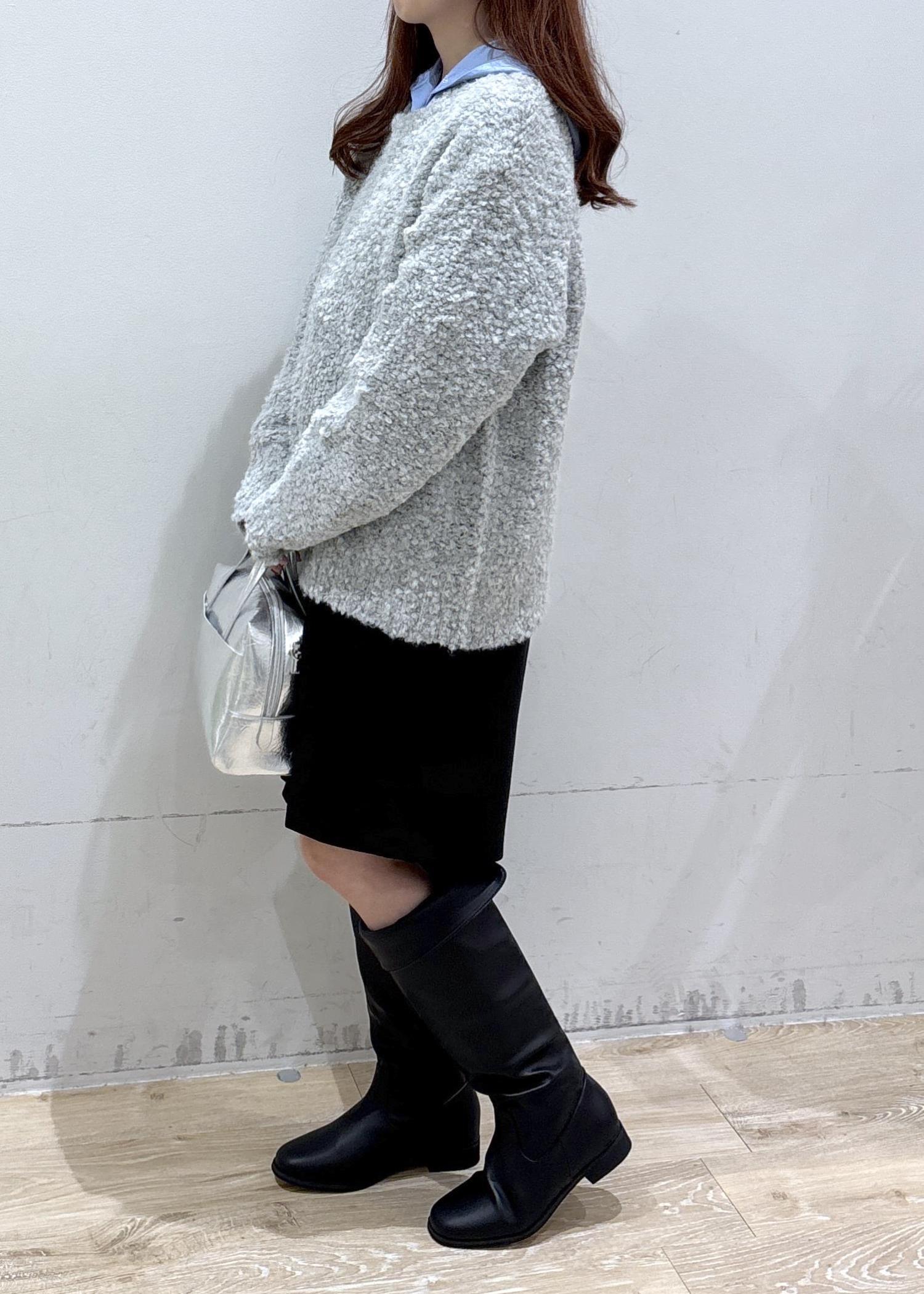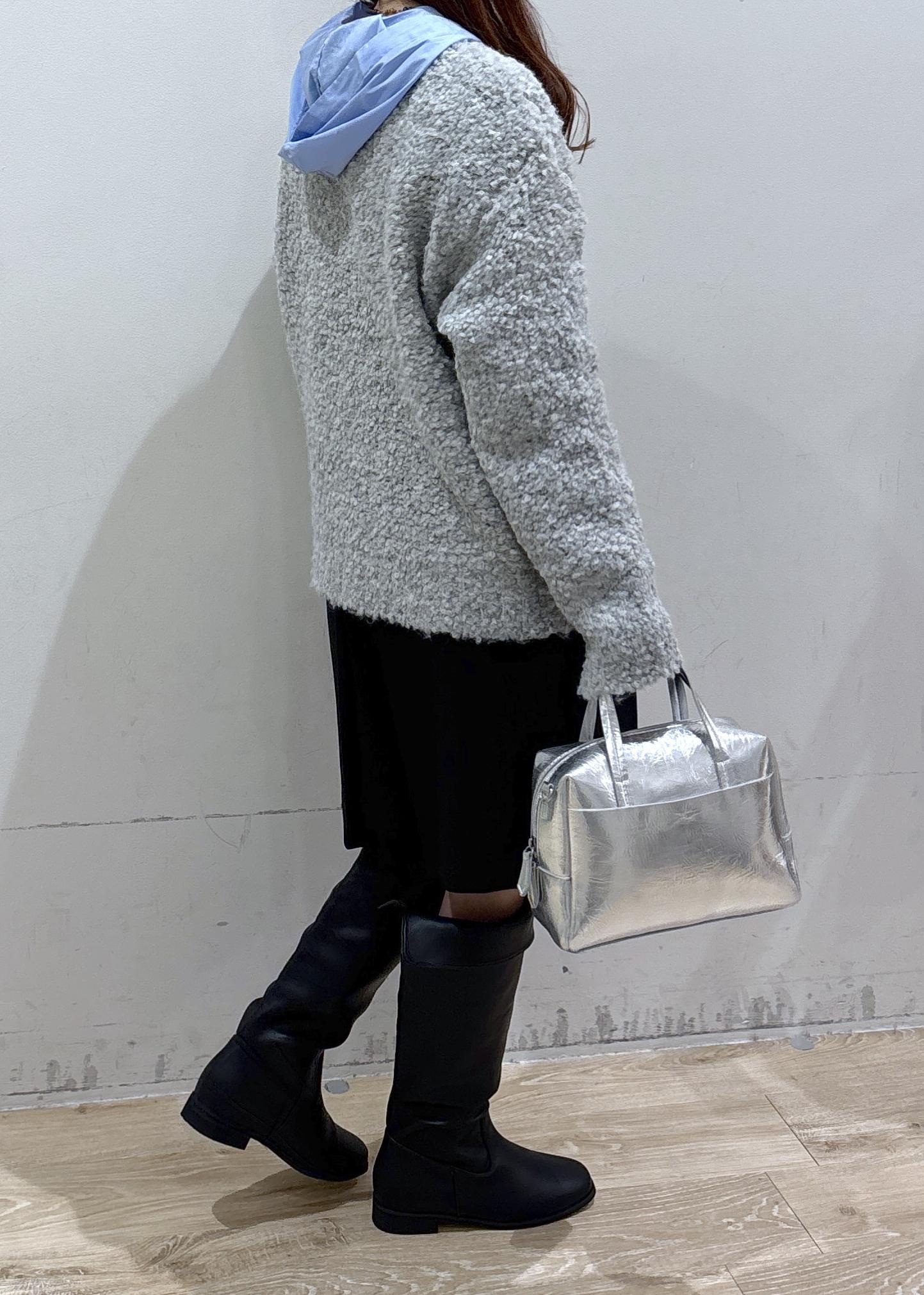 ロングブーツで足元を引き締めつつ、シルバーのバッグでさりげなくトレンド感をプラスしました!