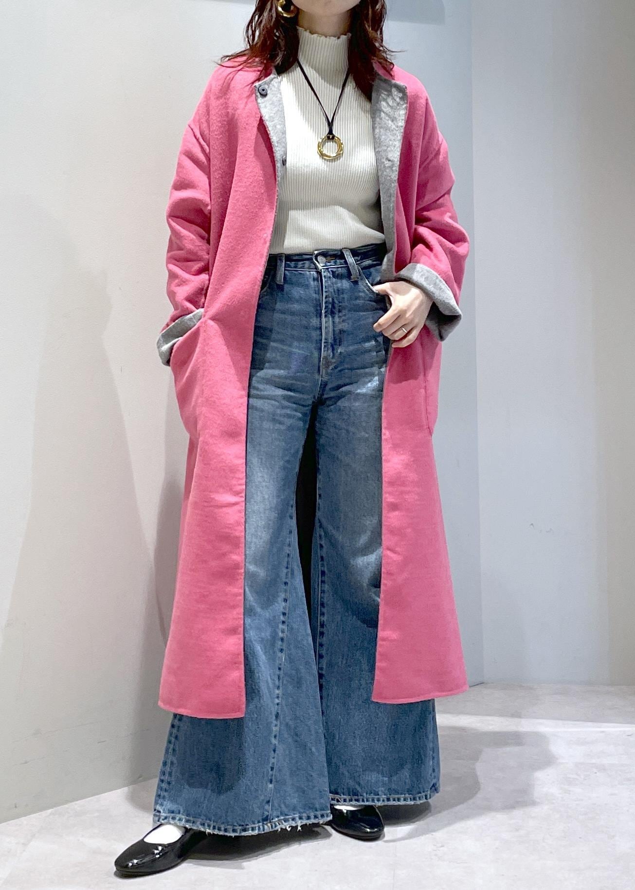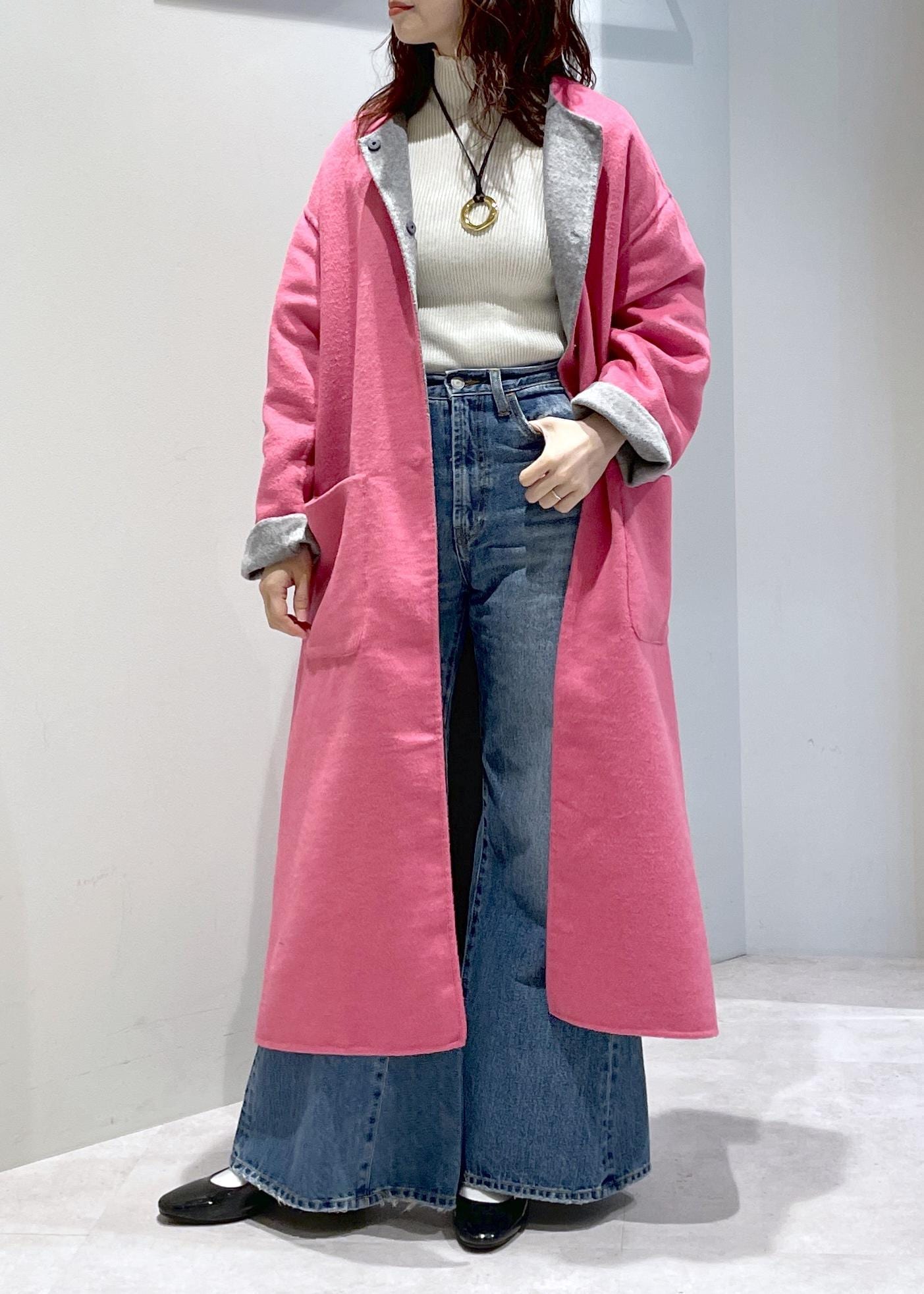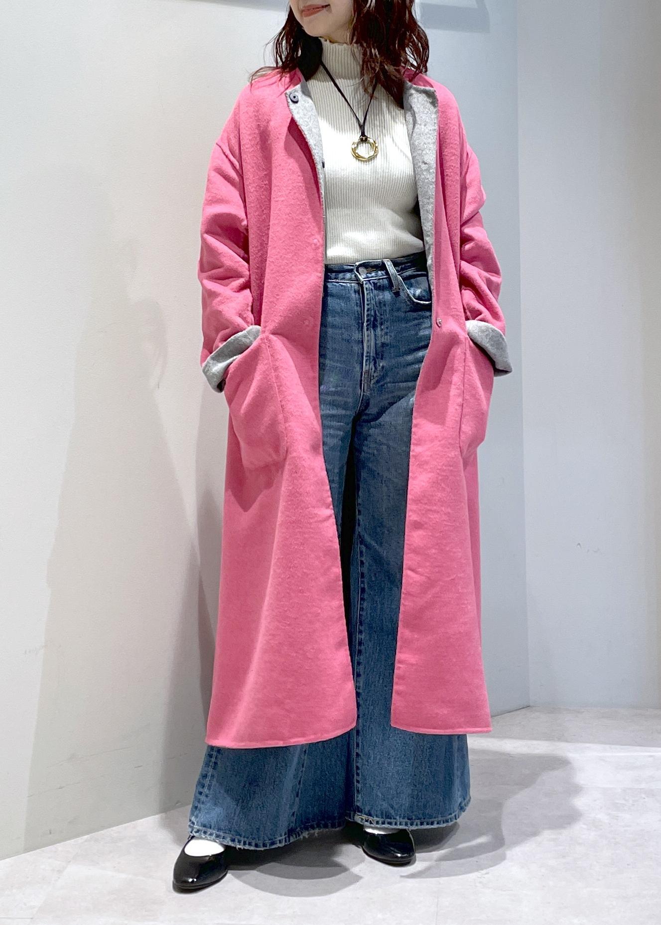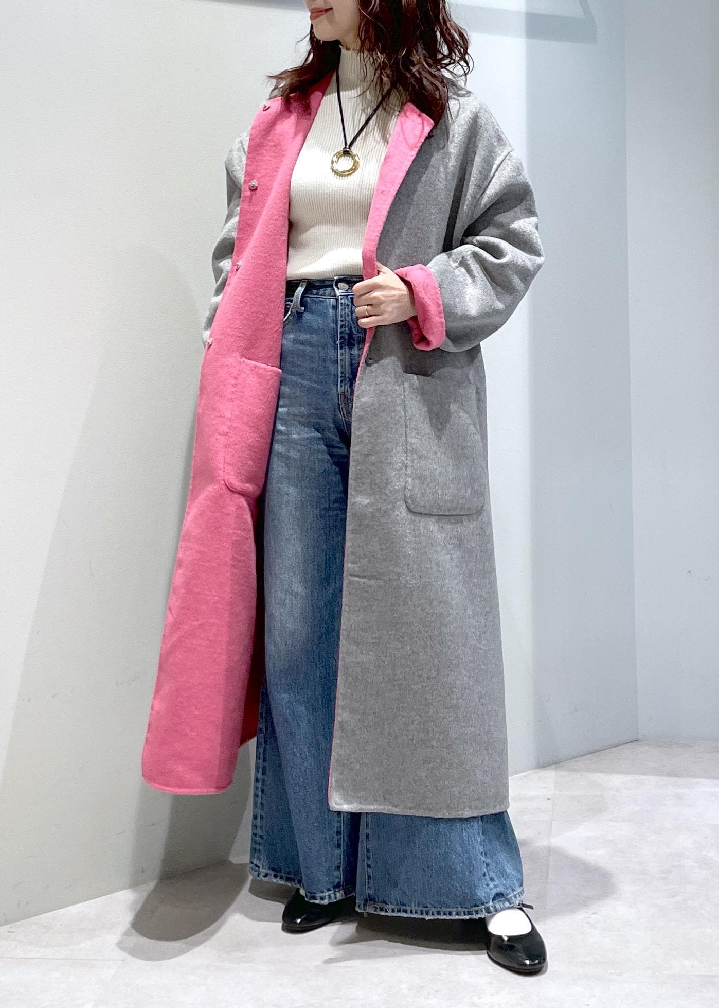 表と裏で全く違う印象になれるリバーシブルコートを使ったコーディネートです!