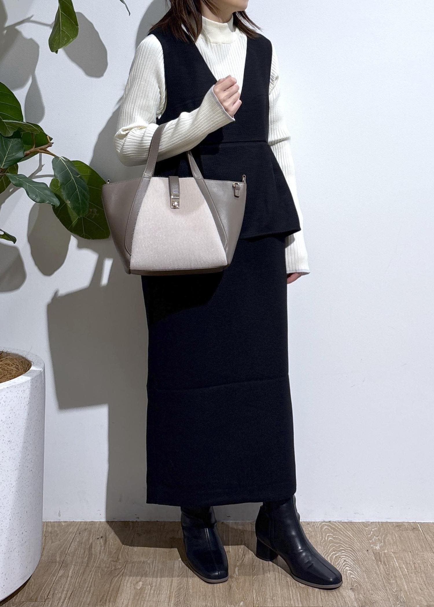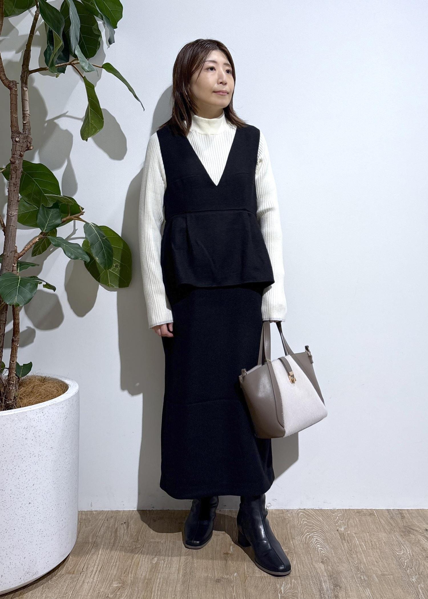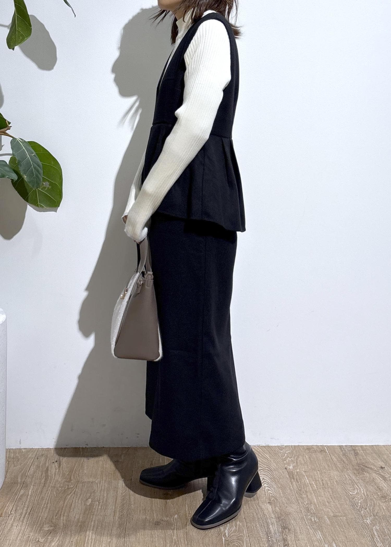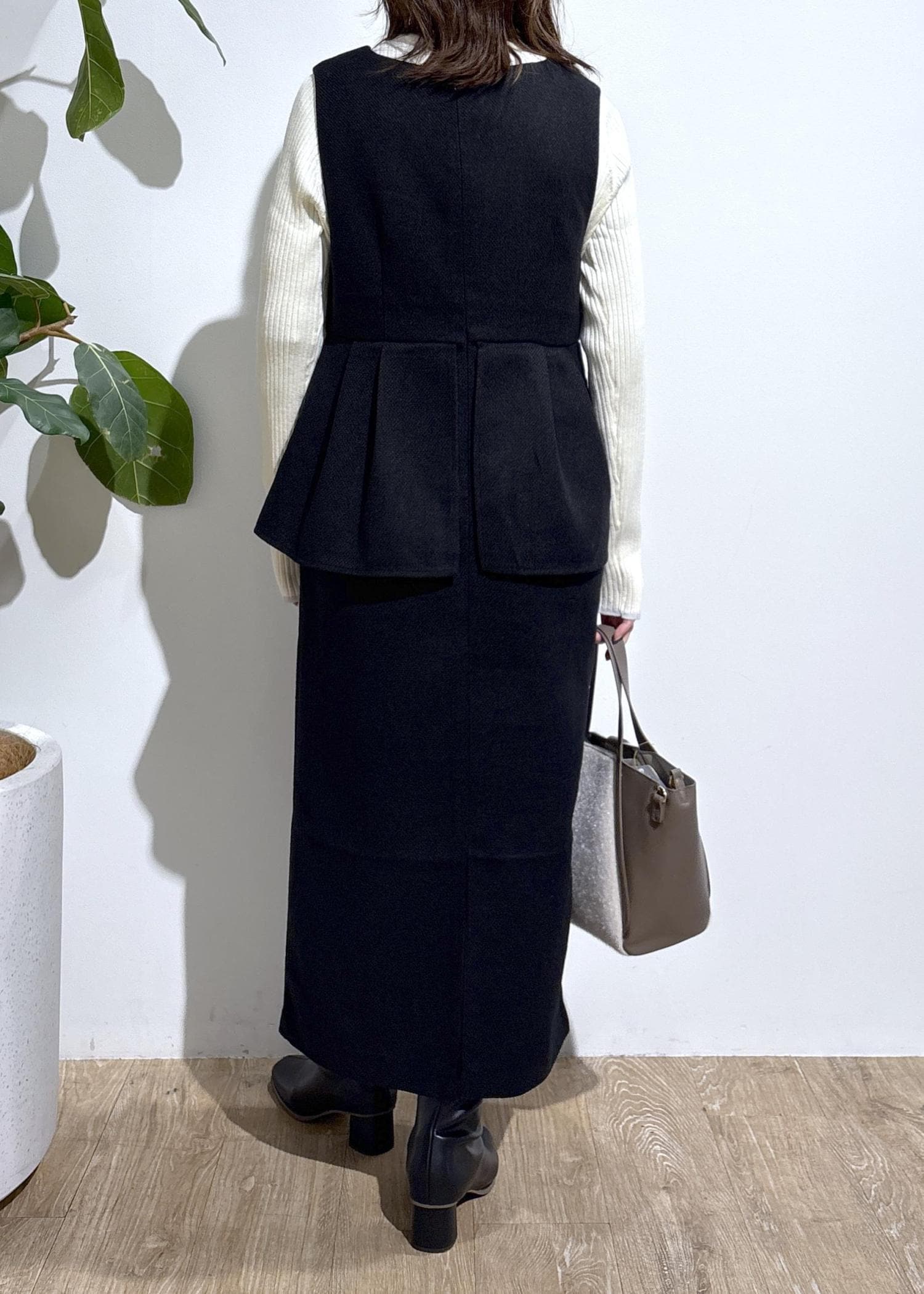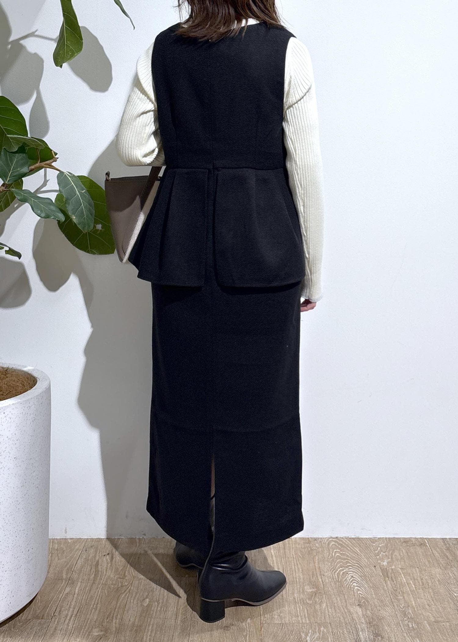 ペプラムシルエットで気になる腰回りも自然にカバーしながら、スカート部分はIラインですっきり見せてくれます。