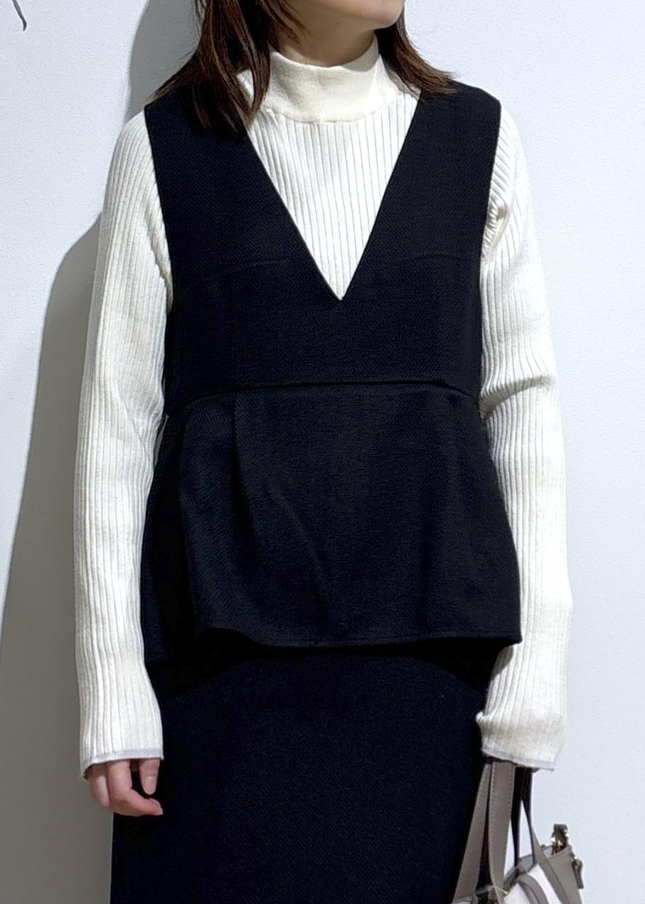 インナーにはフィット感のあるリブ素材やシアーカットソーがすっきり着用できておすすめです。