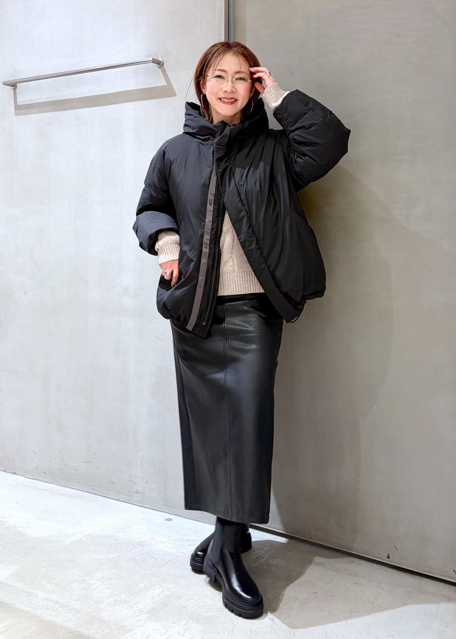 スカジャンを中に来てもゆとりがあり、中に着込めます。