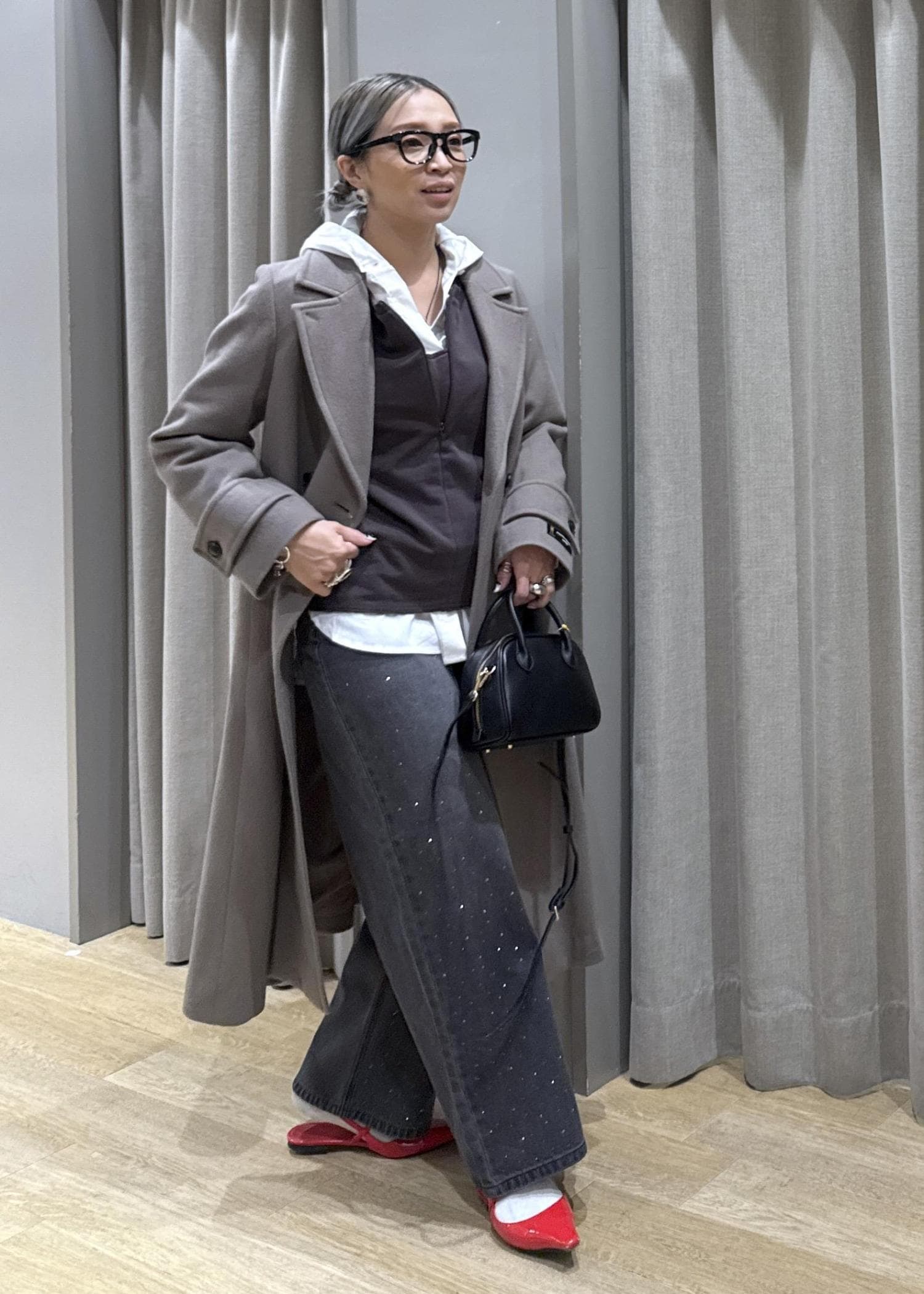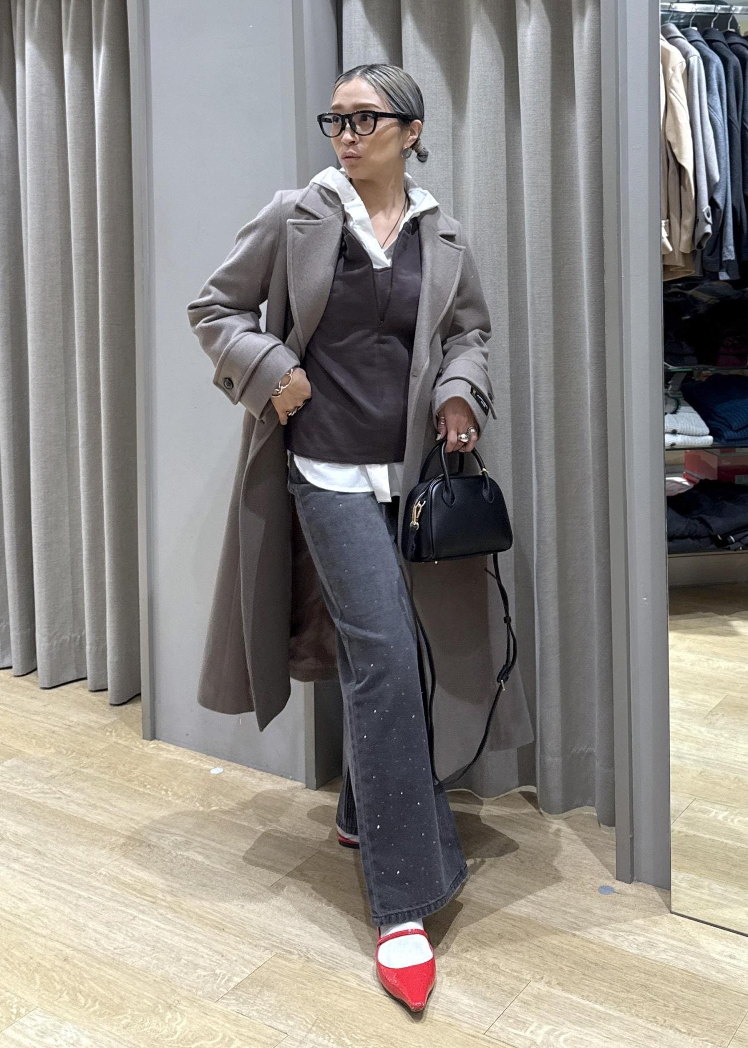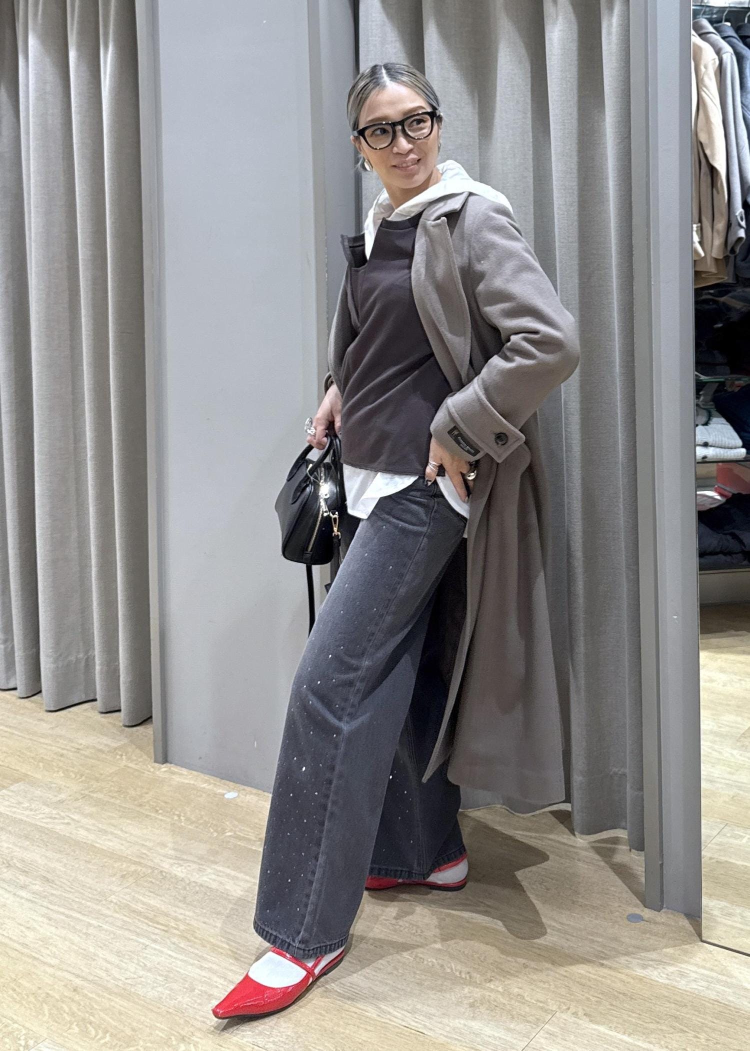 やや緩めのサイズ感で重ね着してもごわつかないですよ。