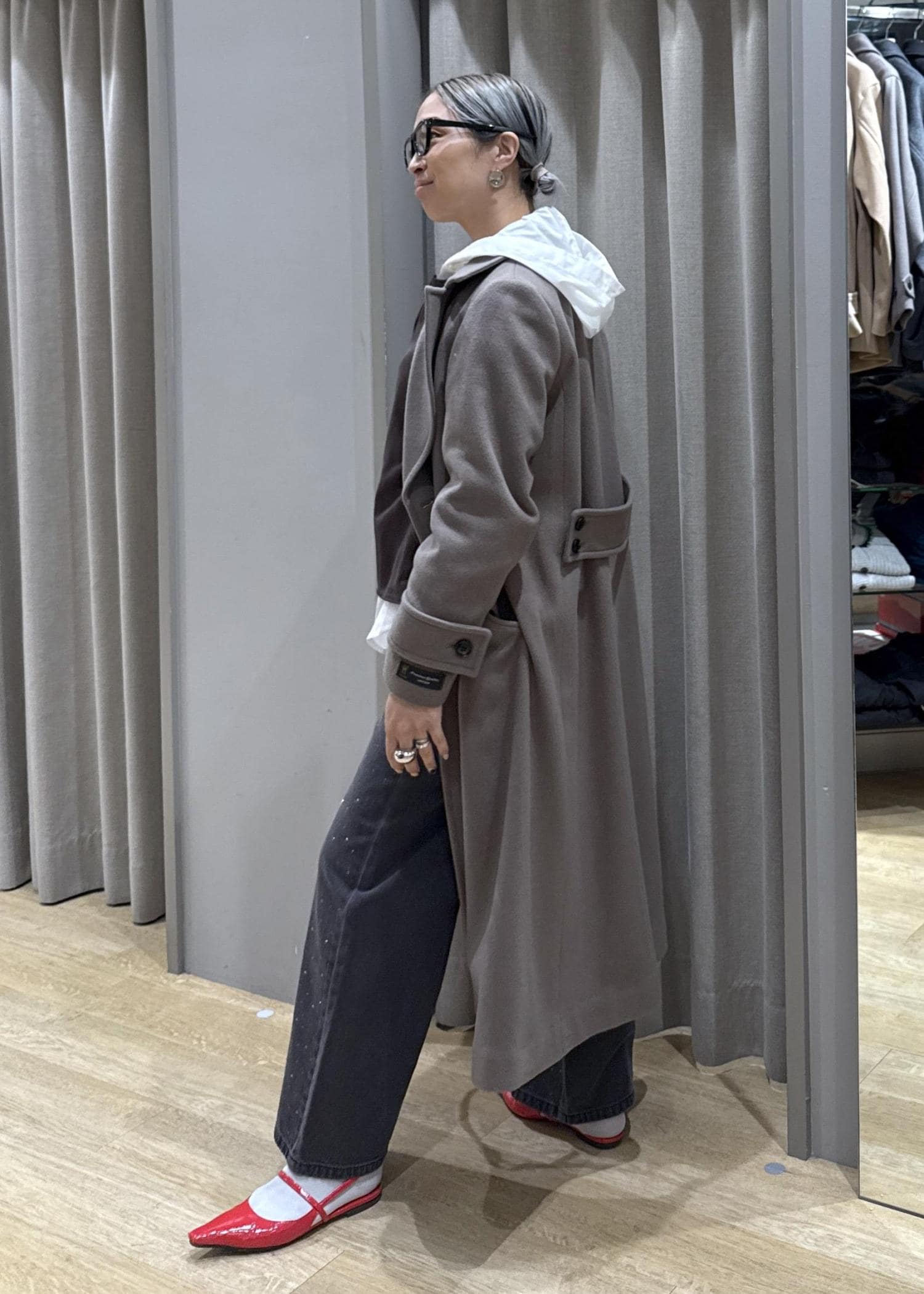 フード部分もシャツ素材なので、ニットの下やアウターの下に着て重ね着を楽しんでも◎