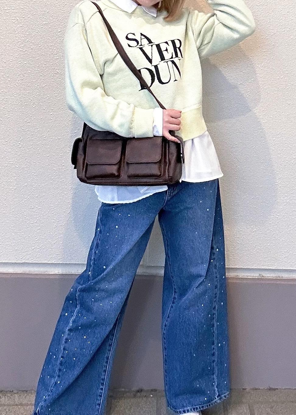VISビジューデニムパンツブルー / S¥6,327レビューデニムの形も大優勝!!なのですが、ラインストーンが付いていて冬の雪みたいな感じで、かわいらしいコーデもキレイめなコーデにもピッタリです✨️