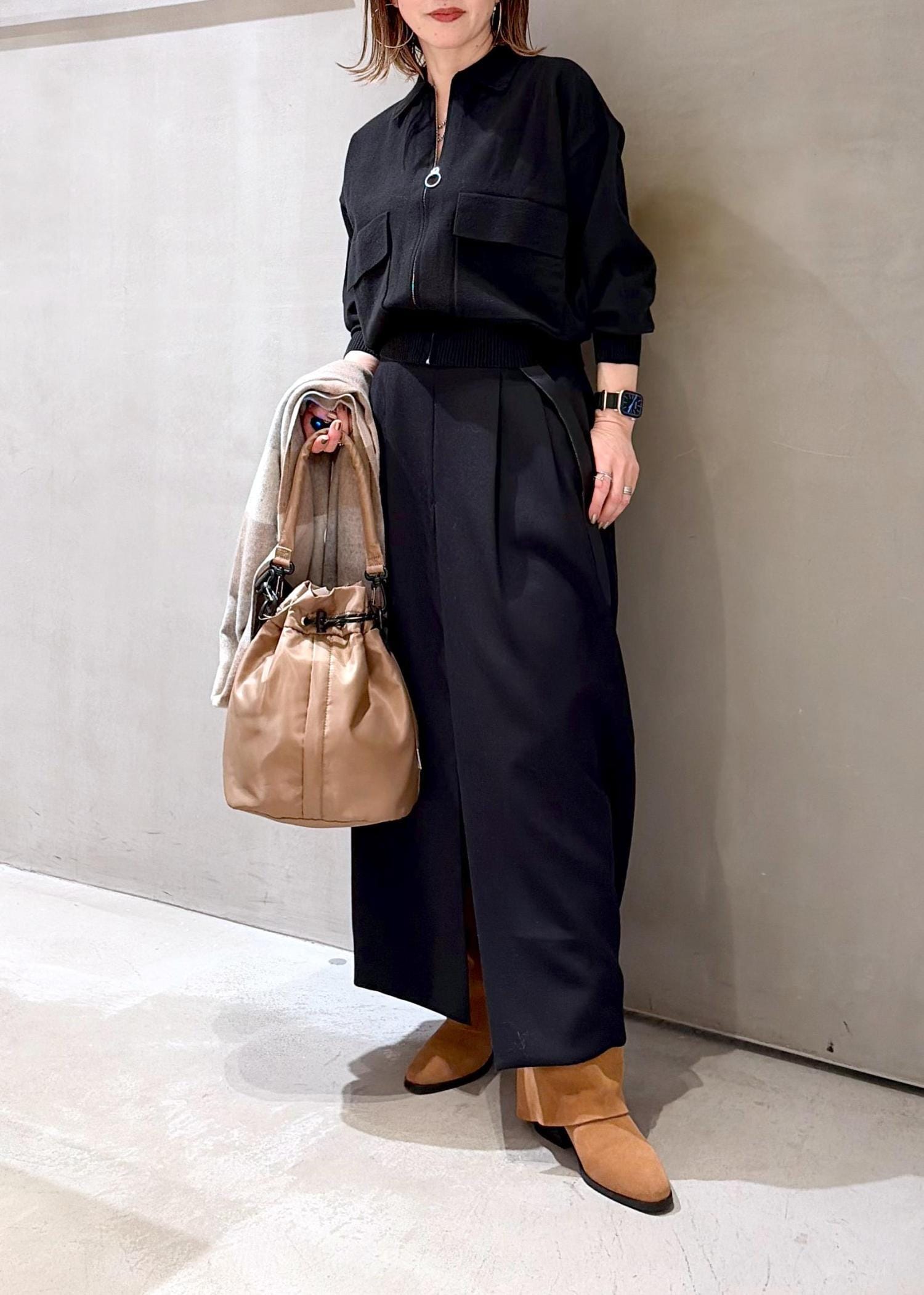 今回はキャメルを差し色にし、華やかさをプラスしています。